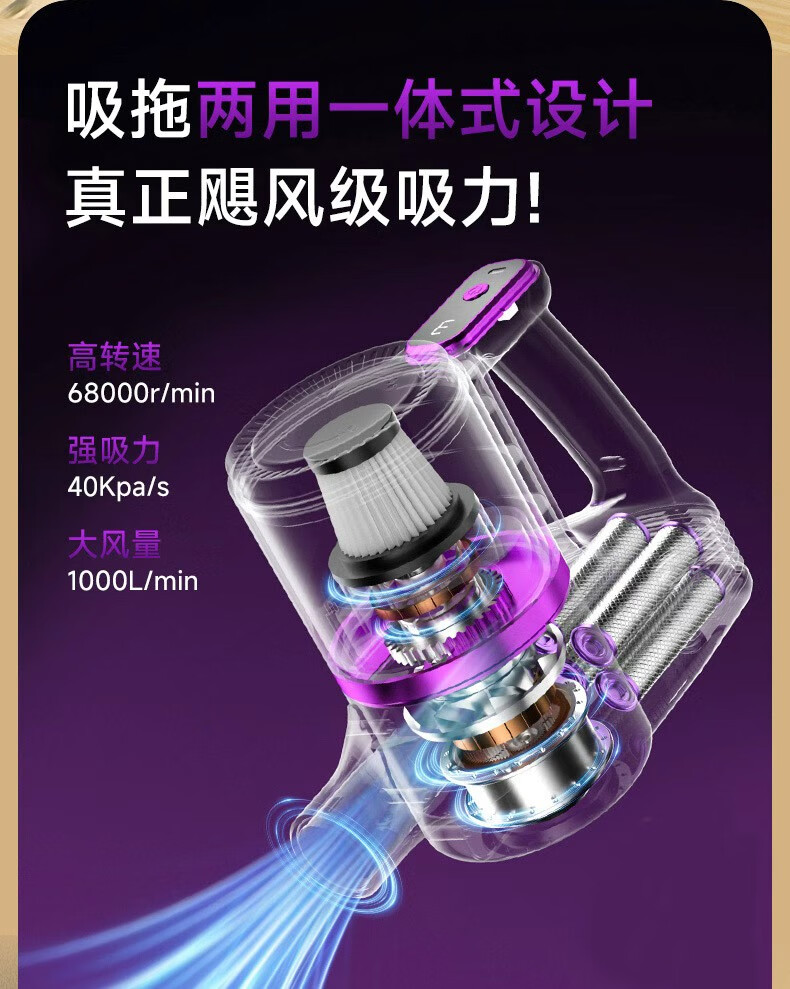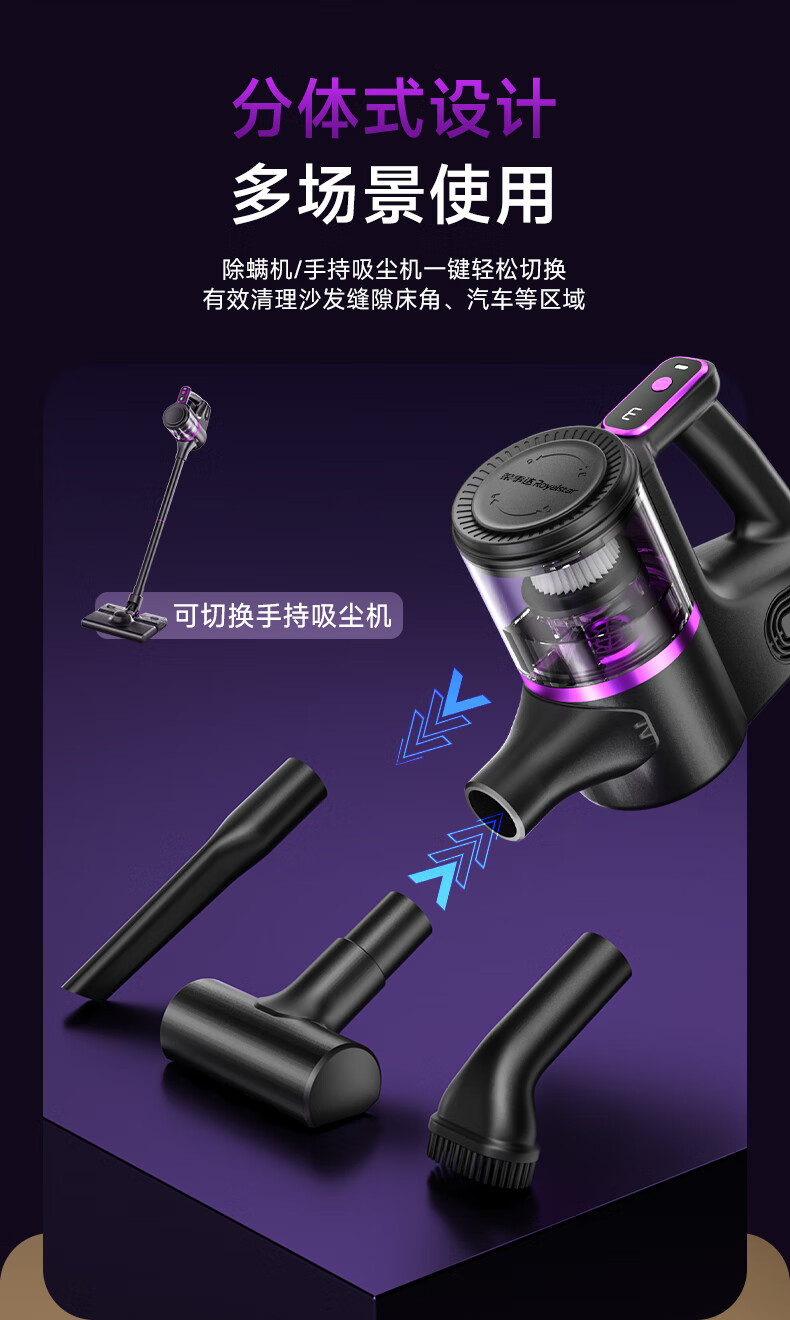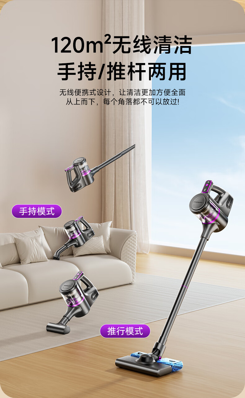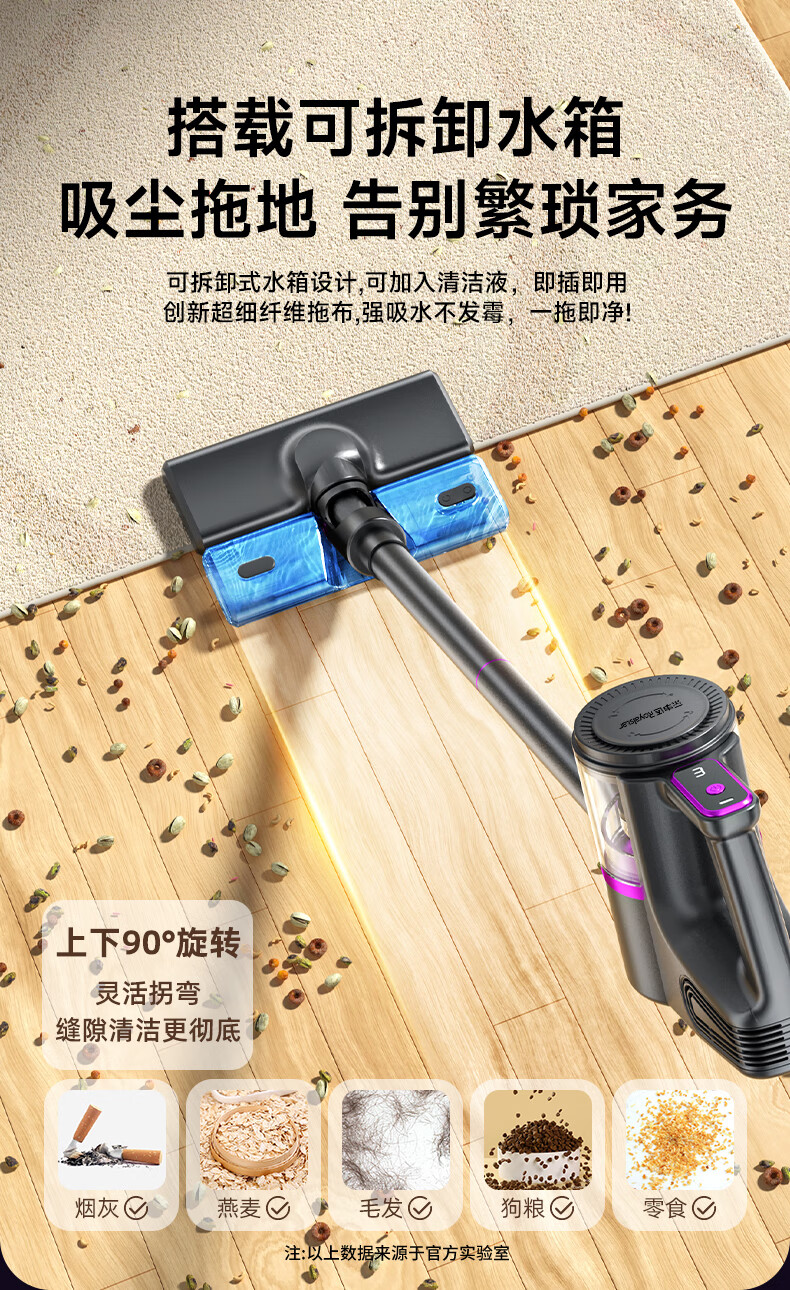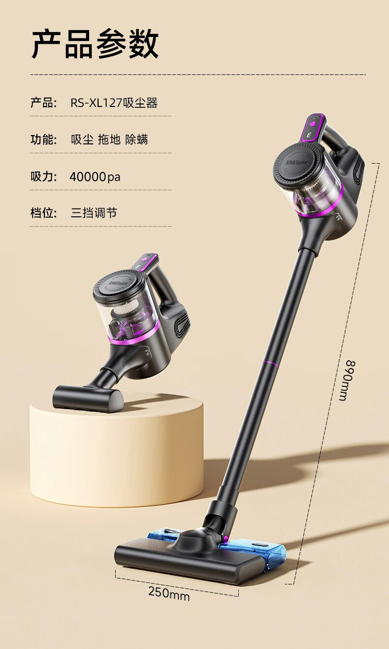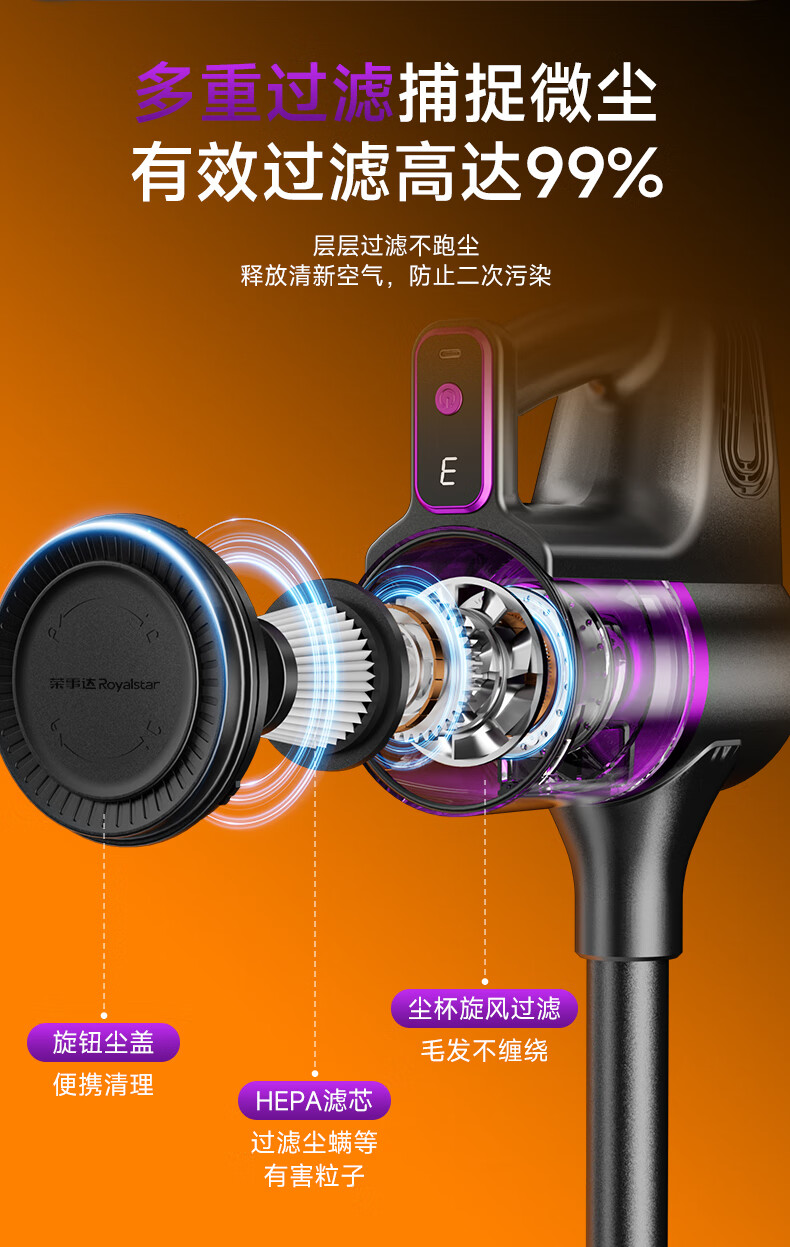 Royalstar vacuum cleaner household large suction handheld suction and mopping all-in-one mite removal cleaning mopping machine wireless floor scrubber multi-function light display dust household cat and dog hair suction - JD 15KPa wireless suction and mopping all-in-one