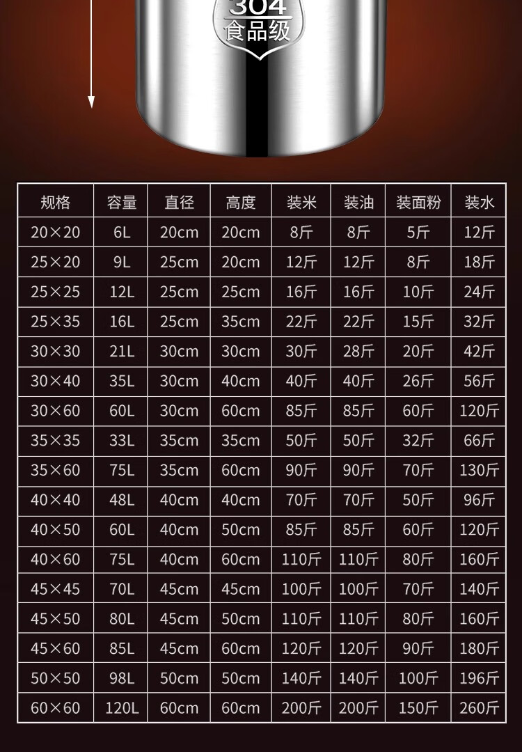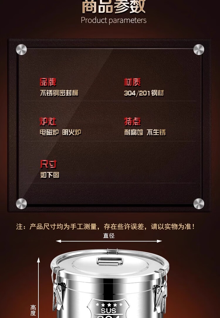 Binhuang 304 stainless steel tea can storage tea can tea bucket large tangerine peel bucket large capacity tea bucket antibacterial 304 fully sealed diameter 50 height 60