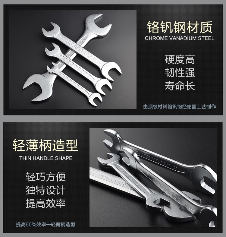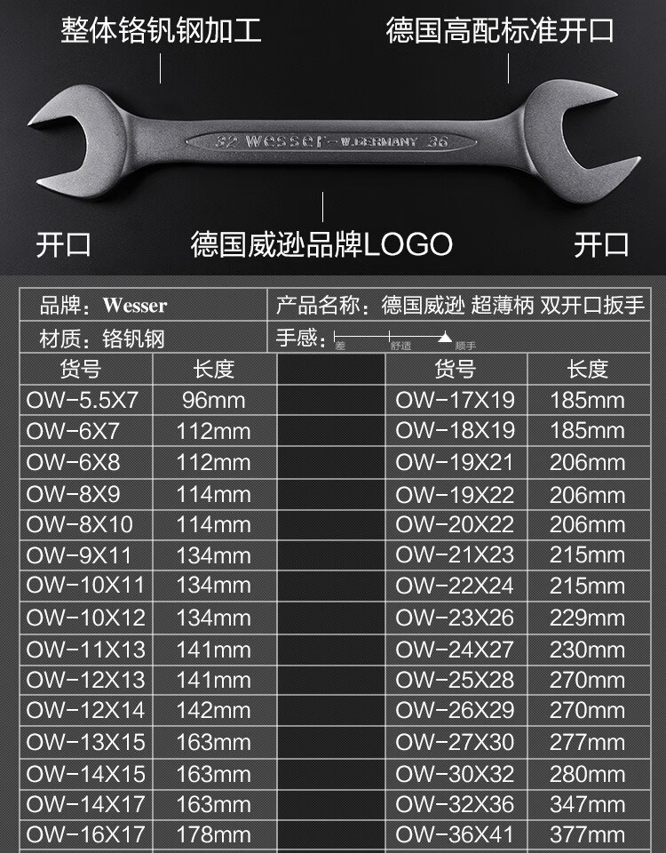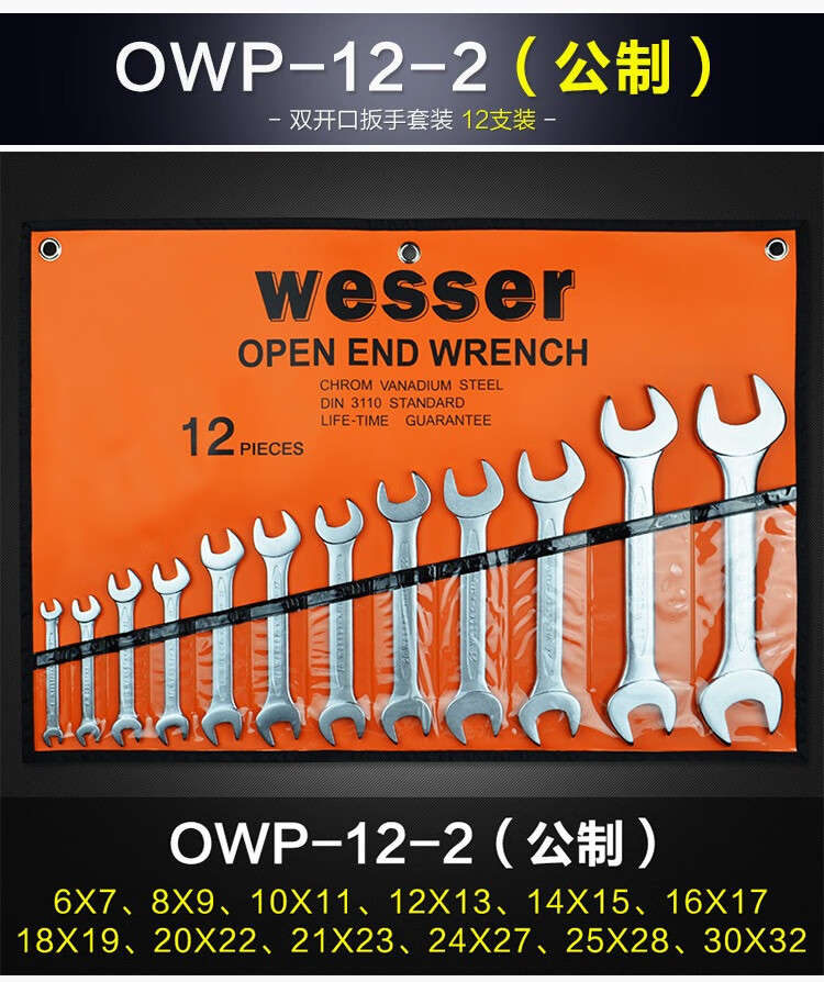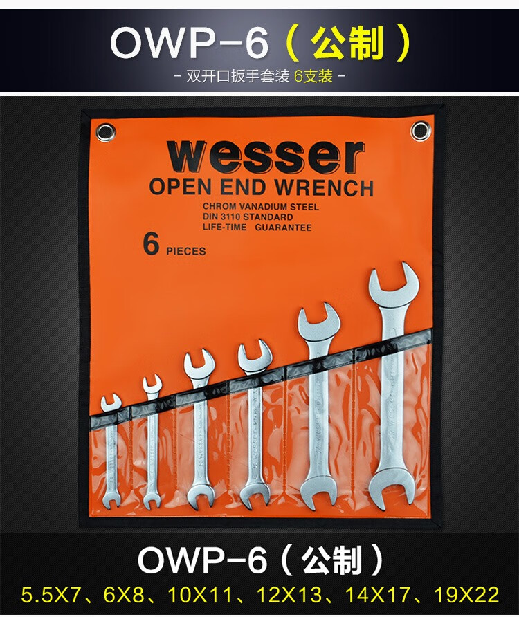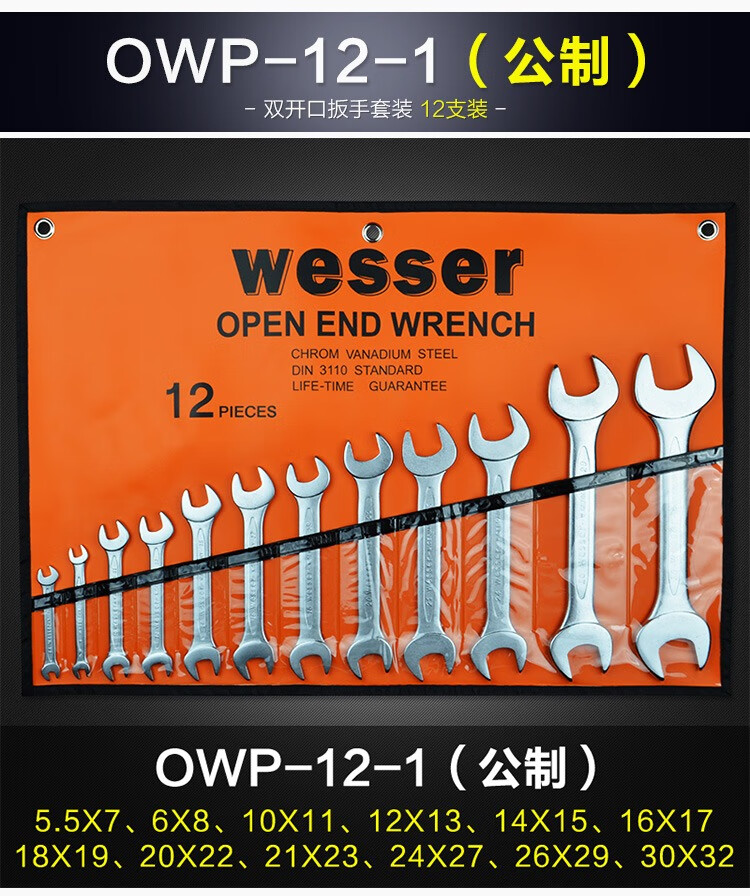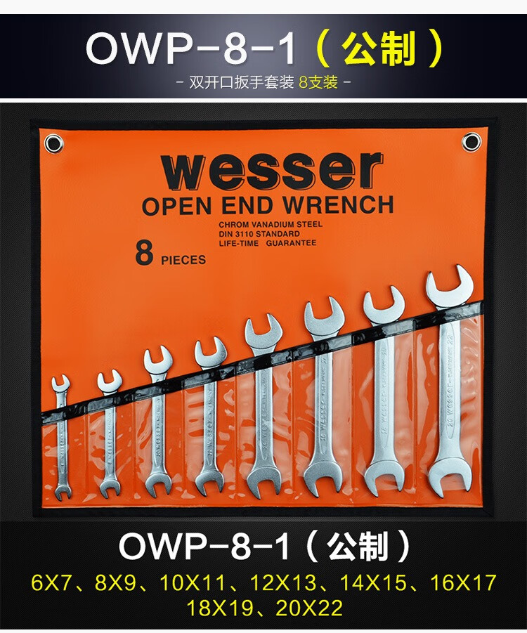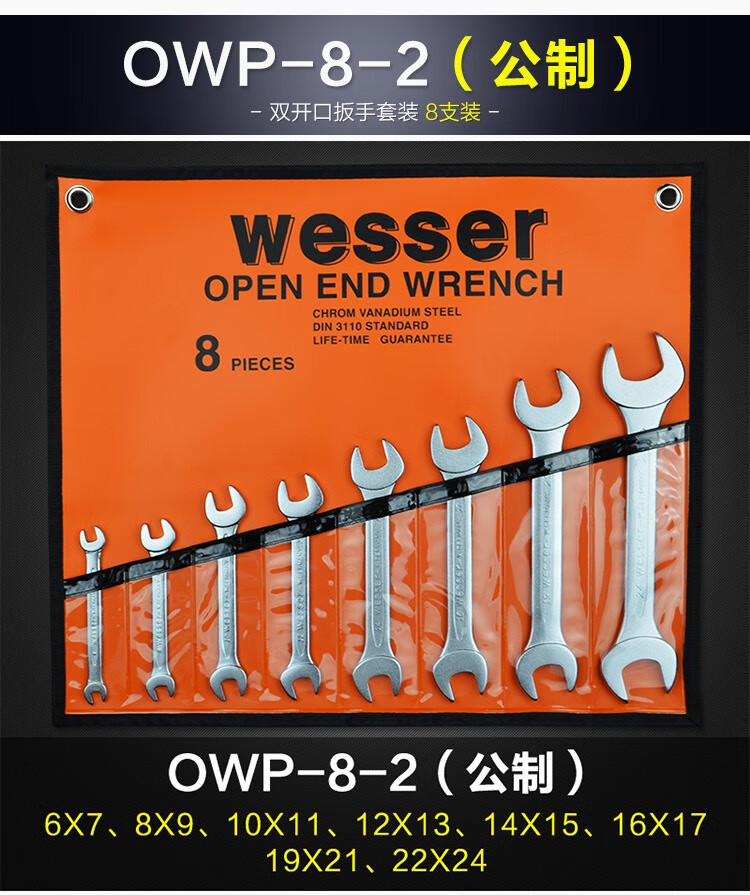 WESSER open-end wrench set dumb wrench set household repair tools industrial grade chromium vanadium steel wrench British 8-piece set 1/4-1 OWSP-8