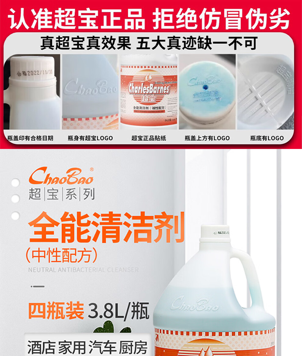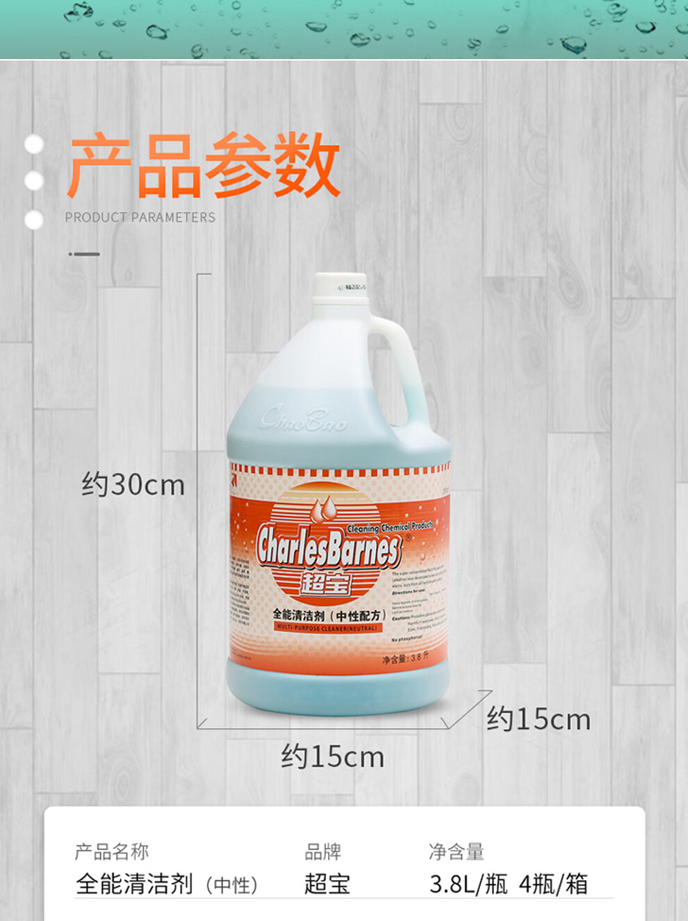 Baiyun Chaobao Cleaning All-Purpose Neutral Cleaner Hotel Floor Bathroom Tile Descaling and Decontamination Multi-Purpose Cleaner 3.8L Large Bottle DFF011 Chaobao Alkaline All-Purpose Cleaner/1 Box of 4 Bottles (Tools Free)