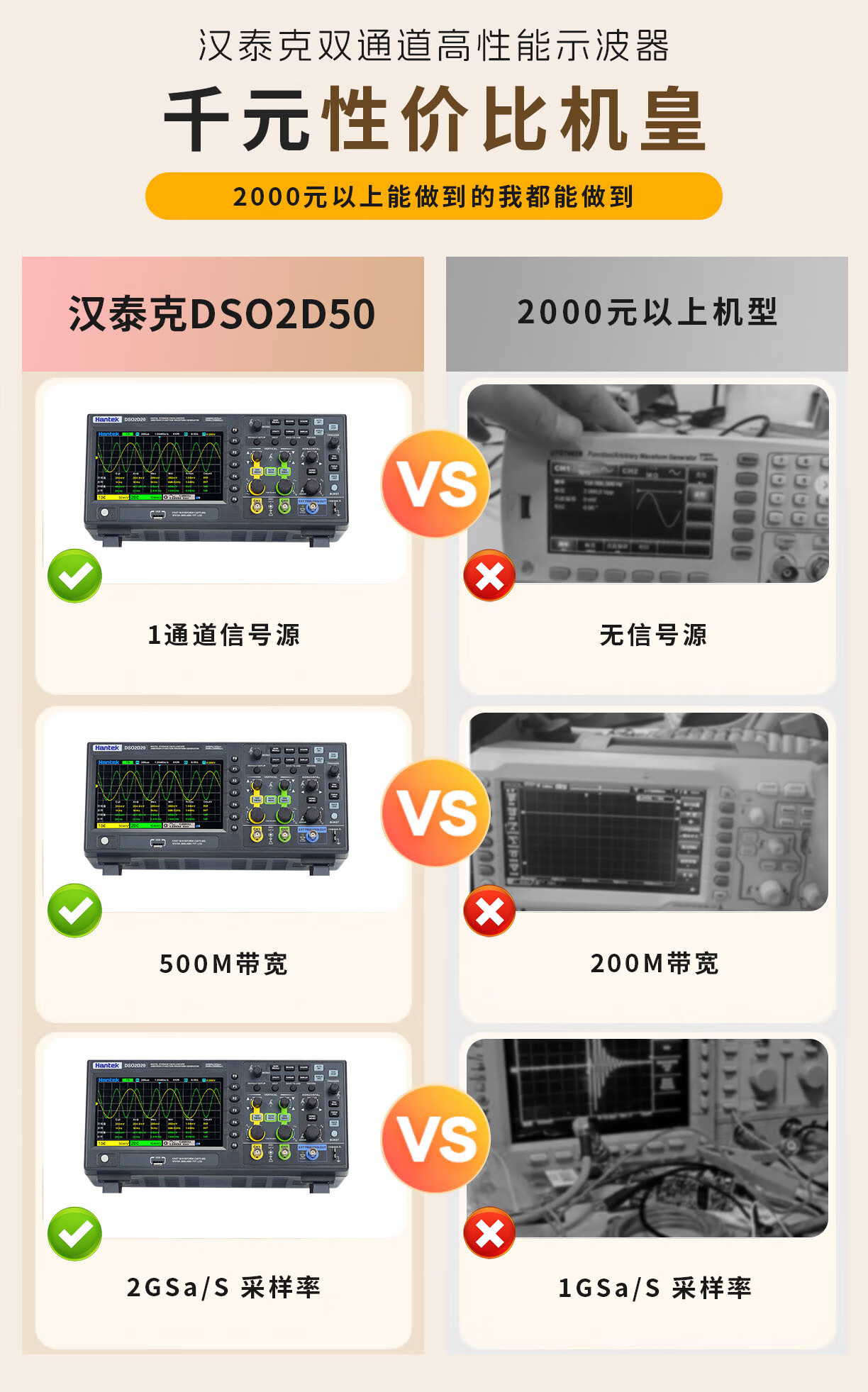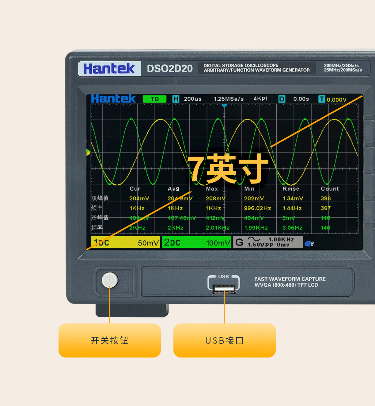 Hantek Hantek digital oscilloscope DSO2D20 series multi-function 2GSa/s sampling rate up to 500M bandwidth DSO2C20 (200M bandwidth + 2CH oscilloscope)