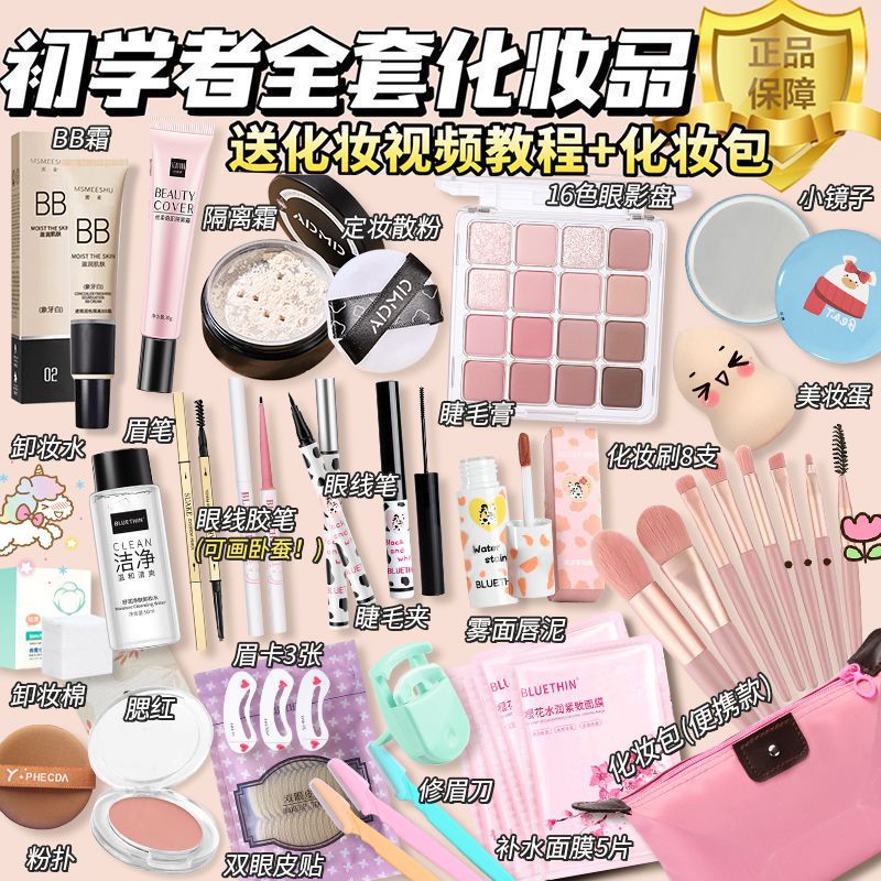 Lamela's complete set of cosmetics, a complete makeup set that does not stick to powder, daily cos for beginners, light makeup for beginners, affordable - Korean sweetheart, 24 pieces in total, free bag + makeup