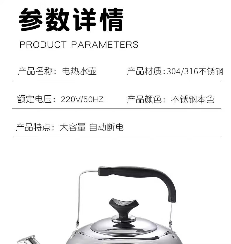 OQB German 304 stainless steel kettle large capacity electric kettle automatic power off and heat preservation household electric kettle whistle to boil water 304 extra thick model automatic power off and heat preservation 5L