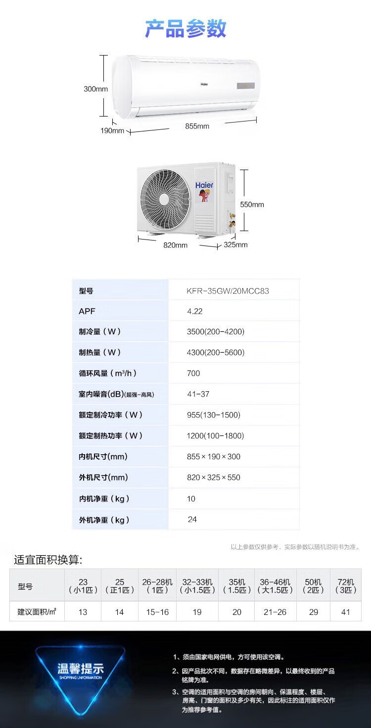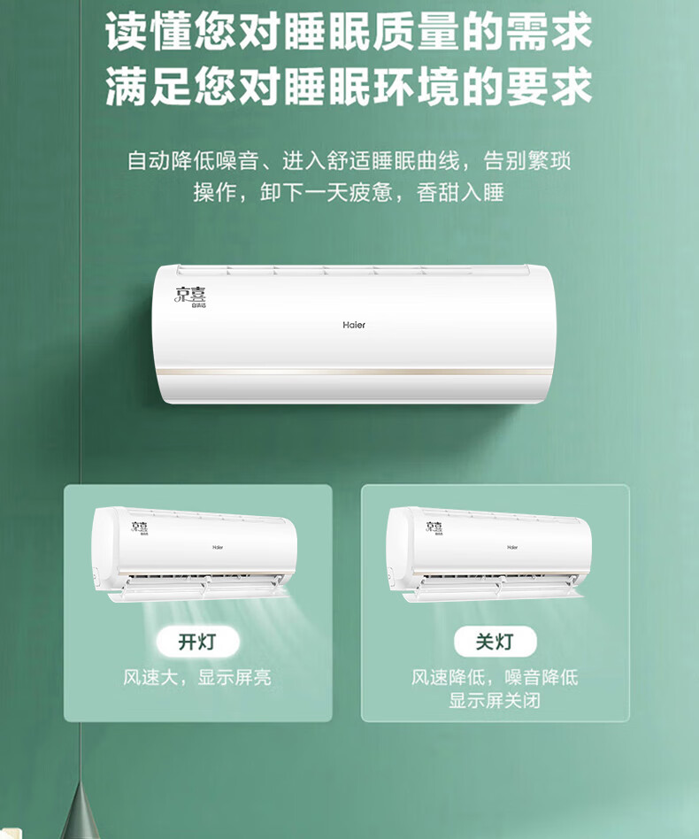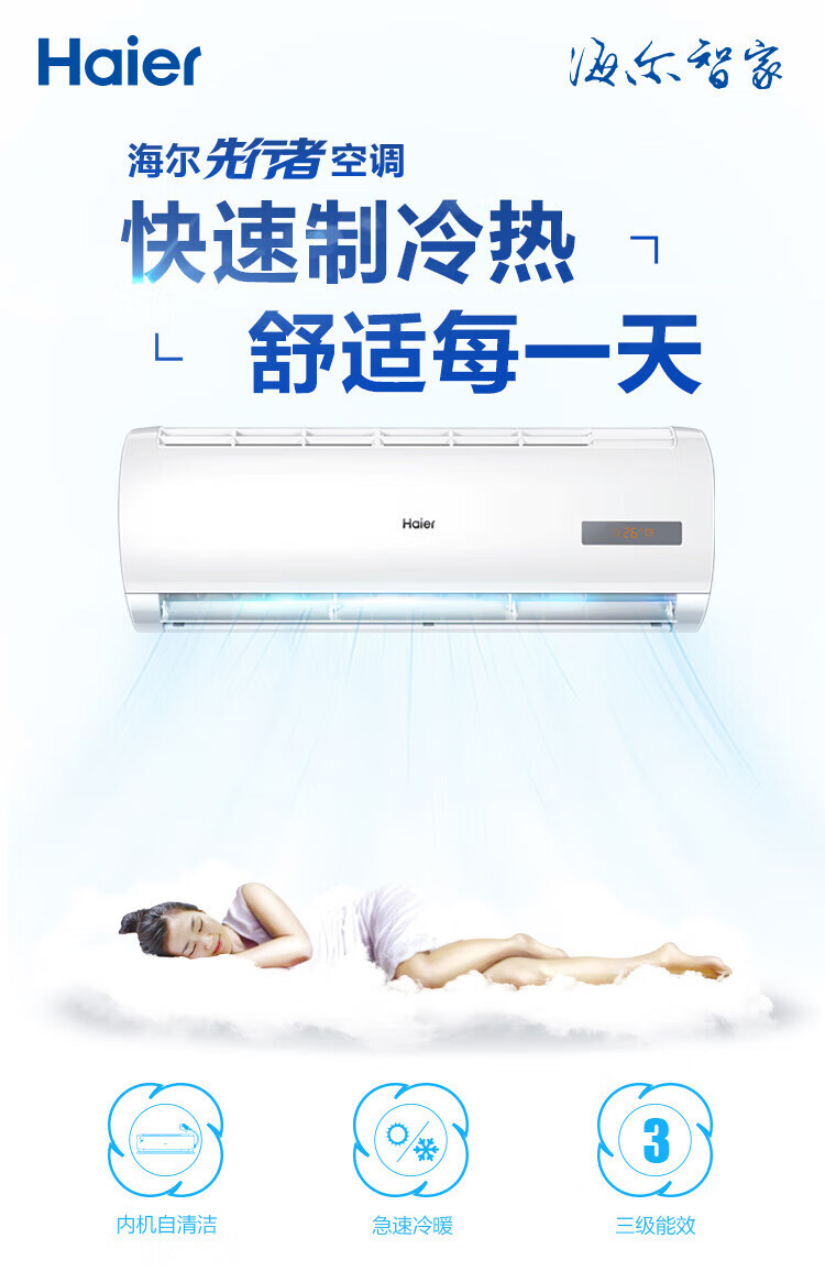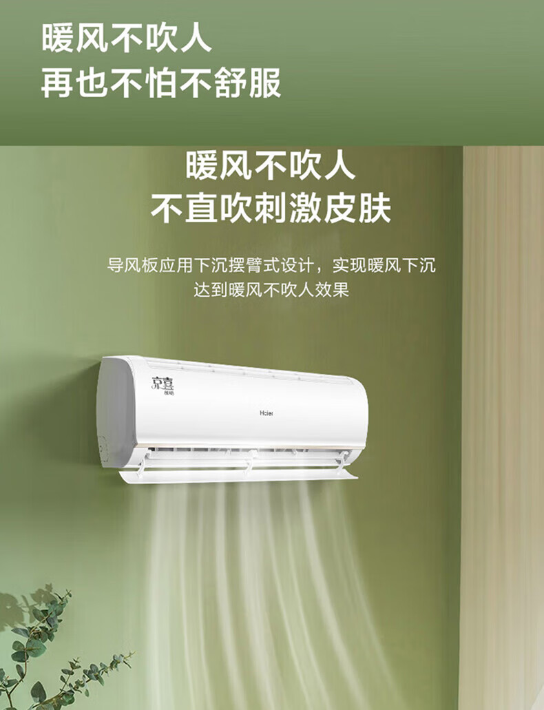 Haier air conditioner variable frequency wall-mounted 1.5P energy-saving cooling and heating large air volume one-click self-cleaning bedroom office silent dehumidification rapid cooling and heating large hanging air conditioner WIFI smart + light sensor sleep protection 1.5 HP frequency conversion energy saving