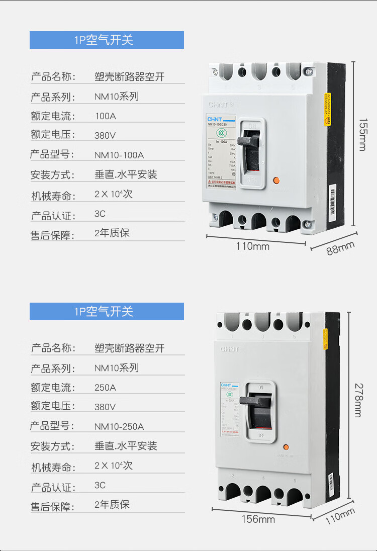 Chint air switch NM10-100 330 3P 100A 80A 60A 50A molded case circuit breaker air switch 150A 3P