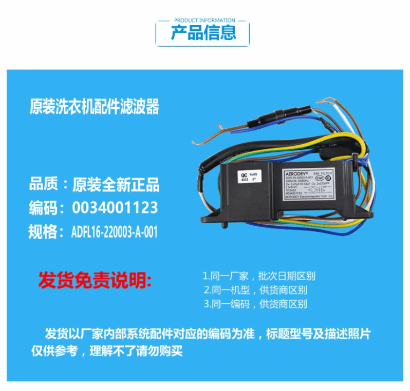 0034001123 suitable for Haier washing machine filter EMIFILTER capacitor 0.47uf+0.33uf Default