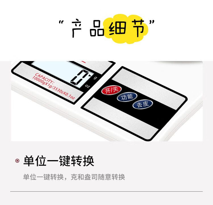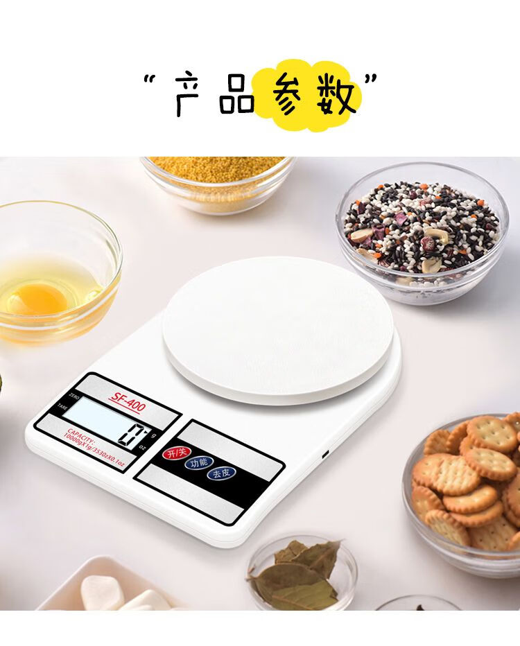 Mint food scale high-precision kitchen scale electronic scale gram scale household baking scale accurate gram baking scale 3kg household three-use model 0.1g free