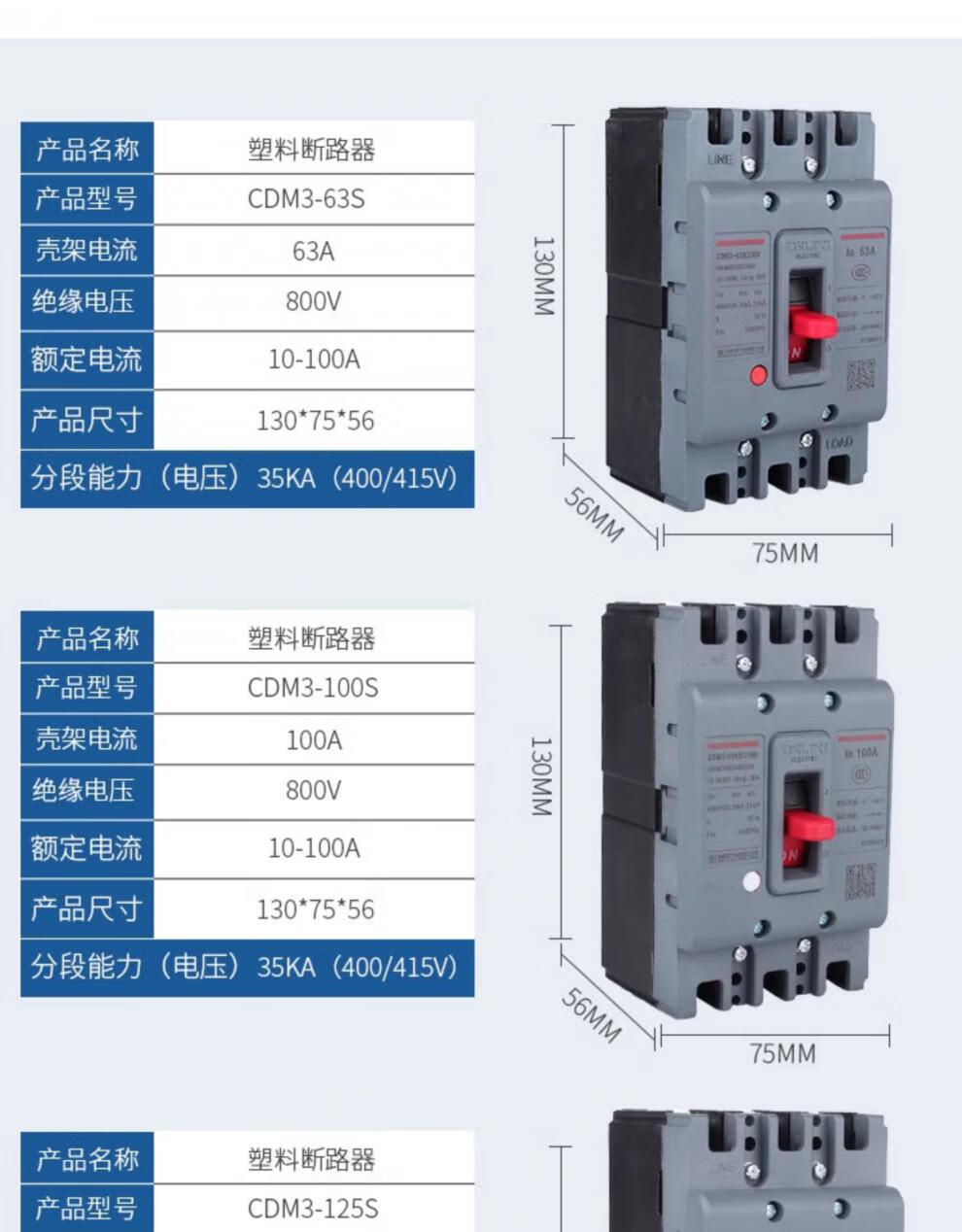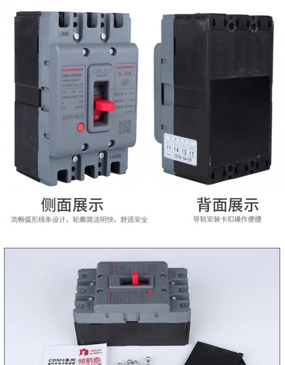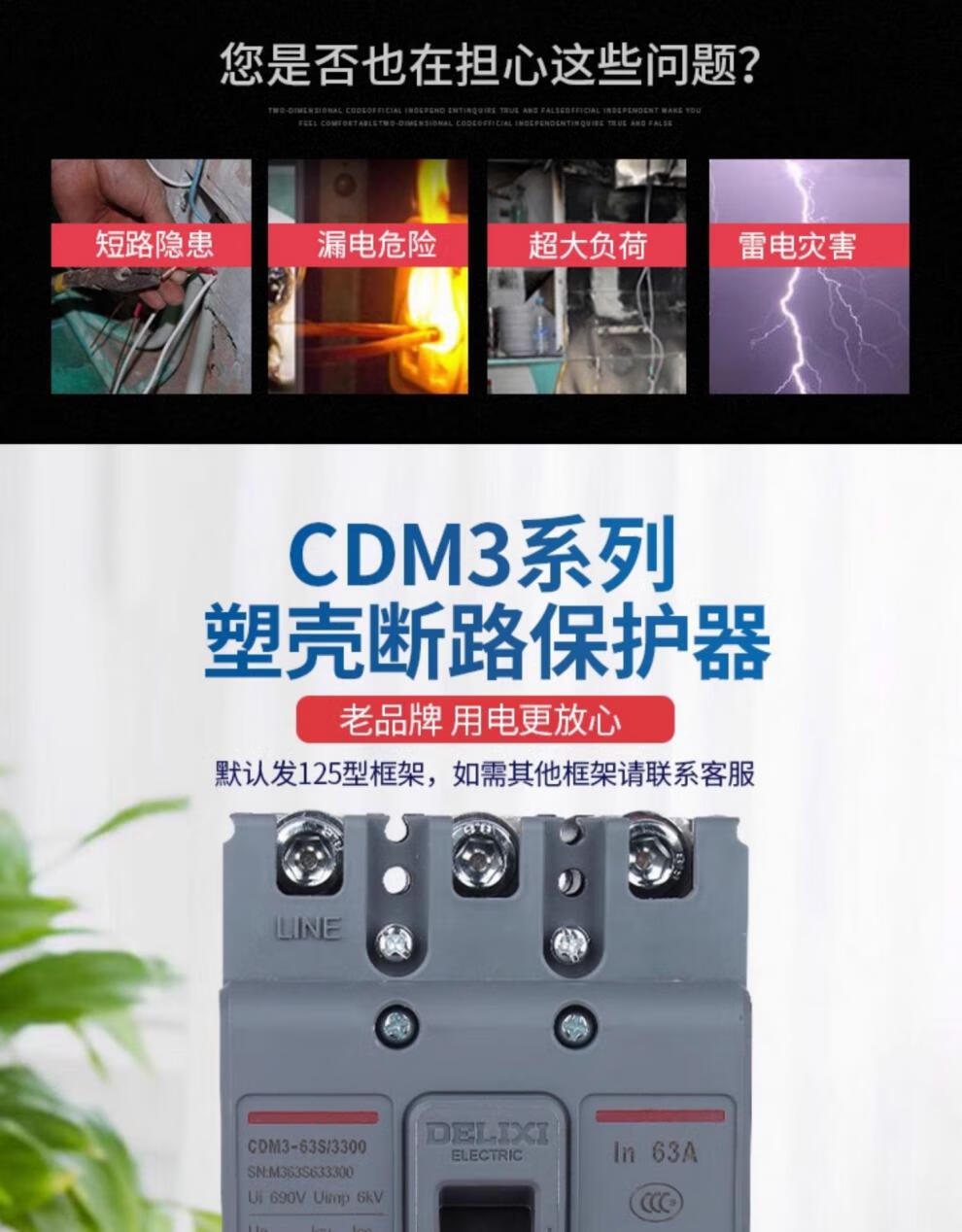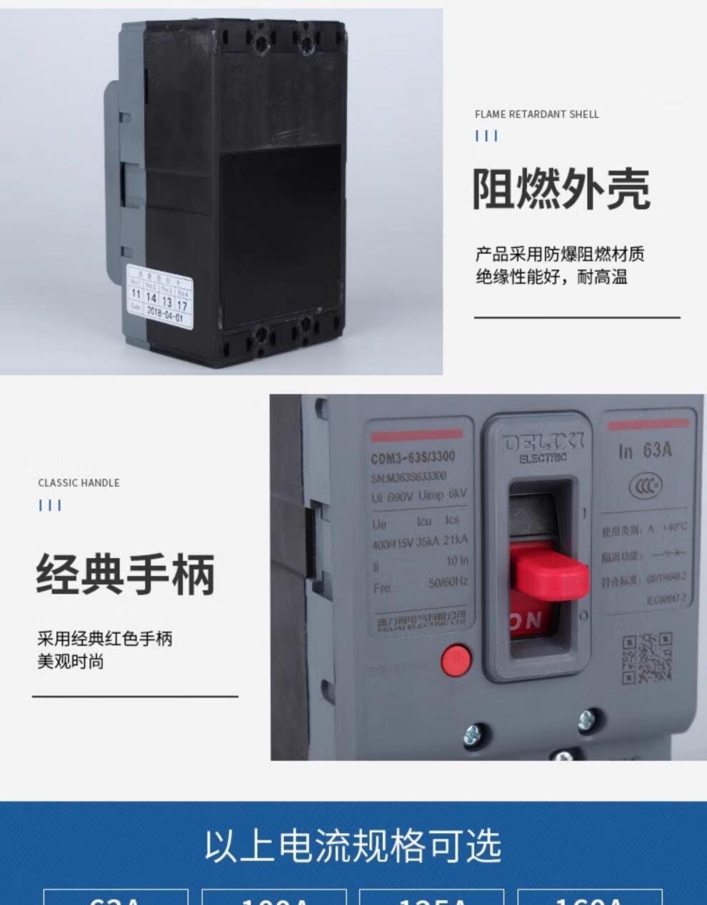 DELIXI CDM3 air switch 3P4P plastic case circuit breaker air switch 100A125A250A40 2P 125A