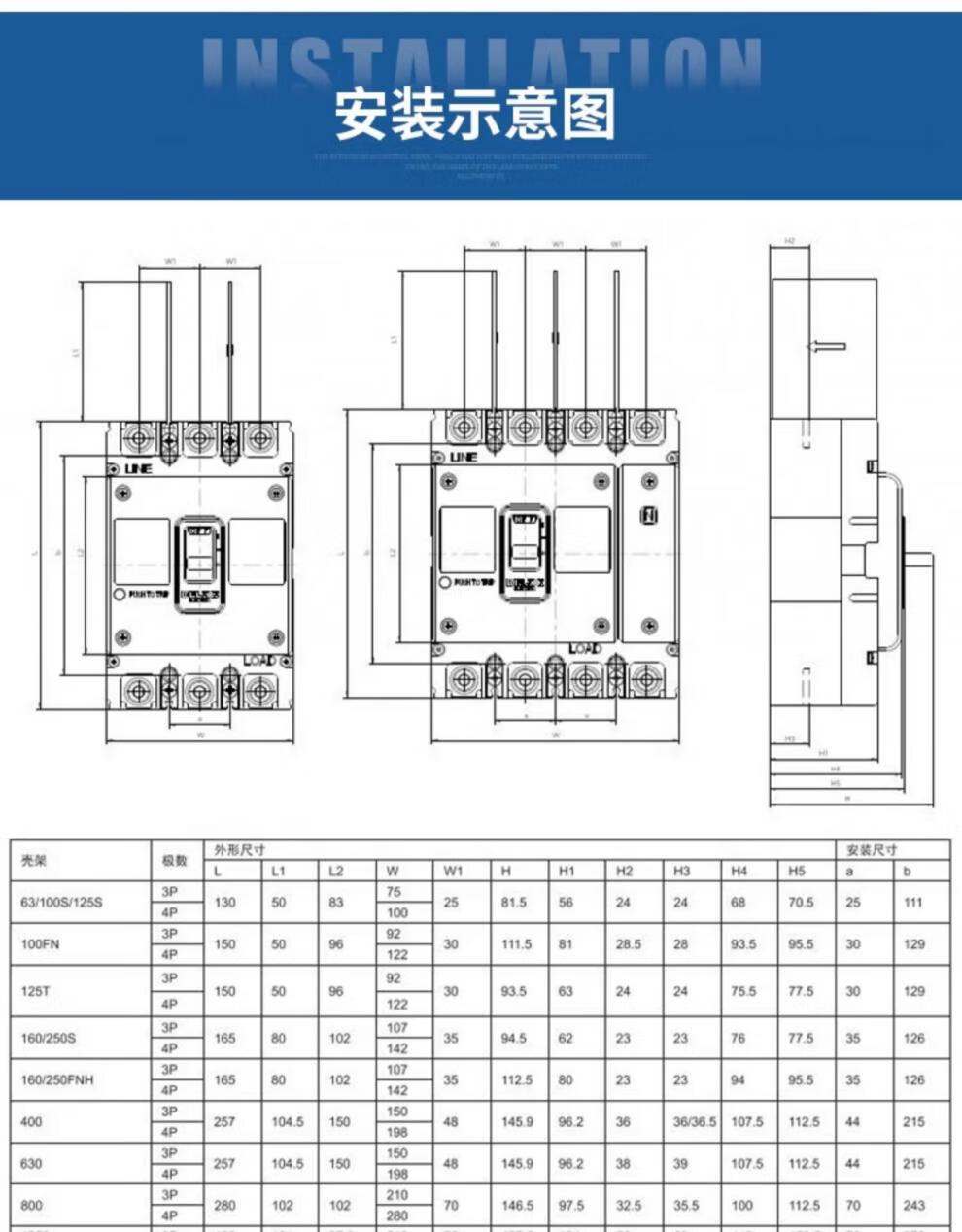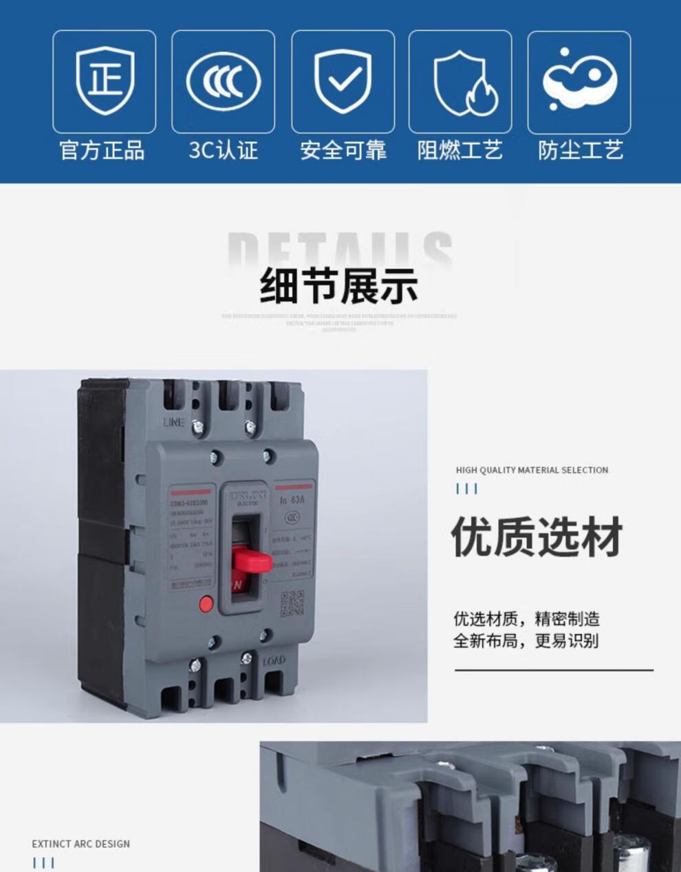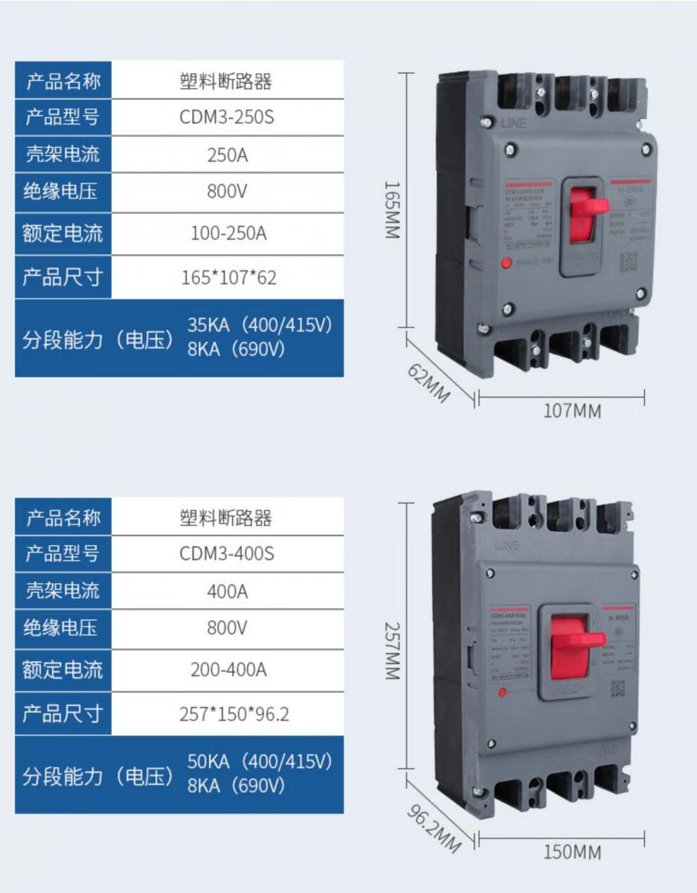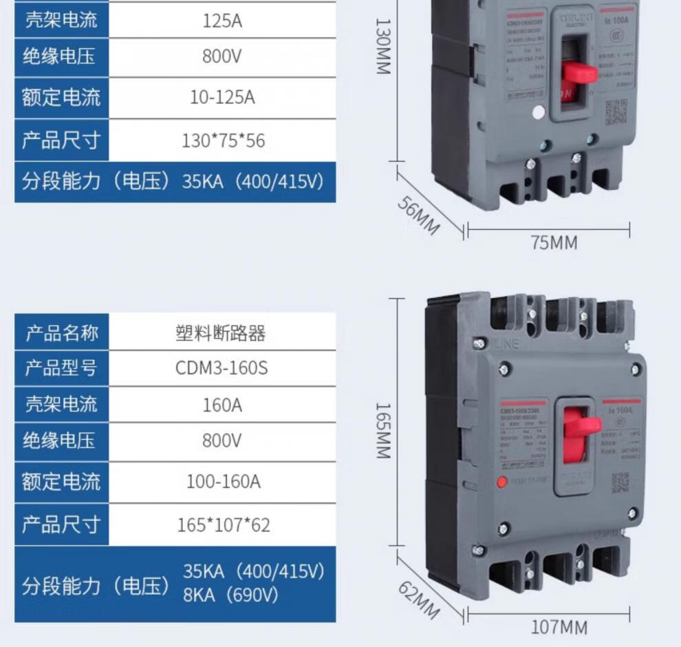 DELIXI CDM3 air switch 3P4P plastic case circuit breaker air switch 100A125A250A40 2P 125A