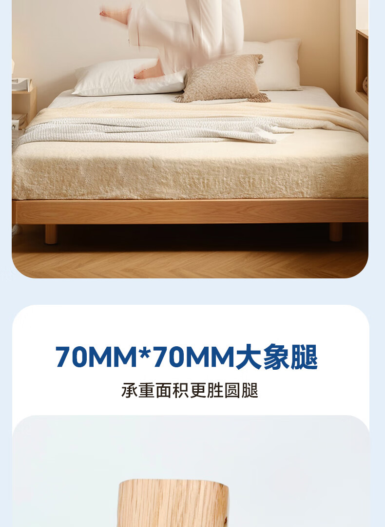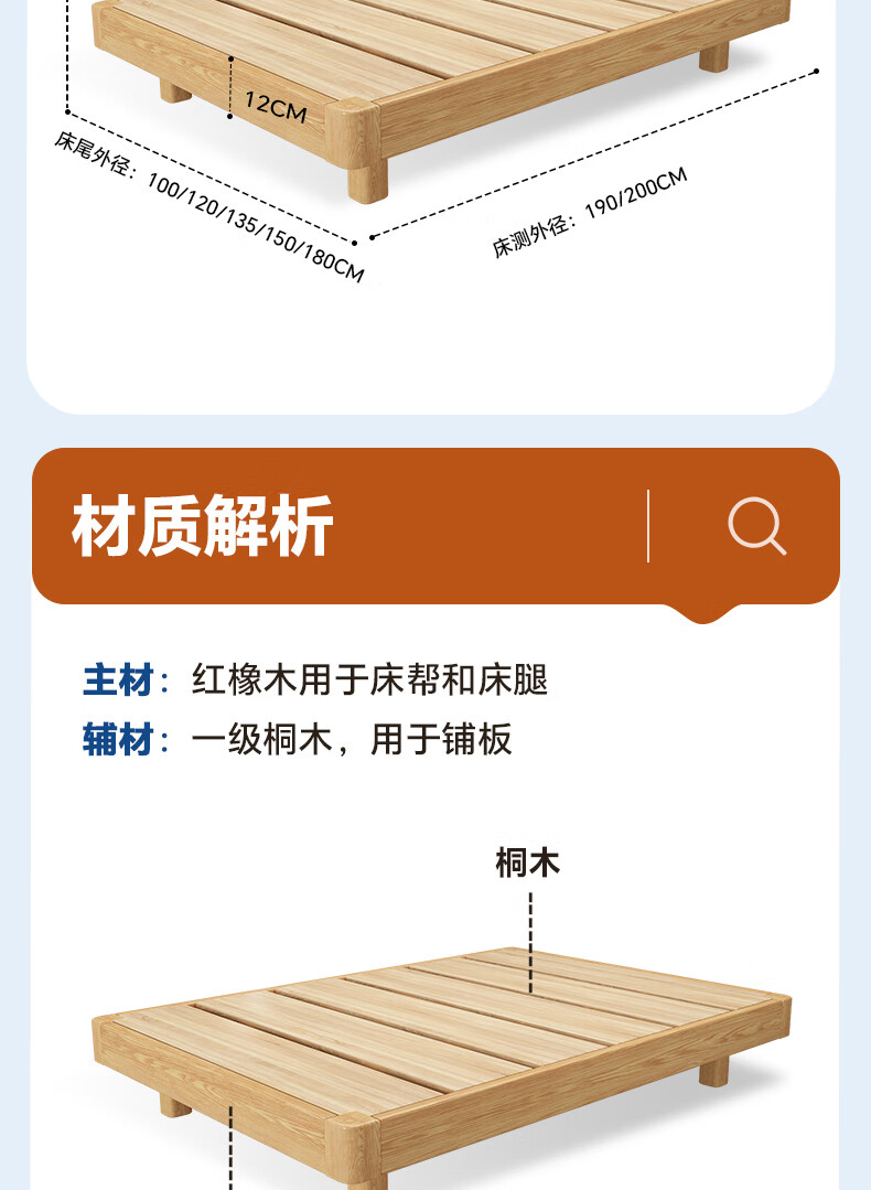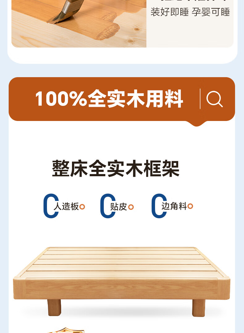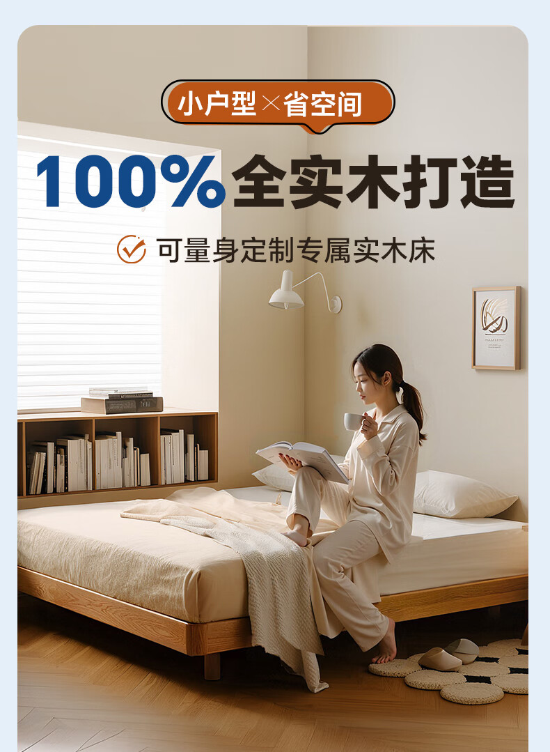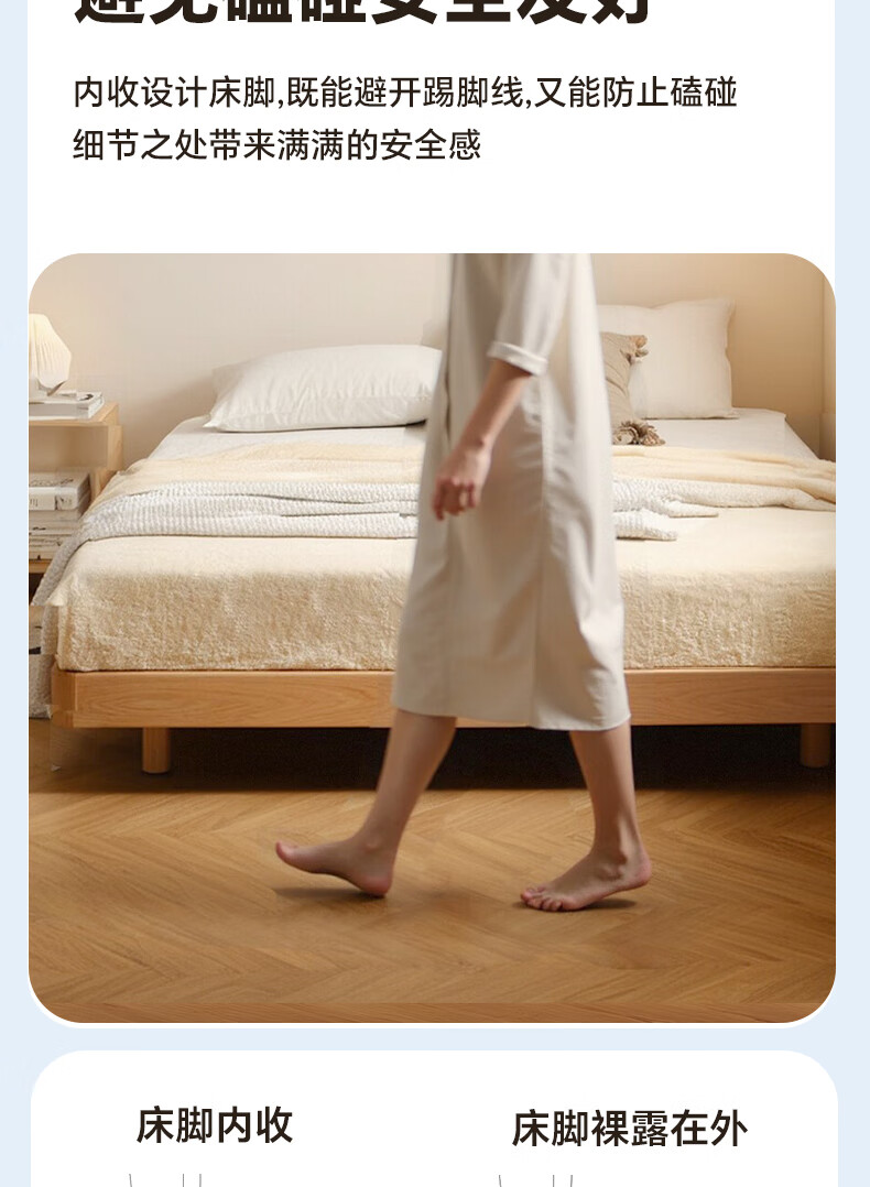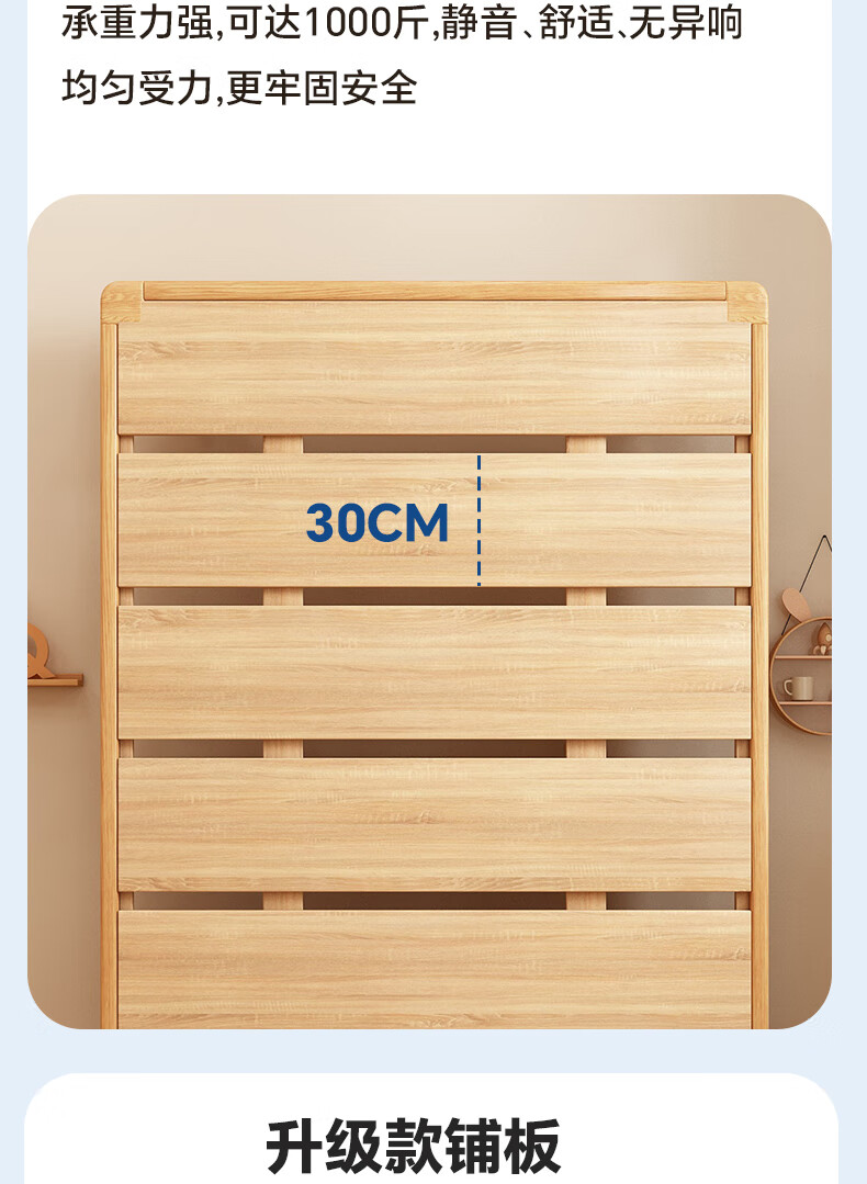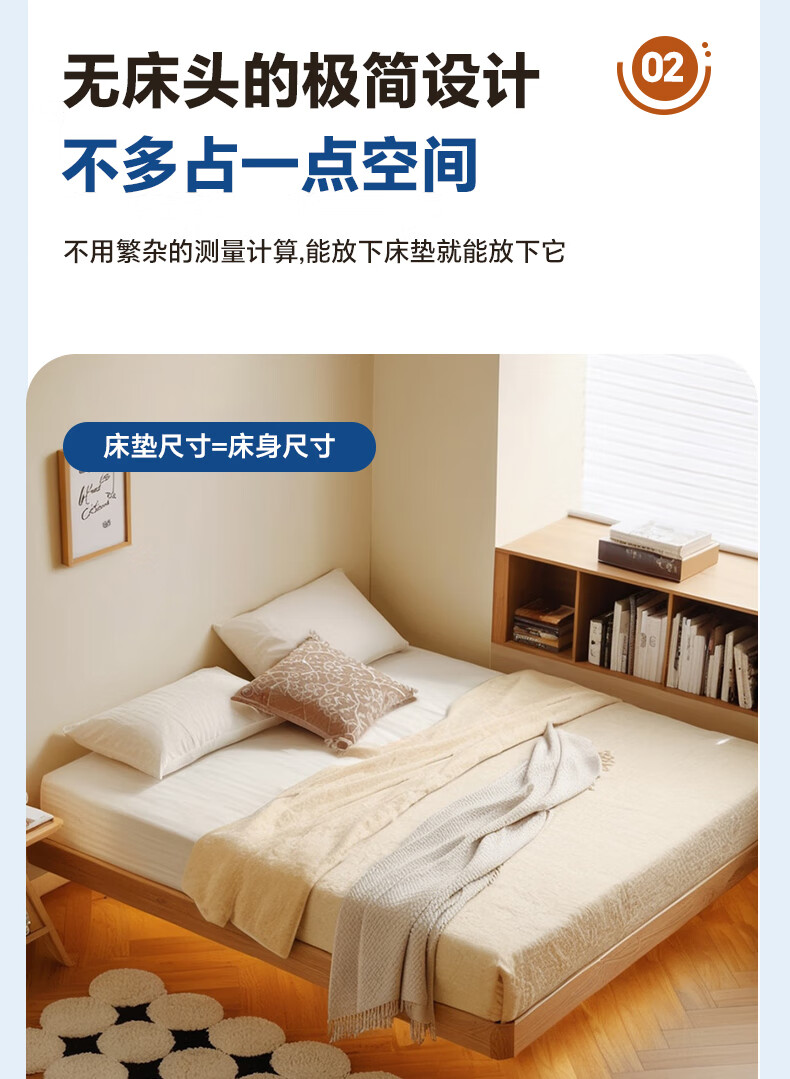 Sainshi no bedside solid wood bed single suspended frame bed frame customized modern simple tatami small apartment space-saving bed height 30CM upgraded edge-level space-saving solid wood 1800mm*2000mm frame structure