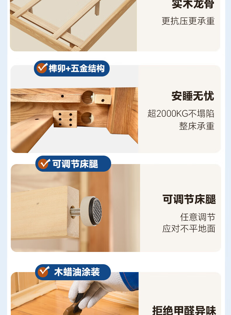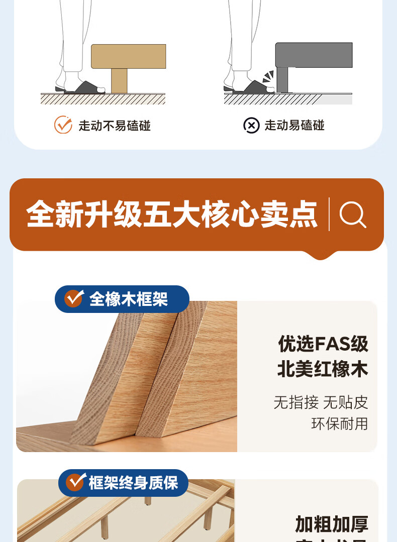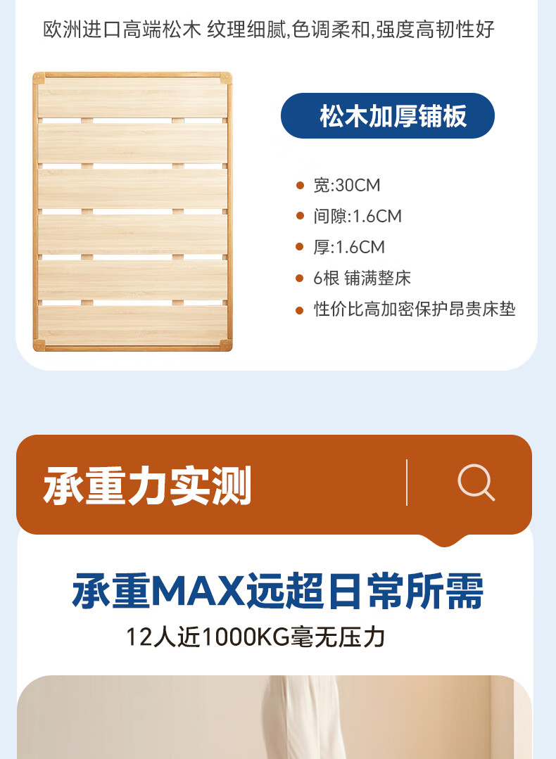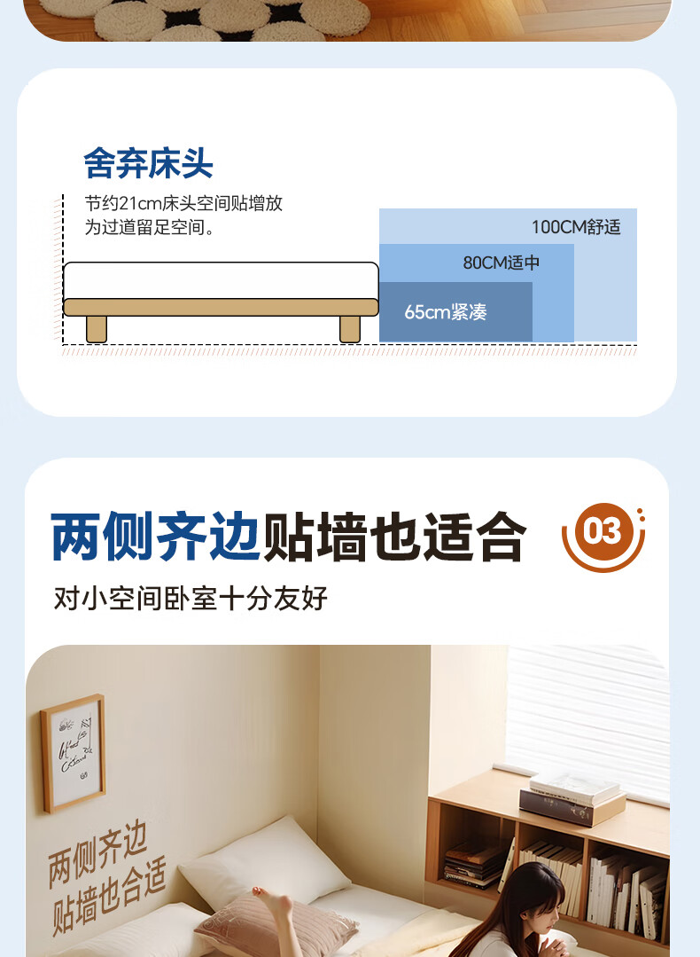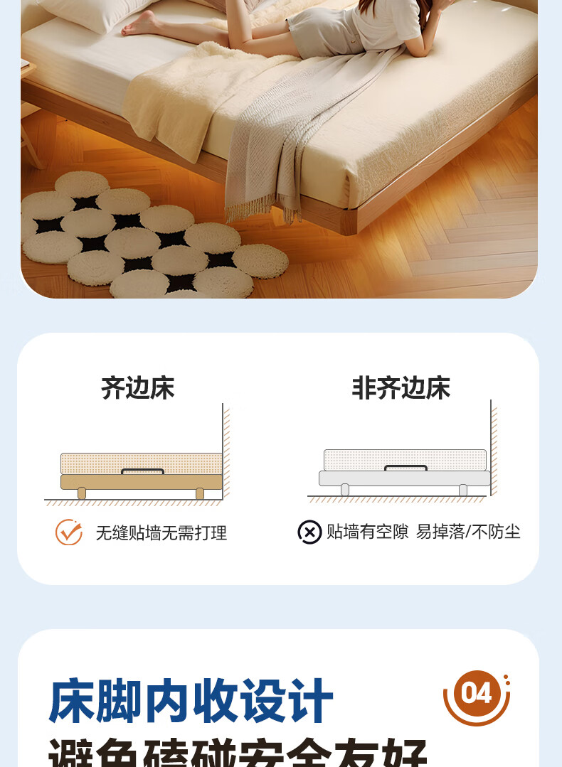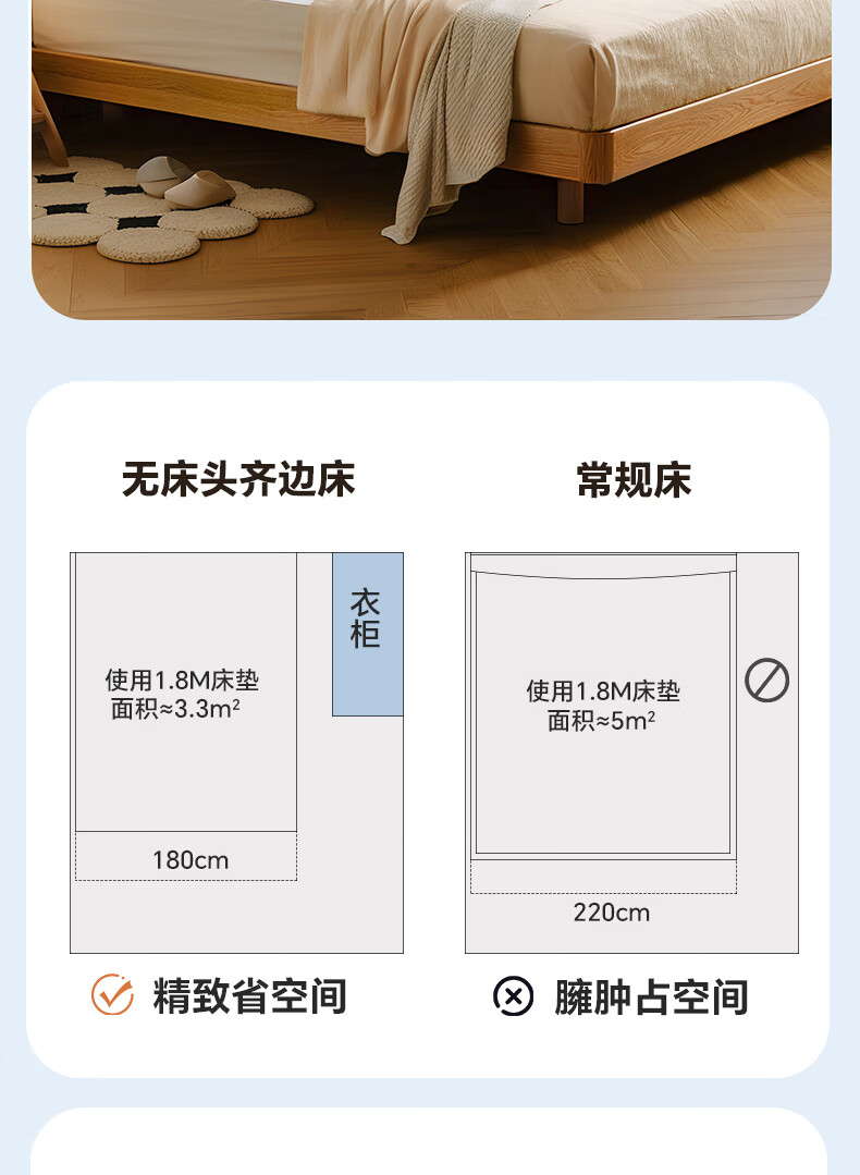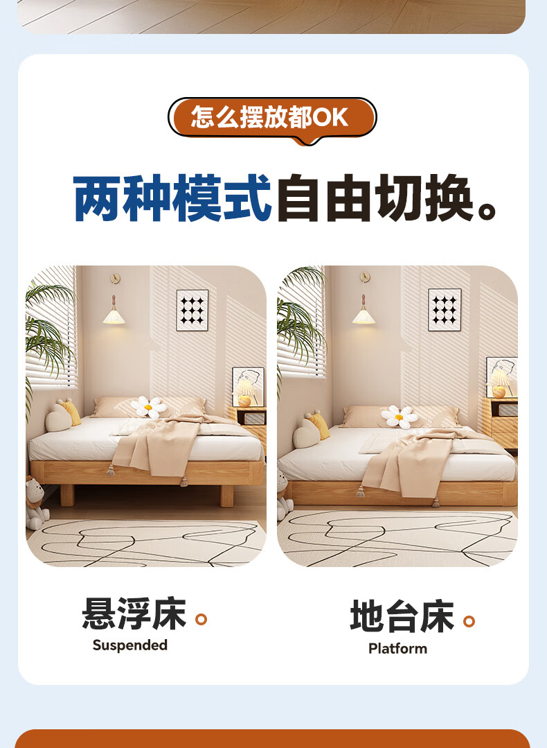 Sainshi no bedside solid wood bed single suspended frame bed frame customized modern simple tatami small apartment space-saving bed height 30CM upgraded edge-level space-saving solid wood 1800mm*2000mm frame structure