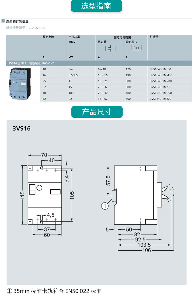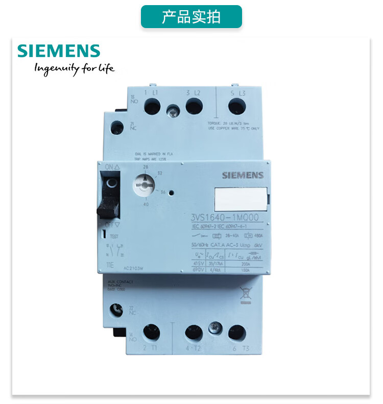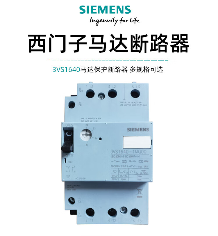 Motor protection circuit breaker 3VS1640-1MP00 MQ00 MR00 MN00 replaces 3VU1640 3VS1640-1MQ0028-40A