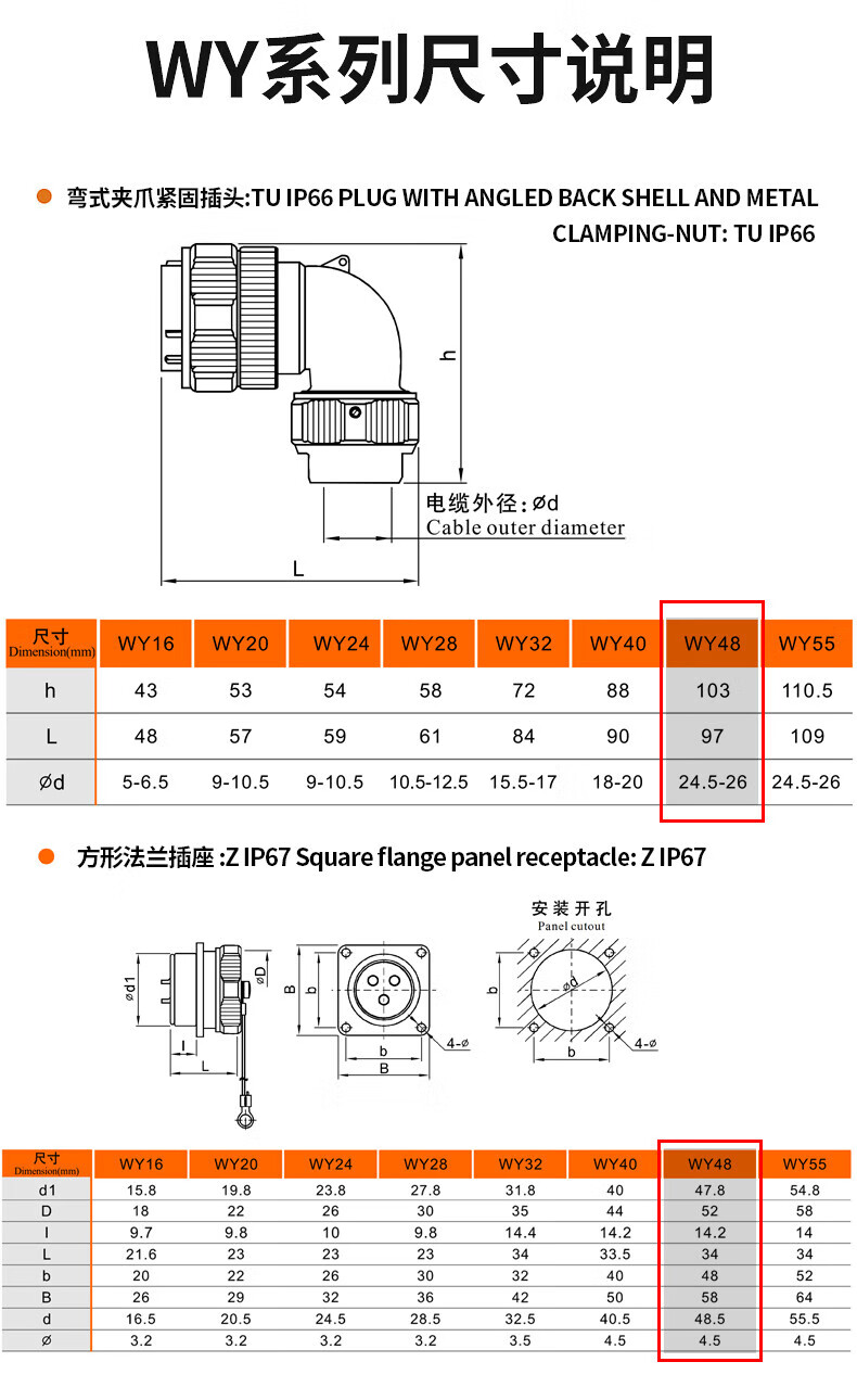 Chengyang Waterproof Aviation Plug Seat WY48-20 Core 27 Core 38 Core 42 Core Bend Clamp Fastening Plug WY48-27 Core (TU+Z)