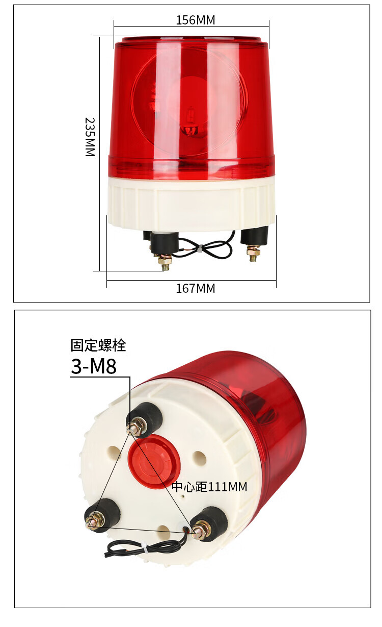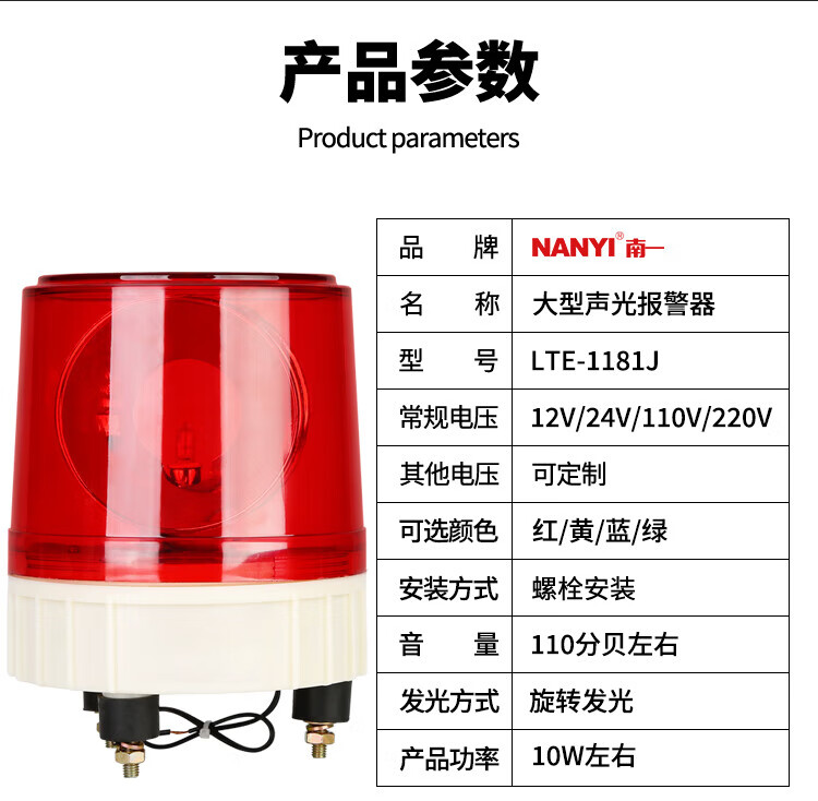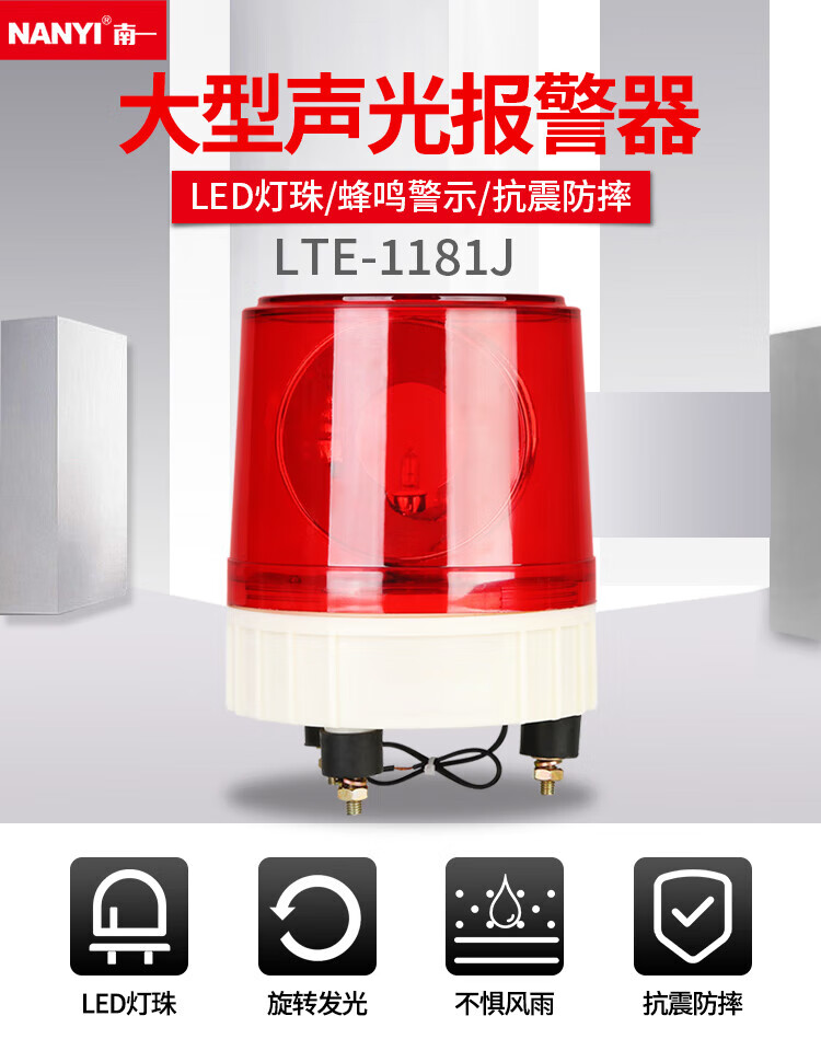 Nanyi Large Sound and Light Alarm LTE-1181J Warning Strobe Light 12V/24V Guard Box Alarm Flashing Light Silent Screw Type 12V
