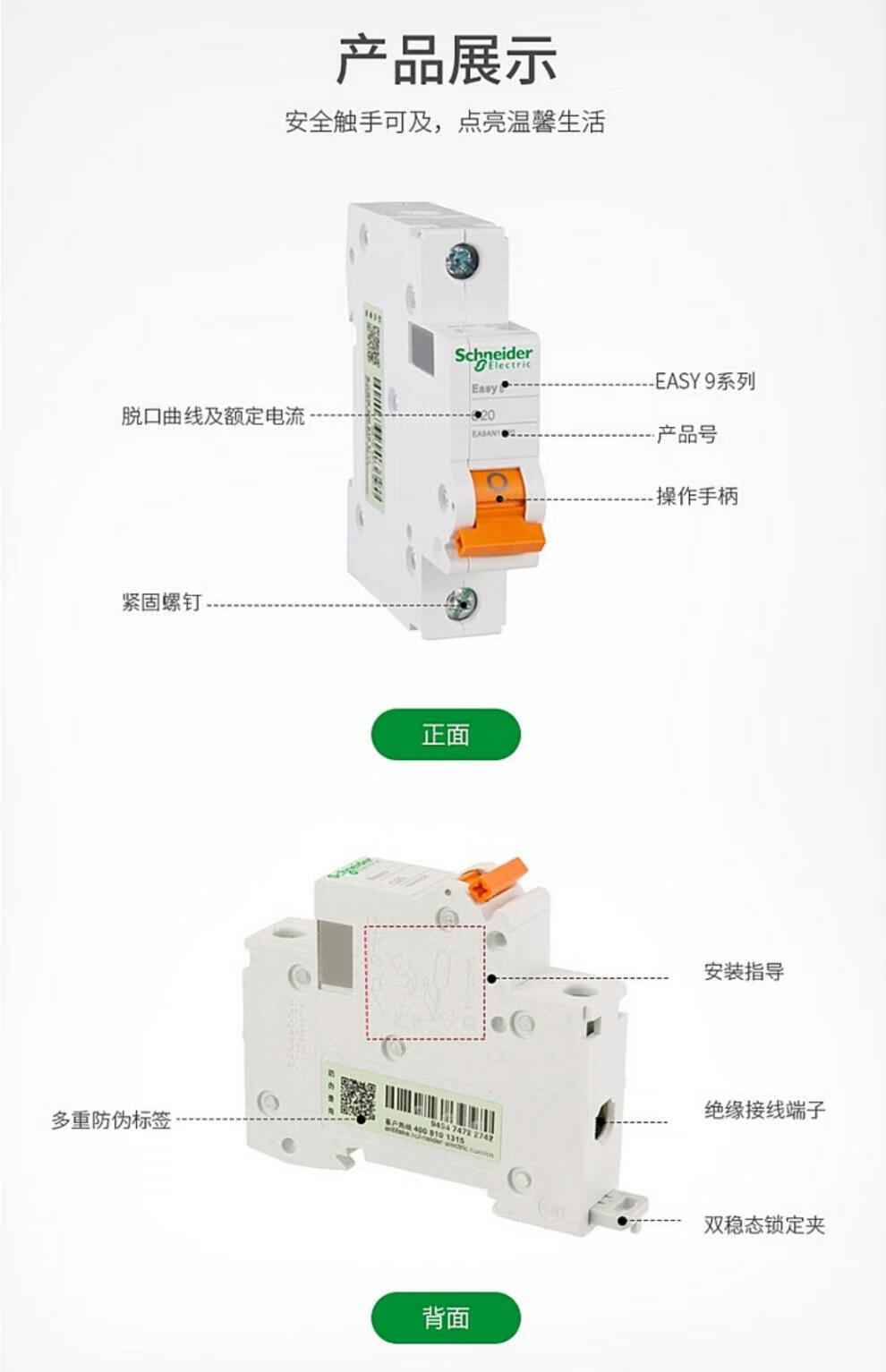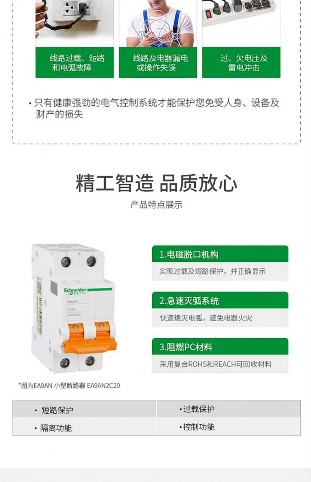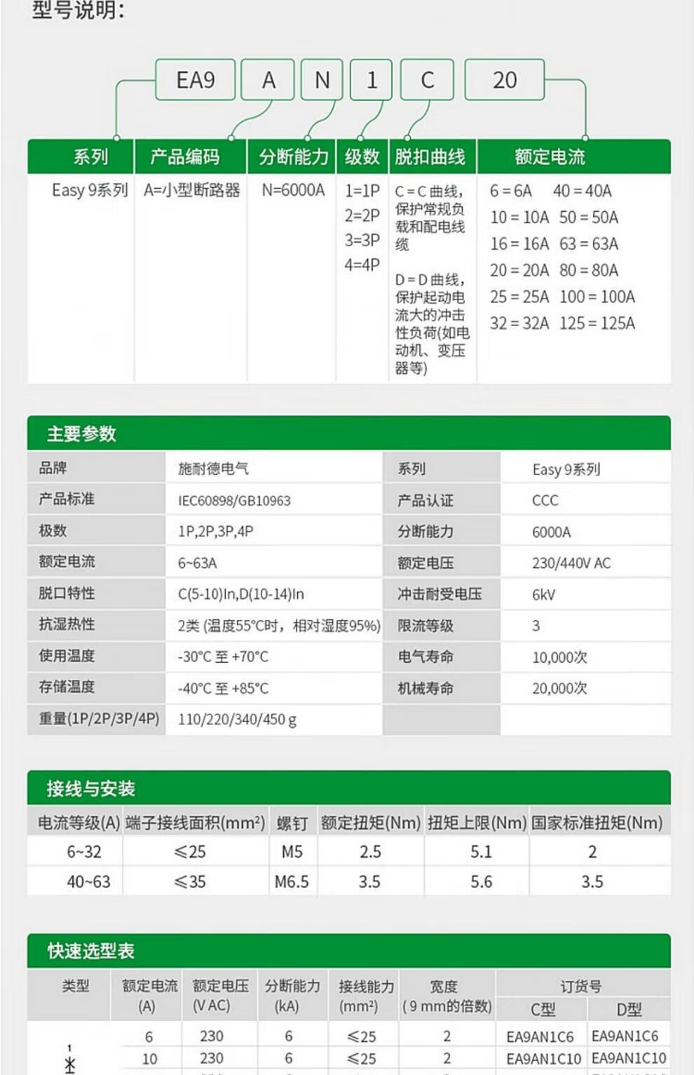 Schneider small circuit breaker EA9AN1 1P C/D type 6/10A/16A/20A/25/32/40/50/63 EA9AN1D16 1P D16A