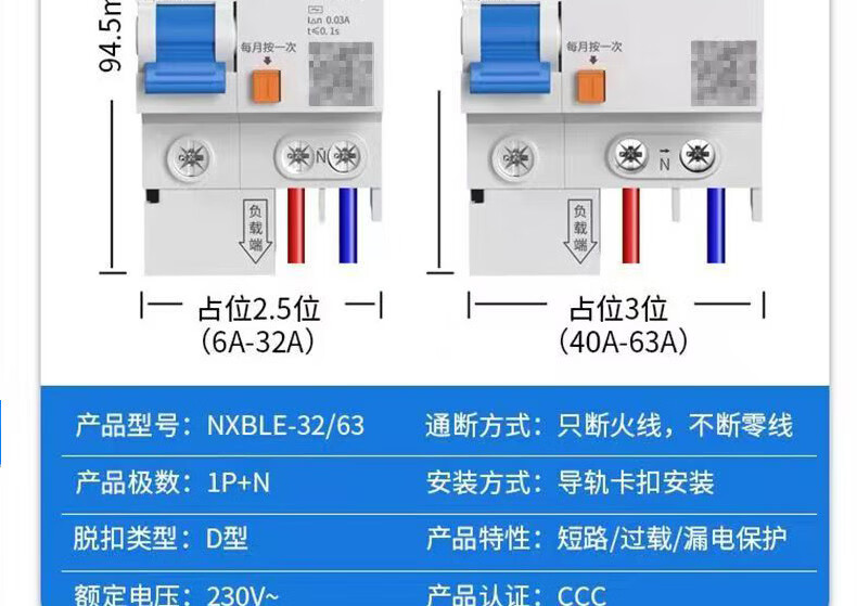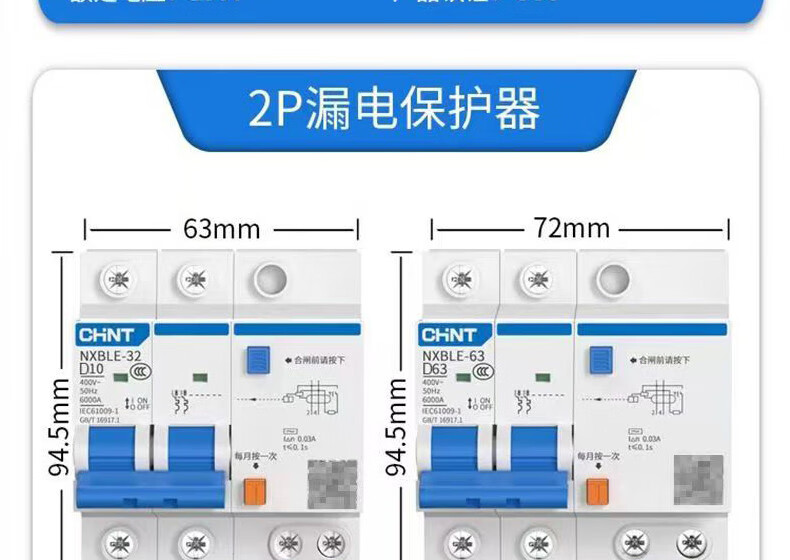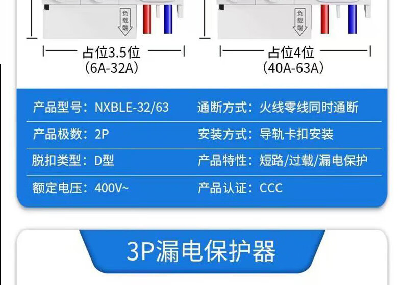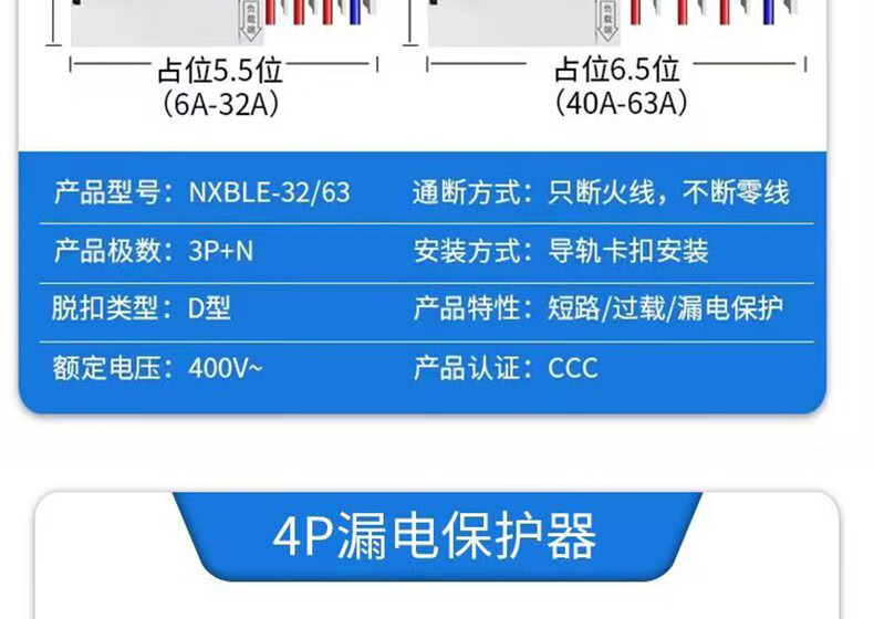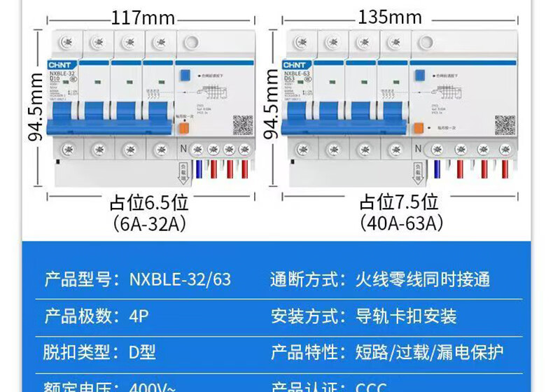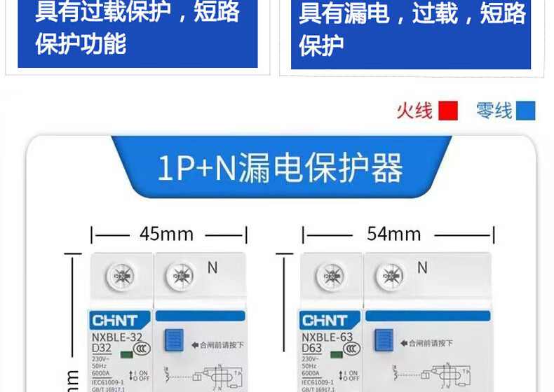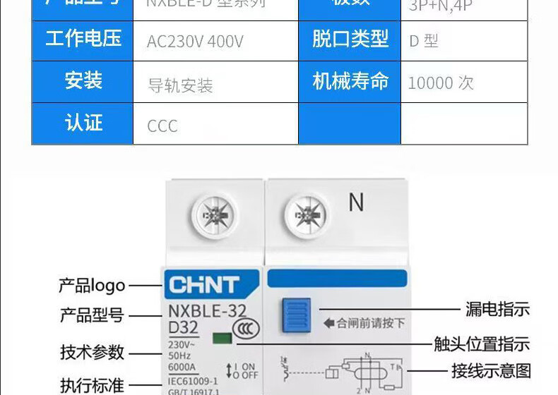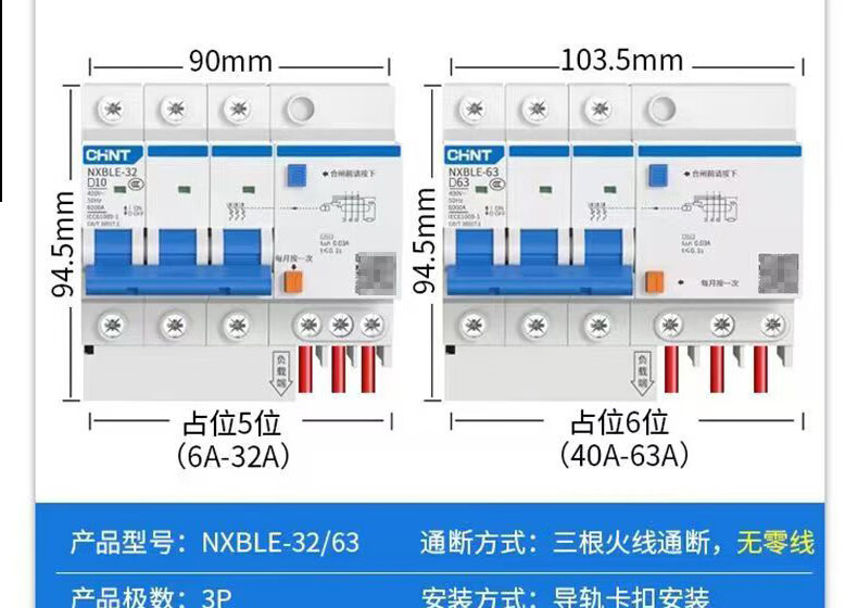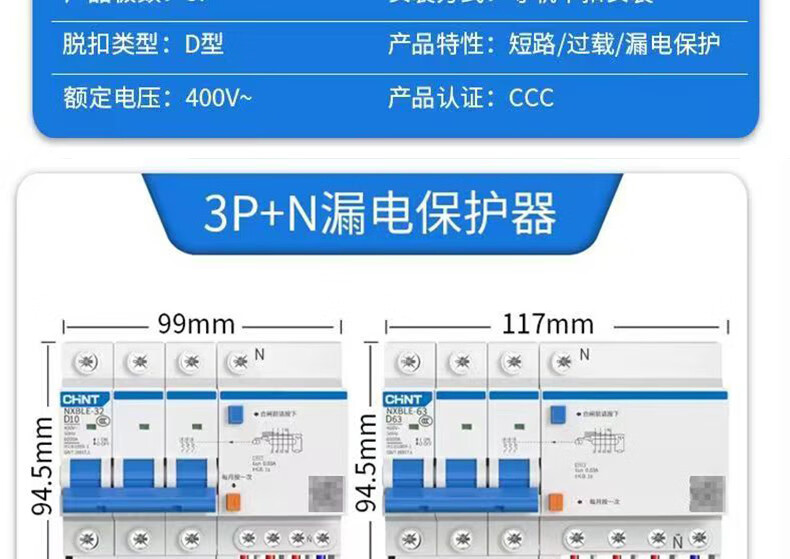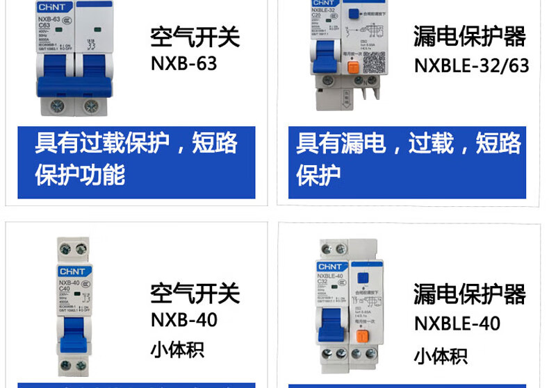 Chint NXBLE-32 D type leakage protection switch 3P63A air conditioning switch 2p32A leakage switch protector 32A 3P+N
