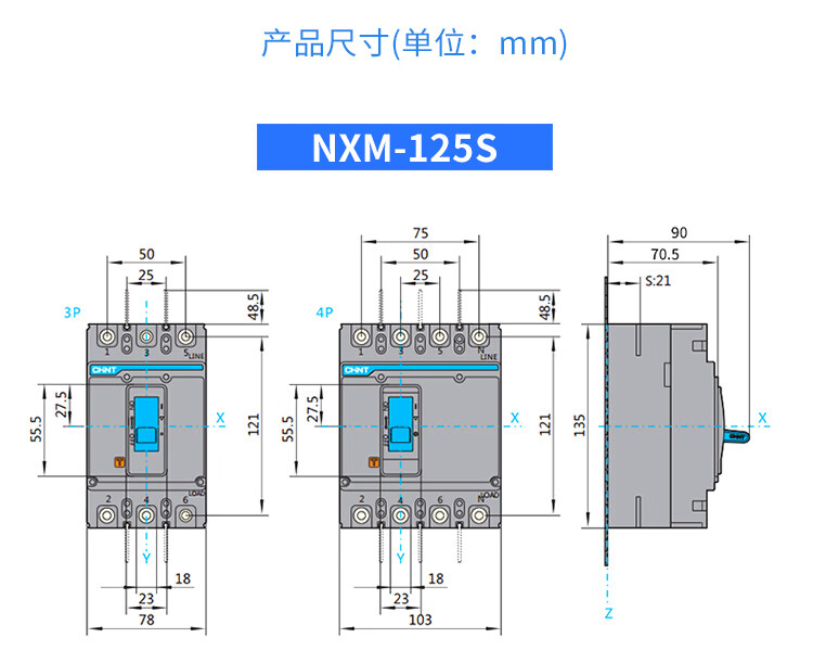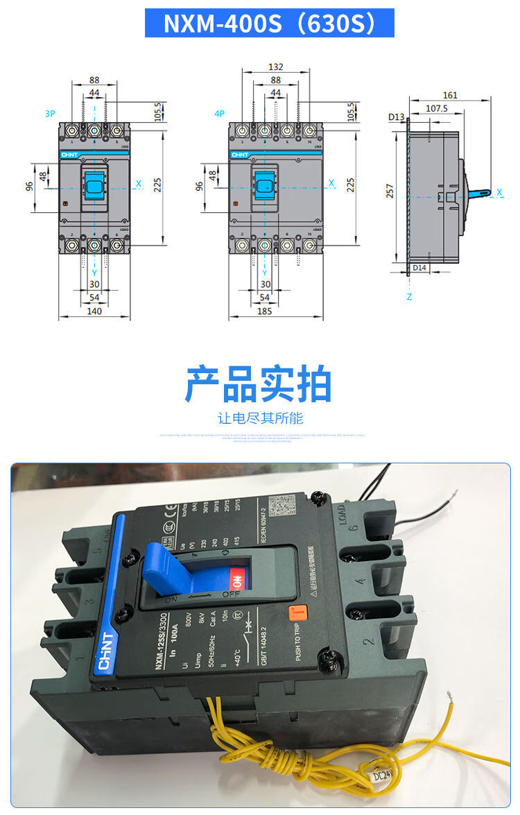 CHNT Chint circuit breaker NXM-125S/3340 100A 250A 400A with shunt release and auxiliary contact 100A 3P