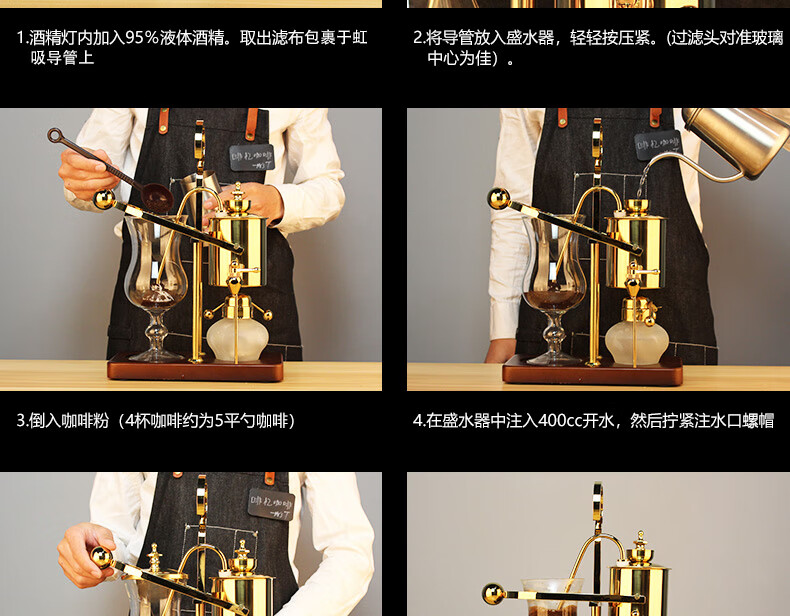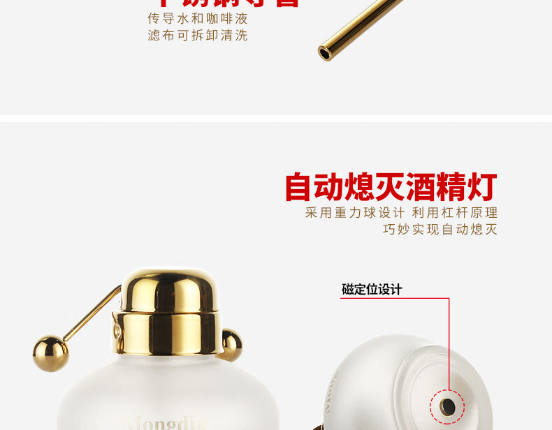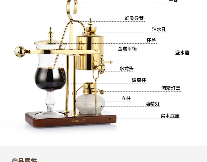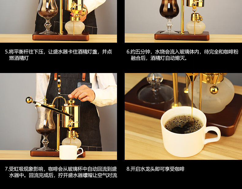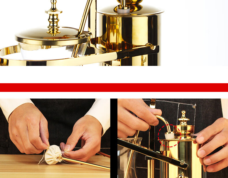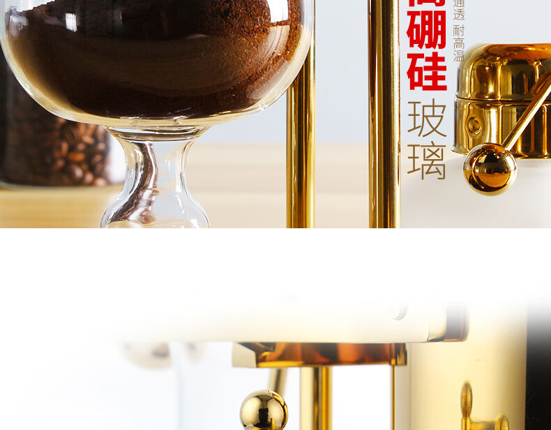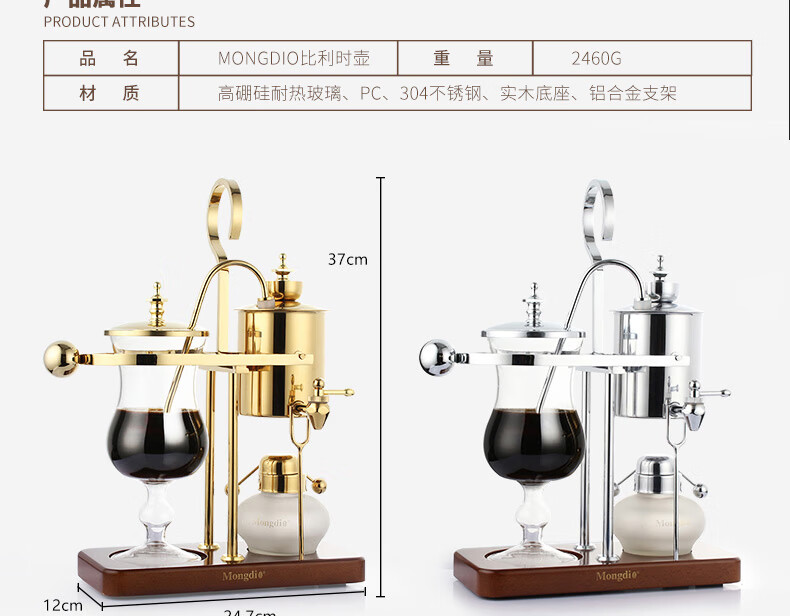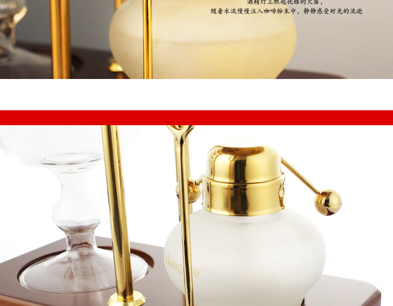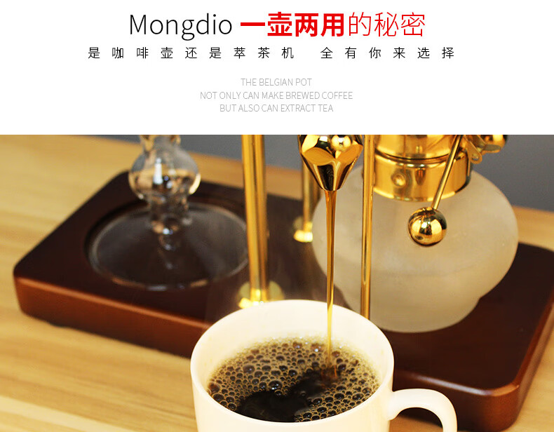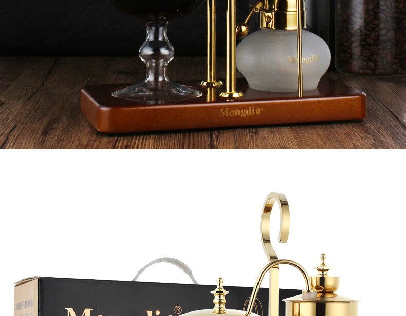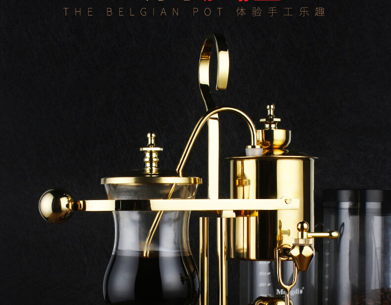 Mongdio Royal Belgian Pot Home Stainless Steel Siphon Coffee Maker Filter Pot Coffee Pot Set Rich Gold