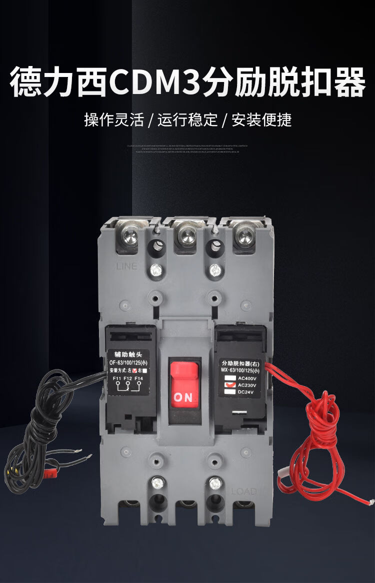 Shunt release auxiliary contact alarm contact CDM3 CDM3S-63 125 400/630 fire strong cut shunt release DC24V CDM3/CDM3S-160/250