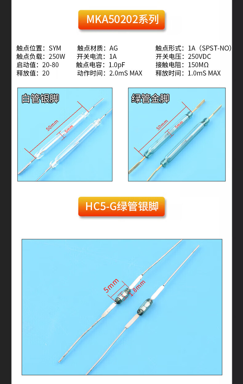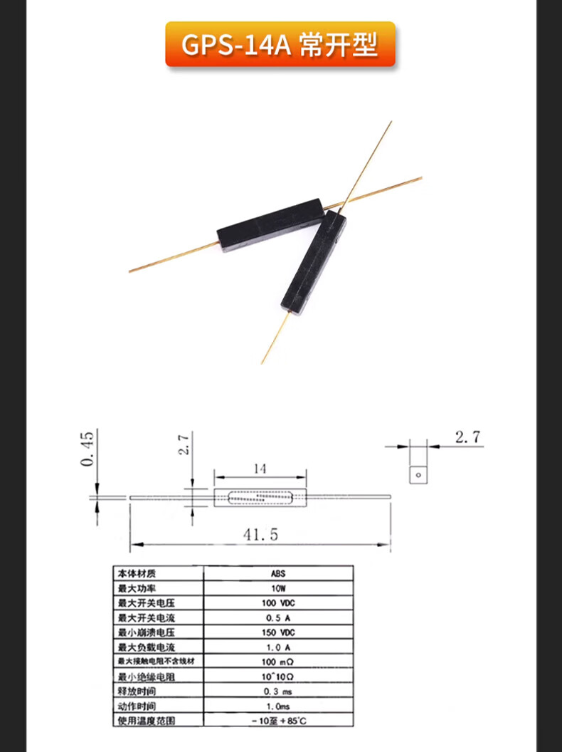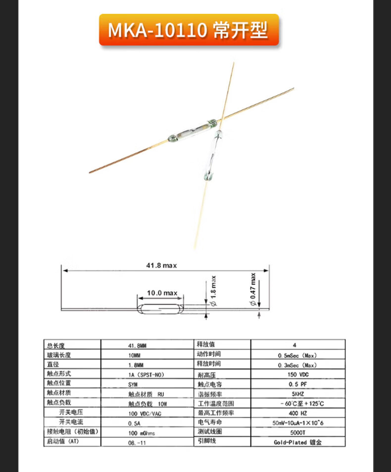 MKA14103 reed switch normally open type normally closed anti-vibration and anti-damage magnetic switch gold-plated glass GPS-11A 14MM MKA-14103 normally open type (5 pieces) no specifications