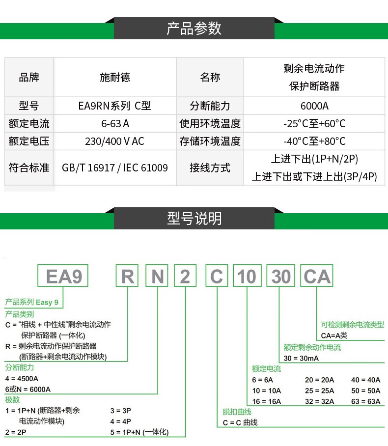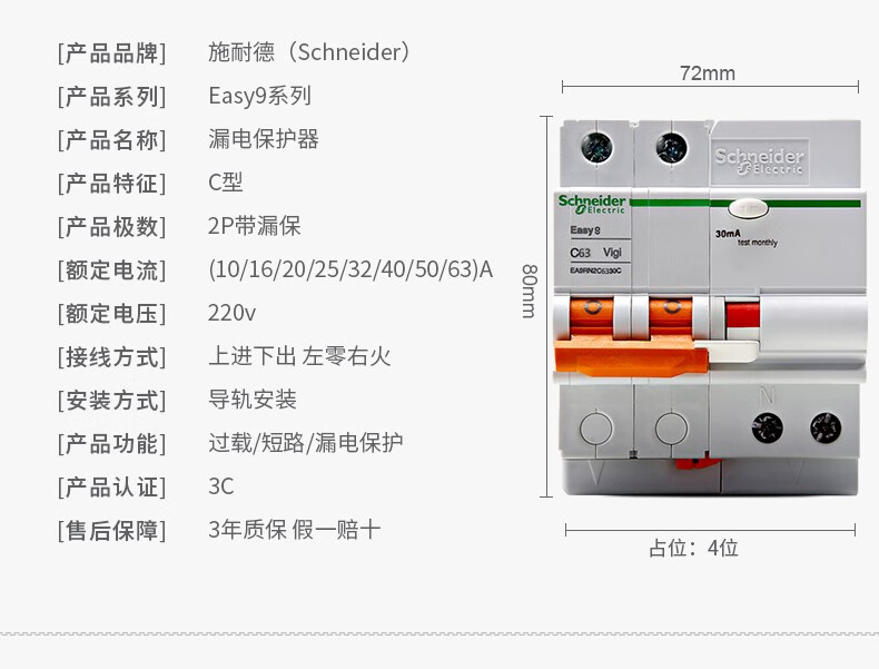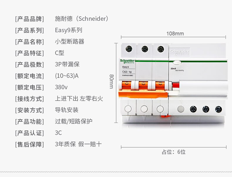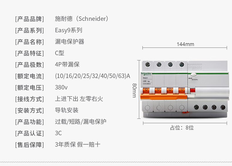 Schneider air switch E9 circuit breaker with leakage protection 1P+N/2P/3p/4p small 63A leakage protector 6A 3P