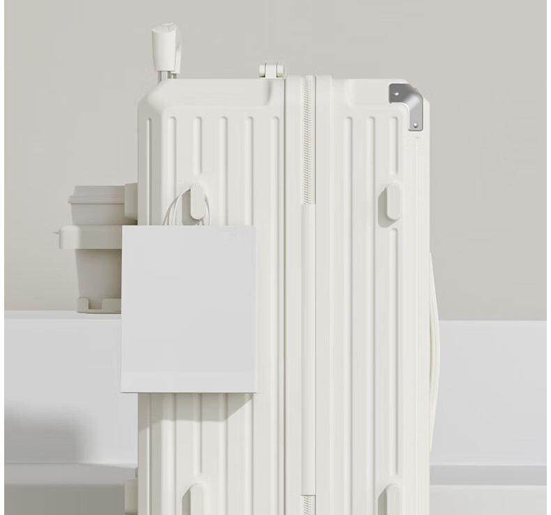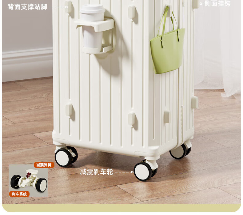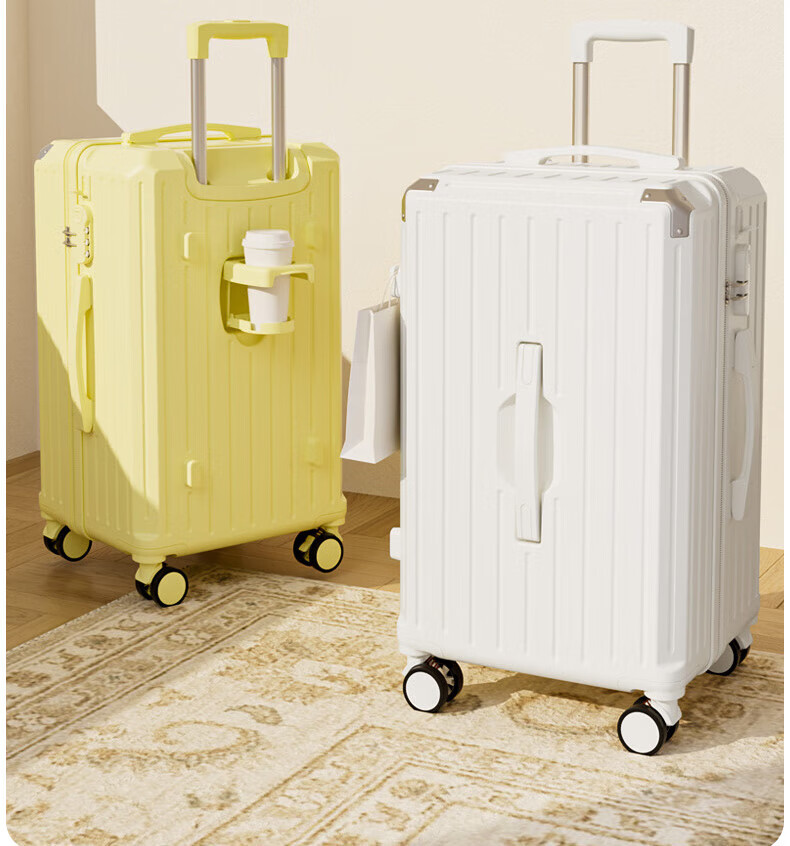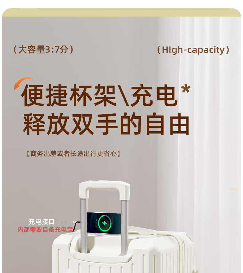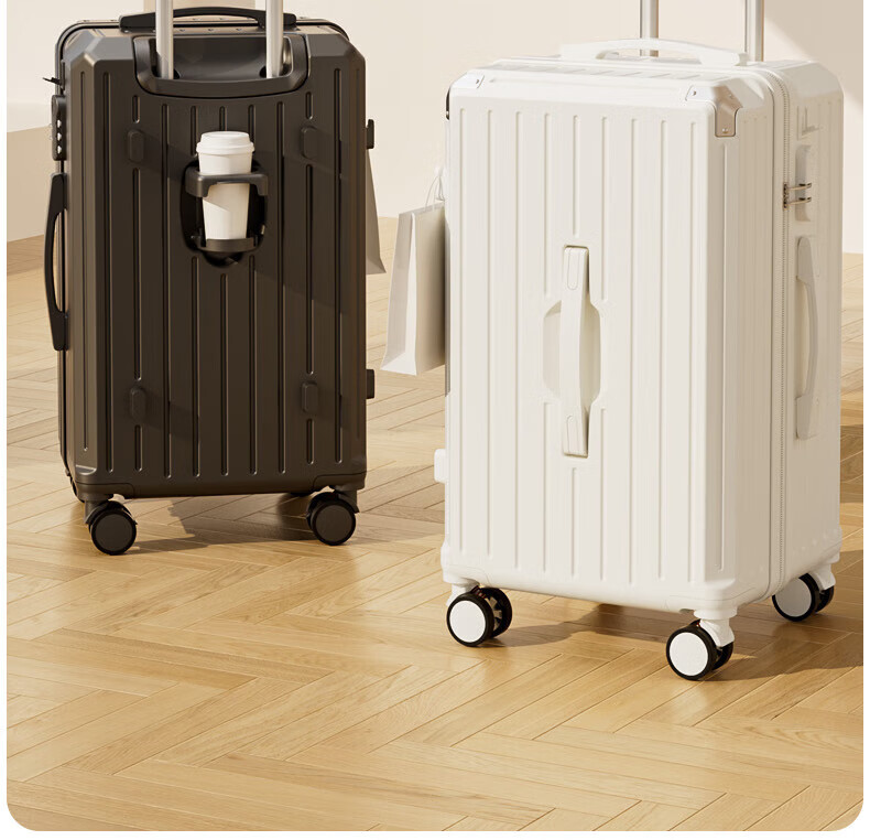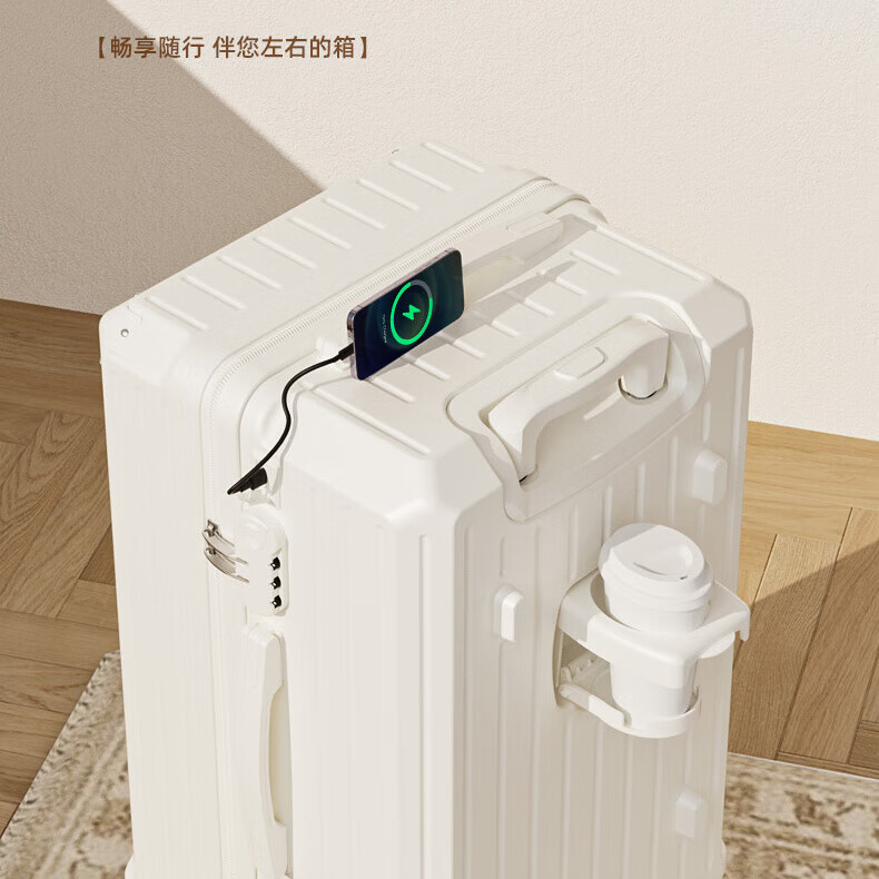 Lianang large-capacity suitcase for male and female students, good-looking multi-functional suitcase, large suitcase for studying abroad, grain white, cup holder + charging port + brake shock absorption, 24 inches, upgraded and thickened version