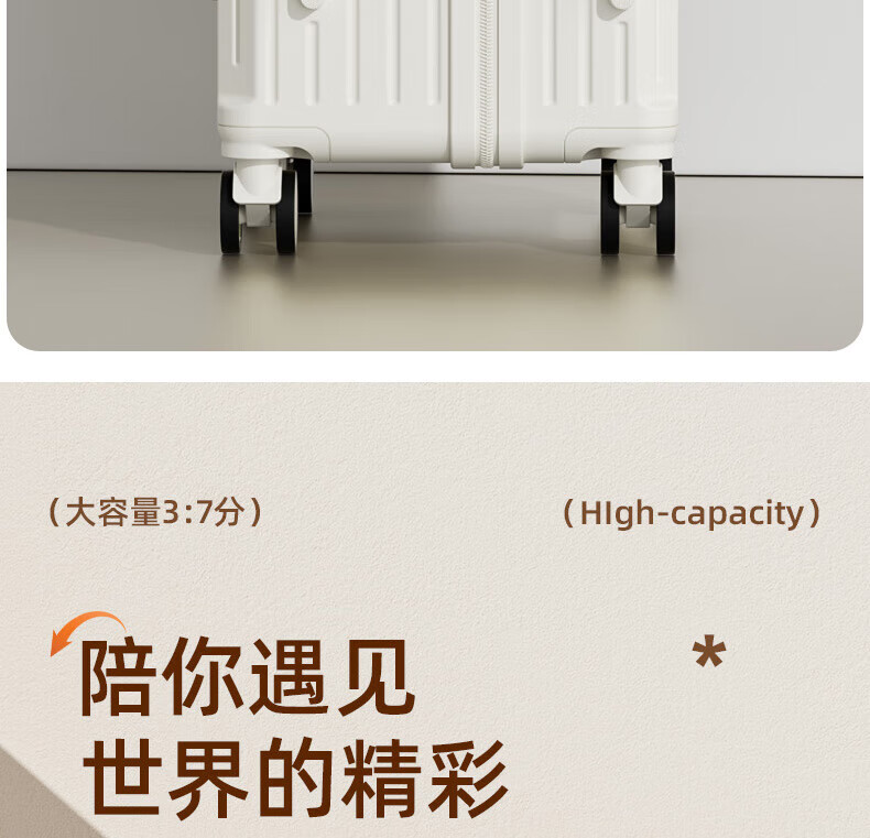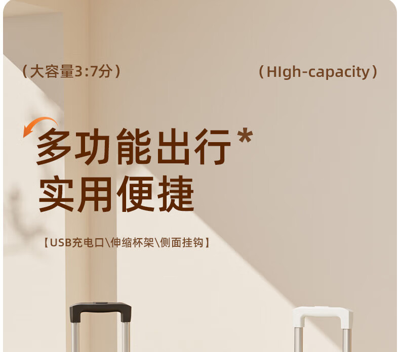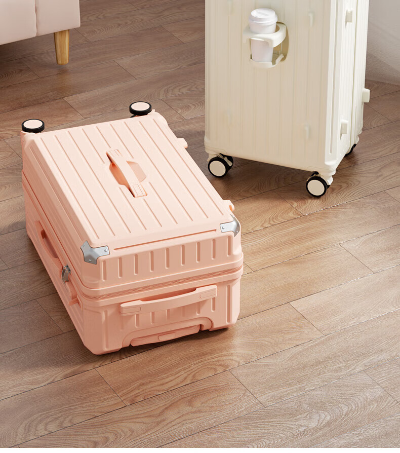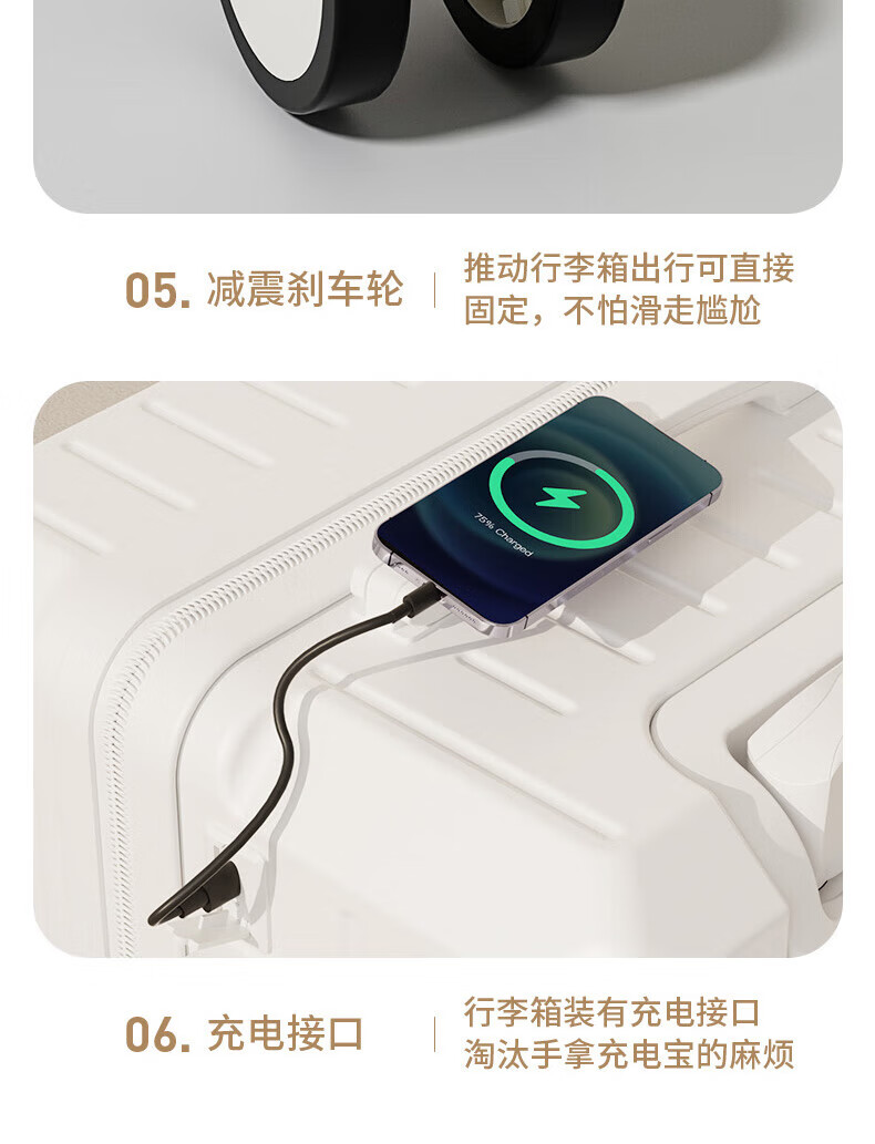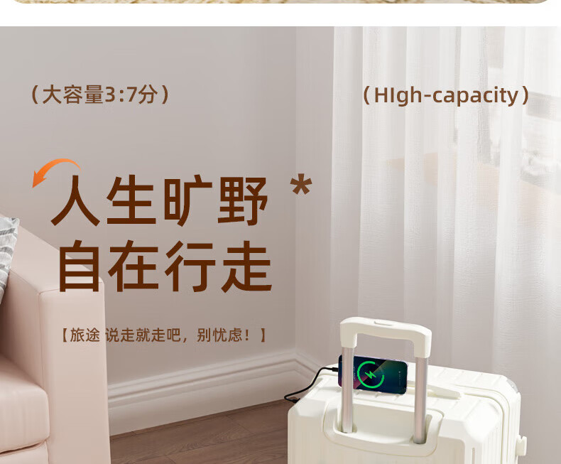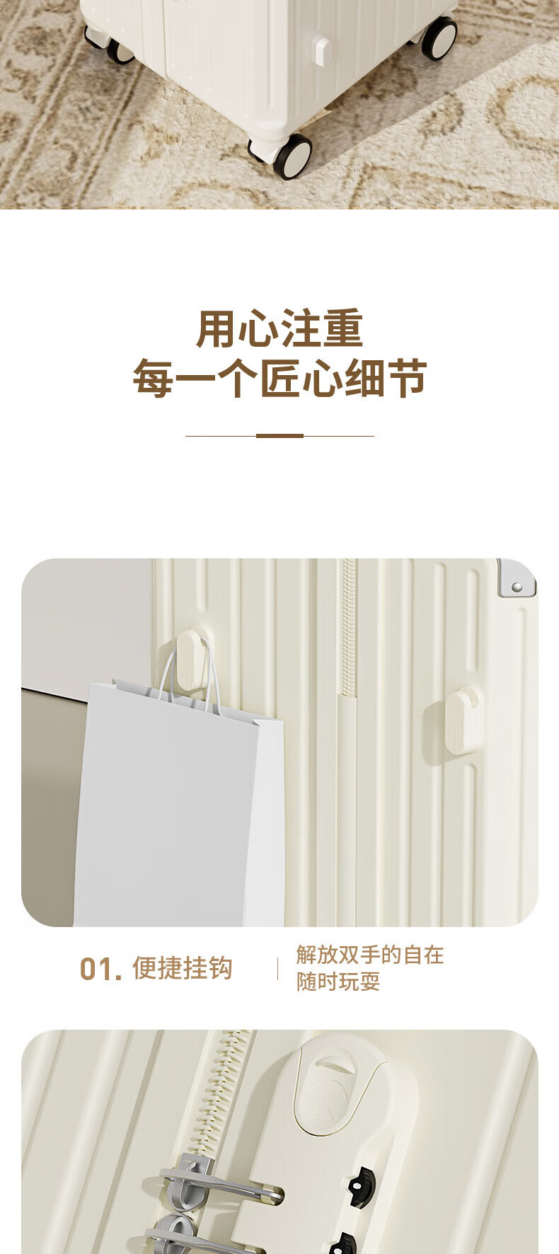 Lianang large-capacity suitcase for male and female students, good-looking multi-functional suitcase, large suitcase for studying abroad, grain white, cup holder + charging port + brake shock absorption, 24 inches, upgraded and thickened version