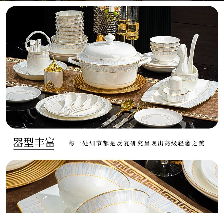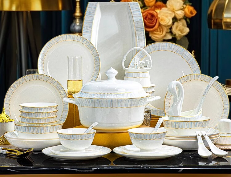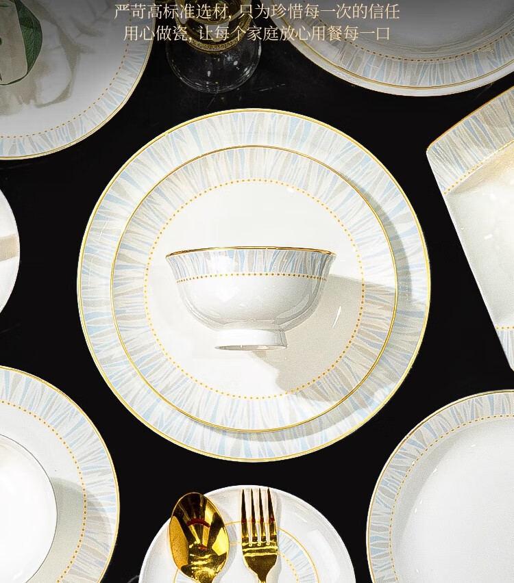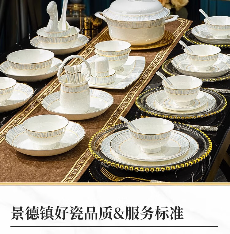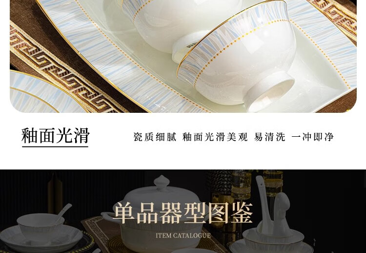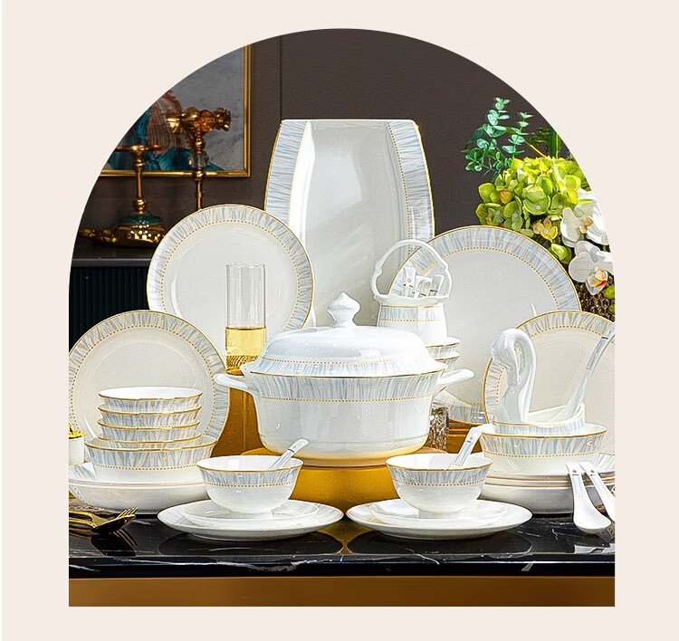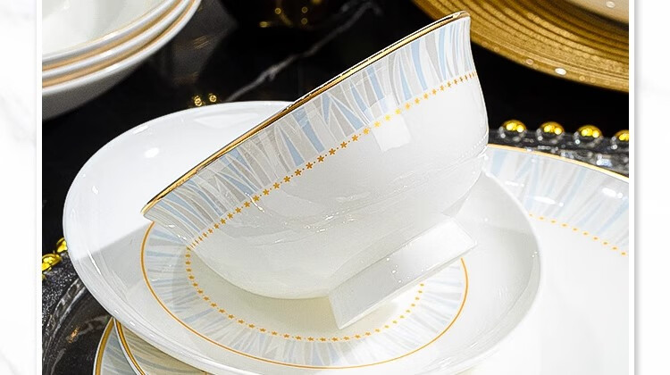 Ruxi Jingdezhen bowl set household 2025 new high-looking ceramic tableware complete set of bowls, plates and chopsticks as a housewarming gift Frozen 4-person soup bowl configuration 24-piece set