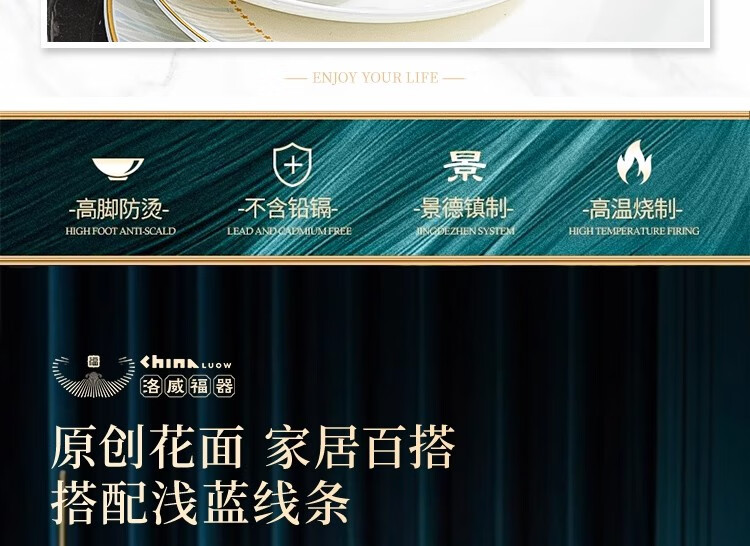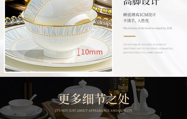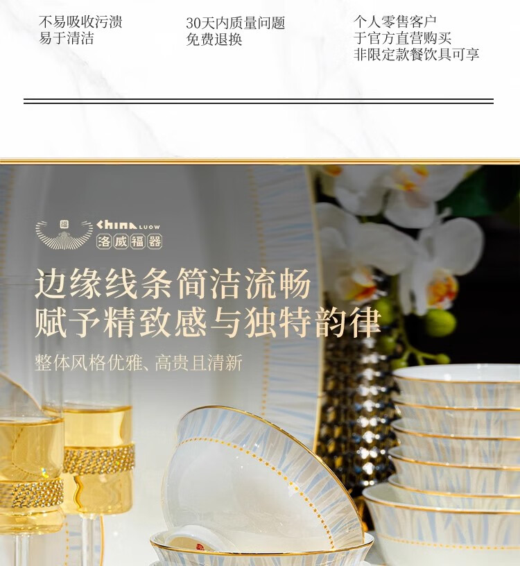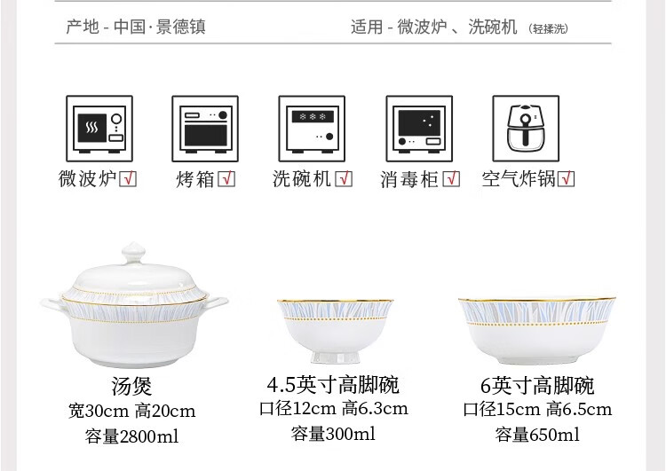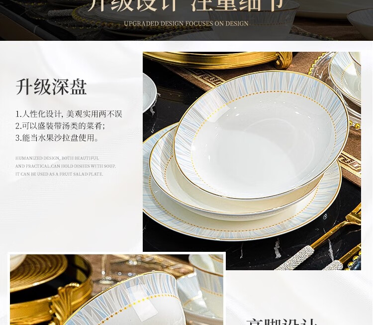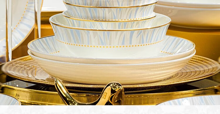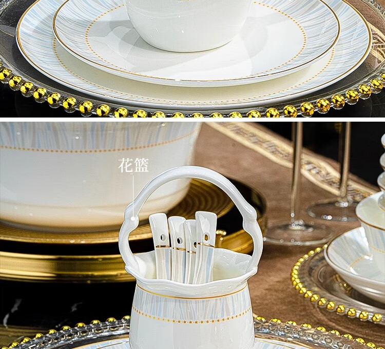 Ruxi Jingdezhen bowl set household 2025 new high-looking ceramic tableware complete set of bowls, plates and chopsticks as a housewarming gift Frozen 4-person soup bowl configuration 24-piece set