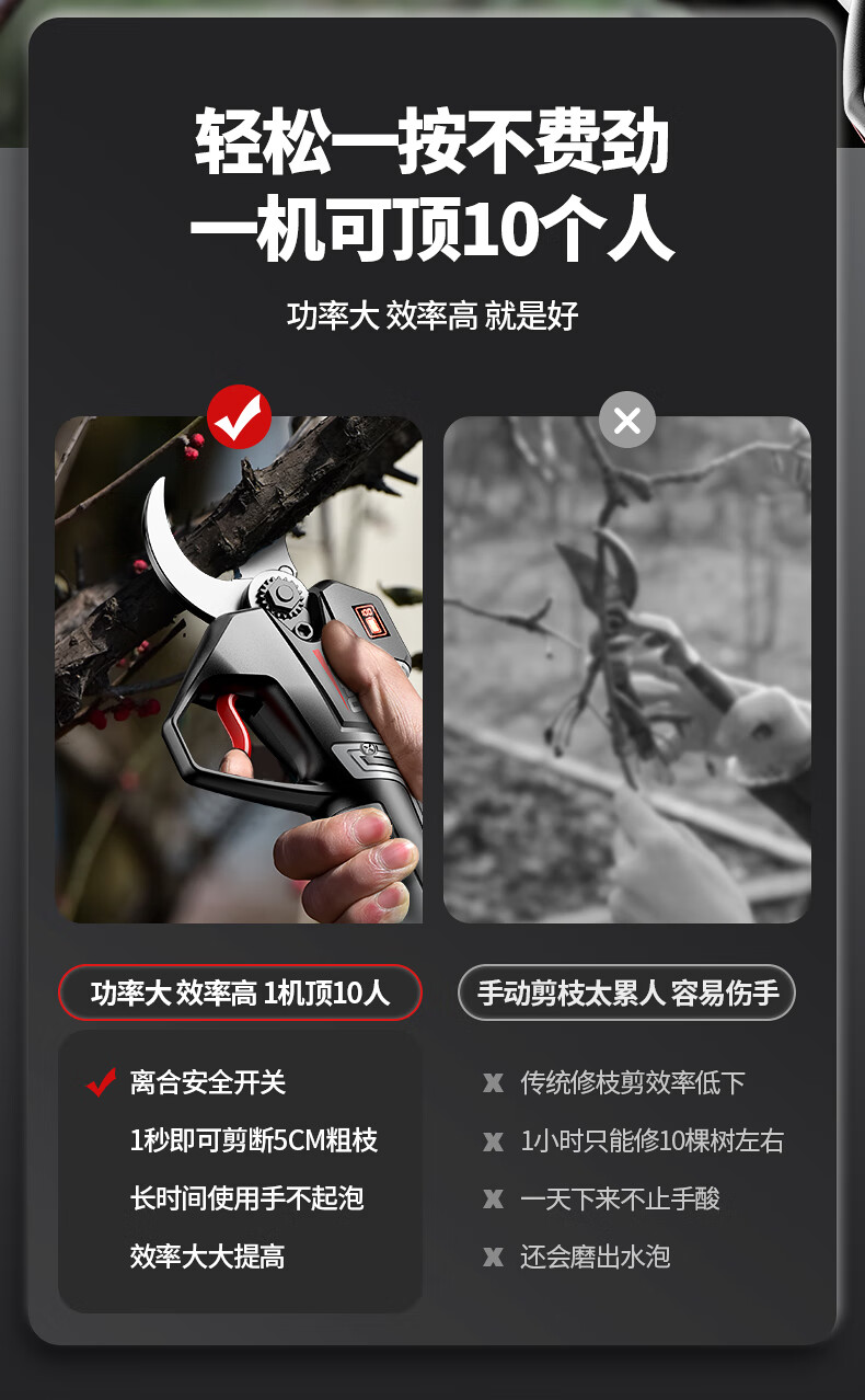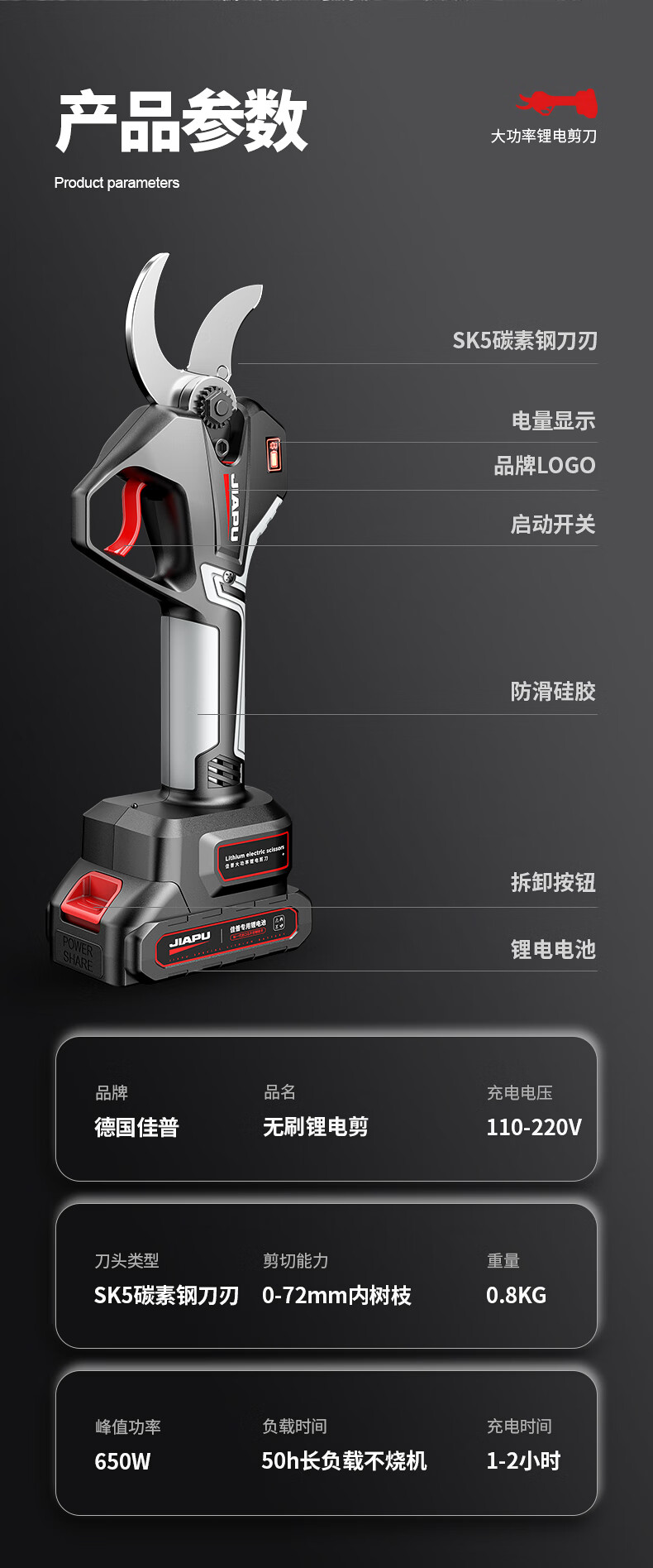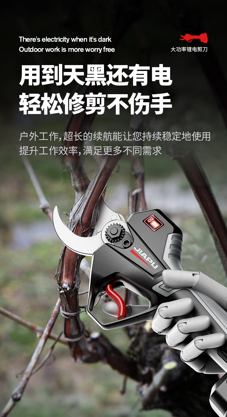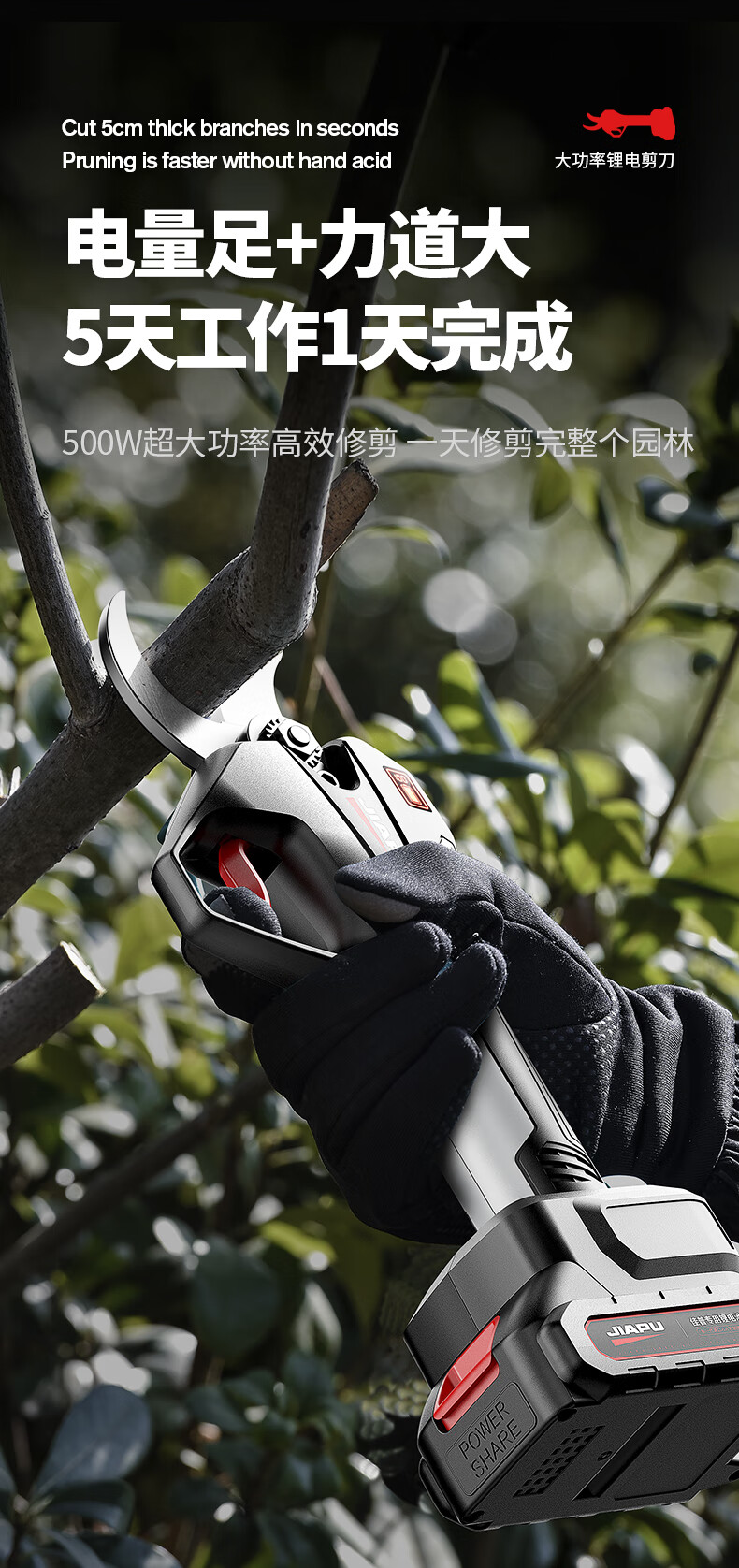 Jiapu Electric Scissors Rechargeable Powerful Garden Fruit Tree Pruning Shears Lithium-ion Electric Scissors for Branches Pruning Artifact Brushless 128 Models 999998000mAh One Electricity