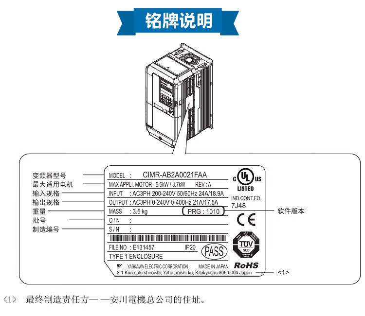 Yaskawa inverter A1000CIMR-AB4A0038 0044FBA0058ABA15 18.5 22 CIMR-AB4A0296ABA160KW/13