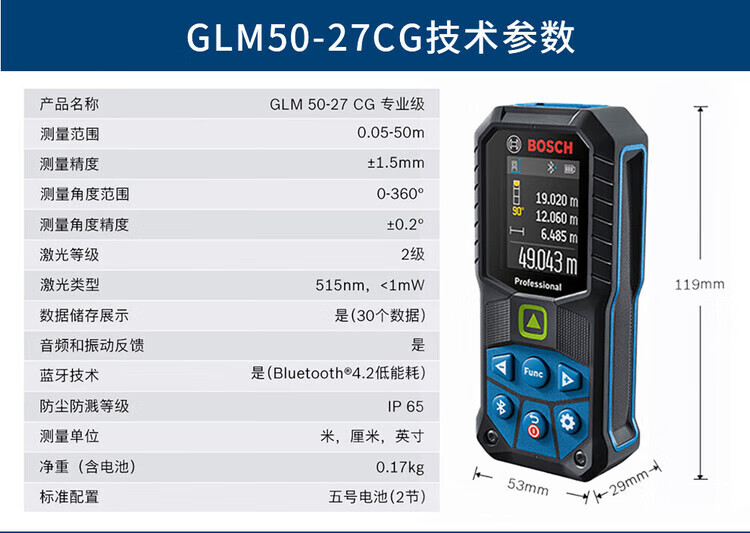 Bosch (BOSCH) laser distance meter GLM handheld infrared electronic ruler measuring instrument home measuring room ruler doctor measuring tool GLM30-23 shipped from Shanghai warehouse