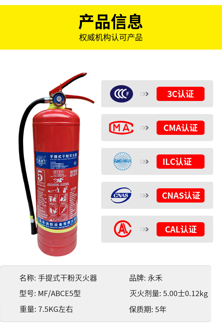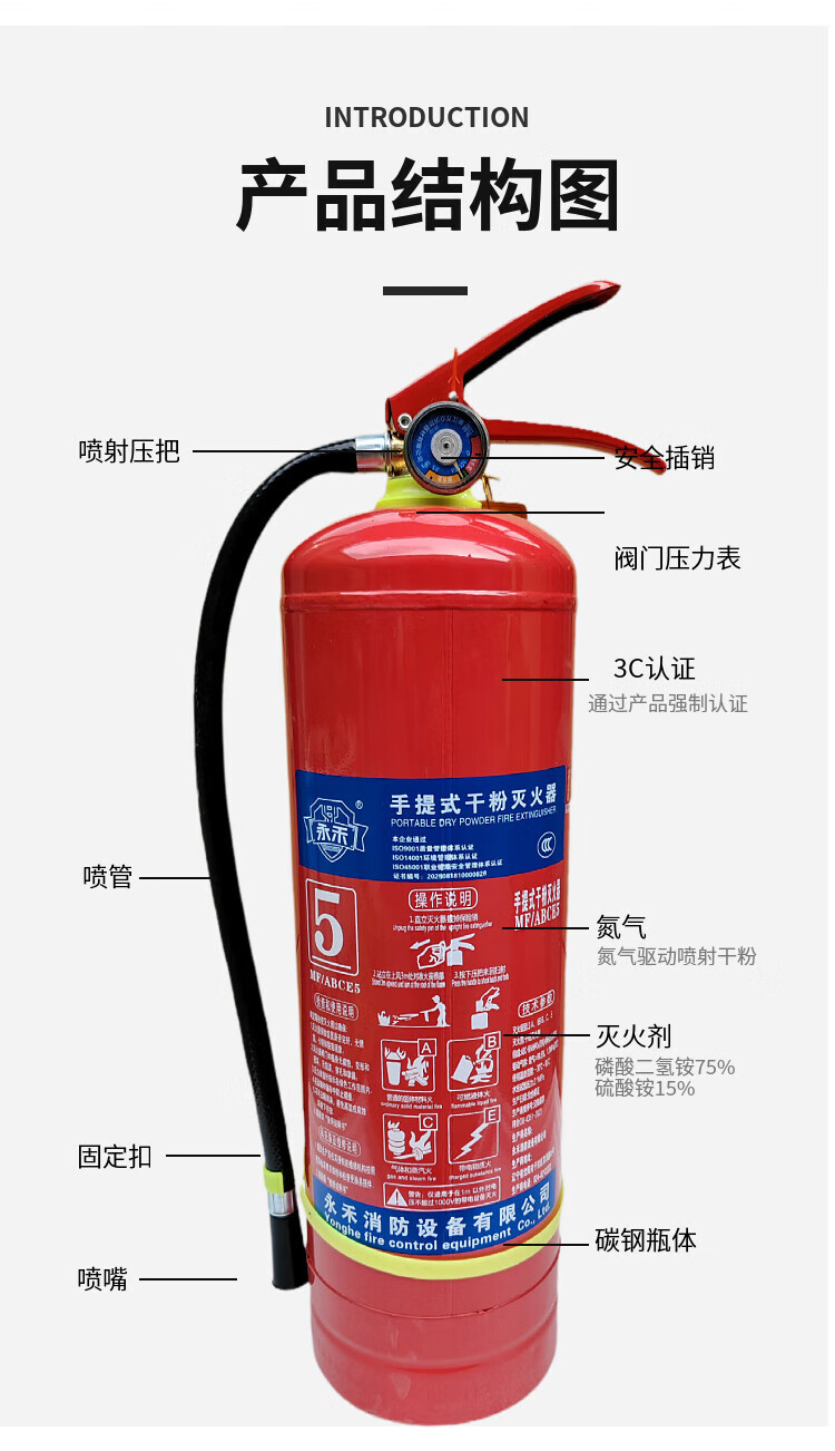Yonghe new national standard portable dry powder fire extinguisher 5KG kilogram ammonium phosphate enterprise warehouse store 5KG dry powder fire extinguisher comes with inspection card