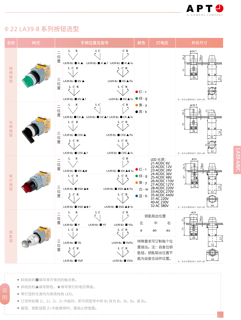 Siemens APT knob switch second gear and third gear start button LA39-B2-10X/20XS/11CXS/Kffu black spot 2 open 2 closed short handle/third gear positioning spot