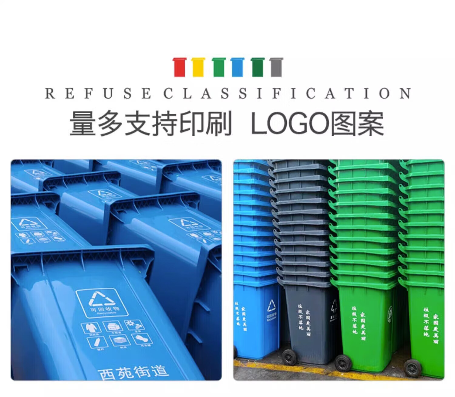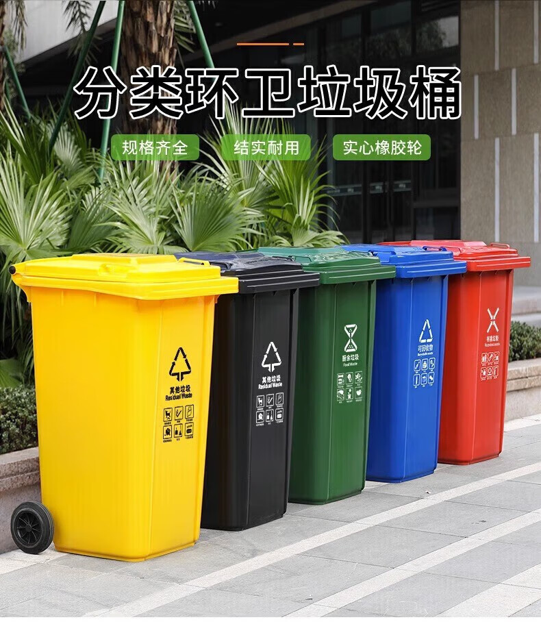 240l outdoor classified trash can with wheeled lid, sanitation large capacity commercial community dry green 120 liter thickened bucket kitchen waste