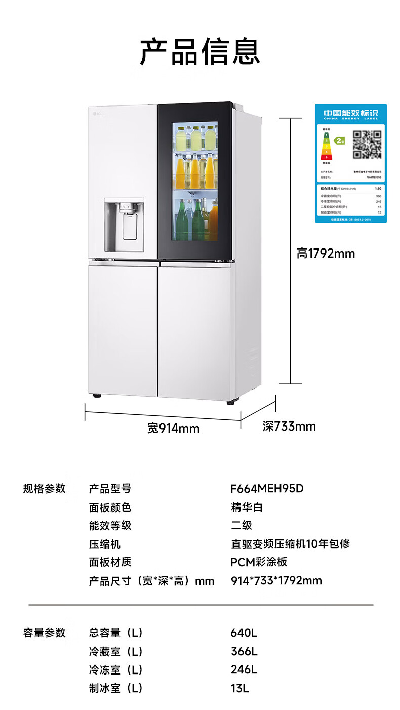 LG Ice Fun Series 640L Knock on Door Automatic Ice Making Cross Four Door Refrigerator Three Independent Air Channel Systems Essence White F664MEH95D Essence White