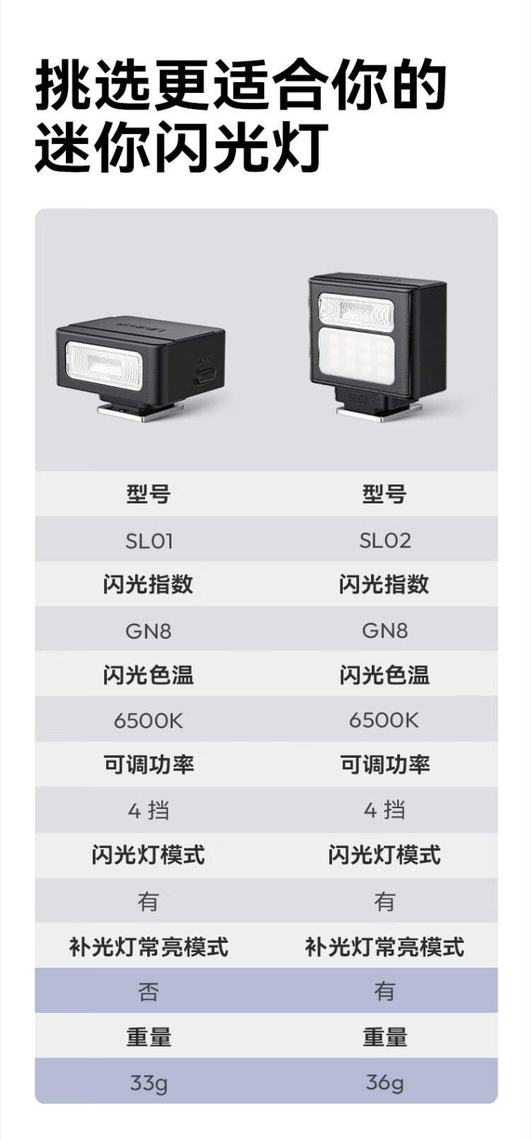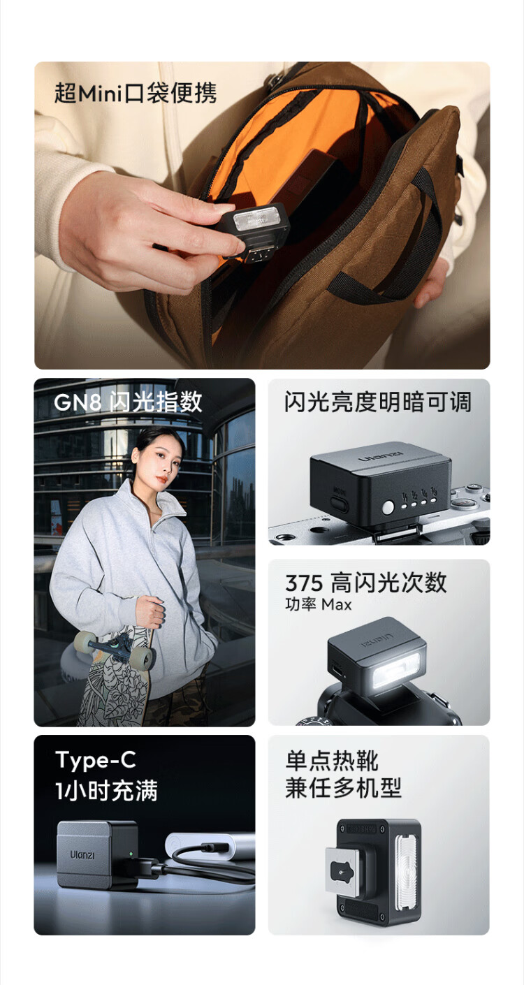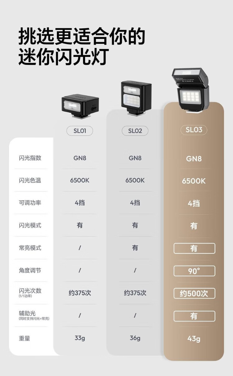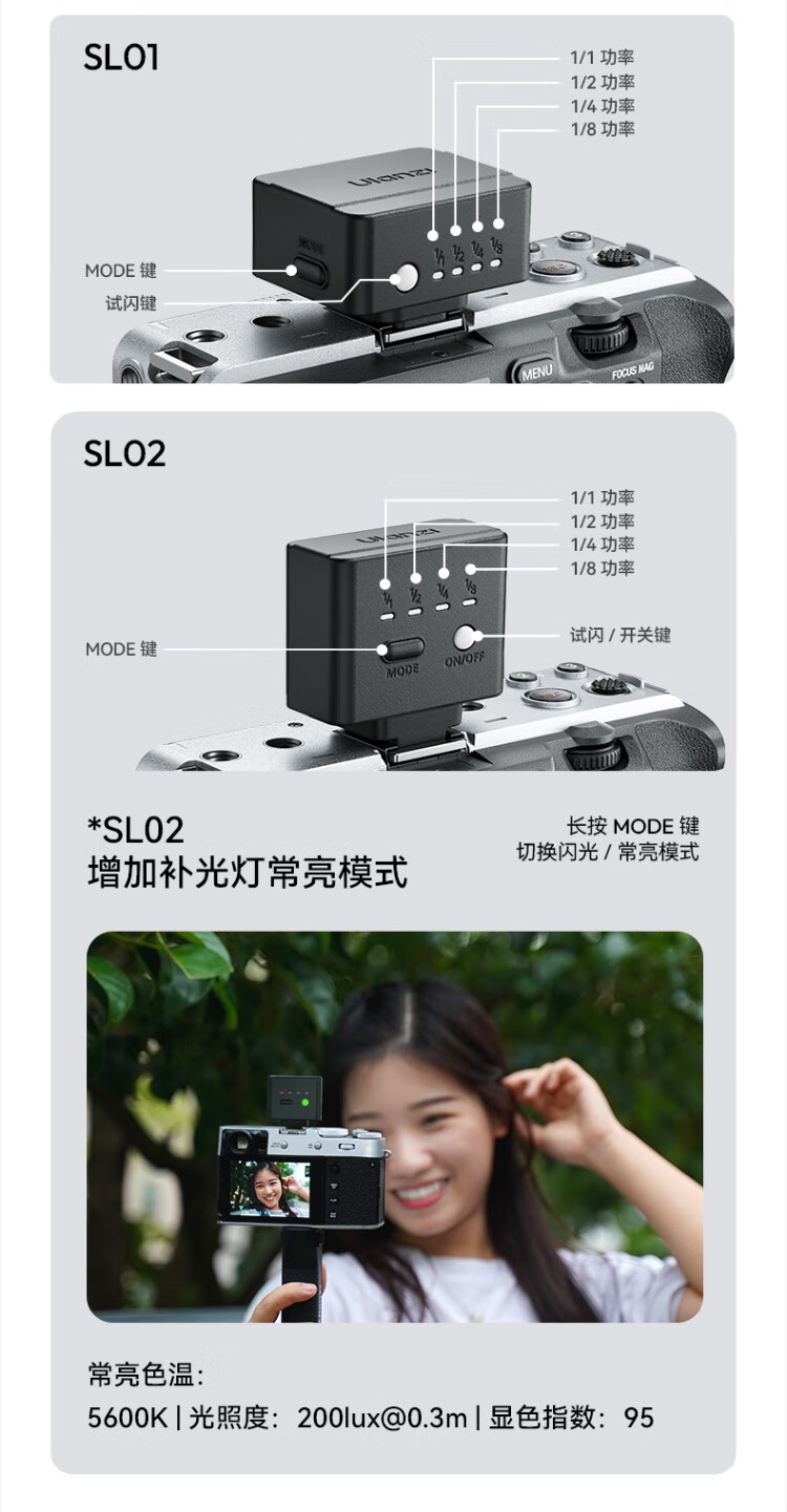 Ulanzi Ulanzi SL03/02 Firefly mini flash small flip-up hot shoe interface universal camera top small square convenient outdoor photography always bright fill light SL03 white丨90 folding丨with always bright fill light