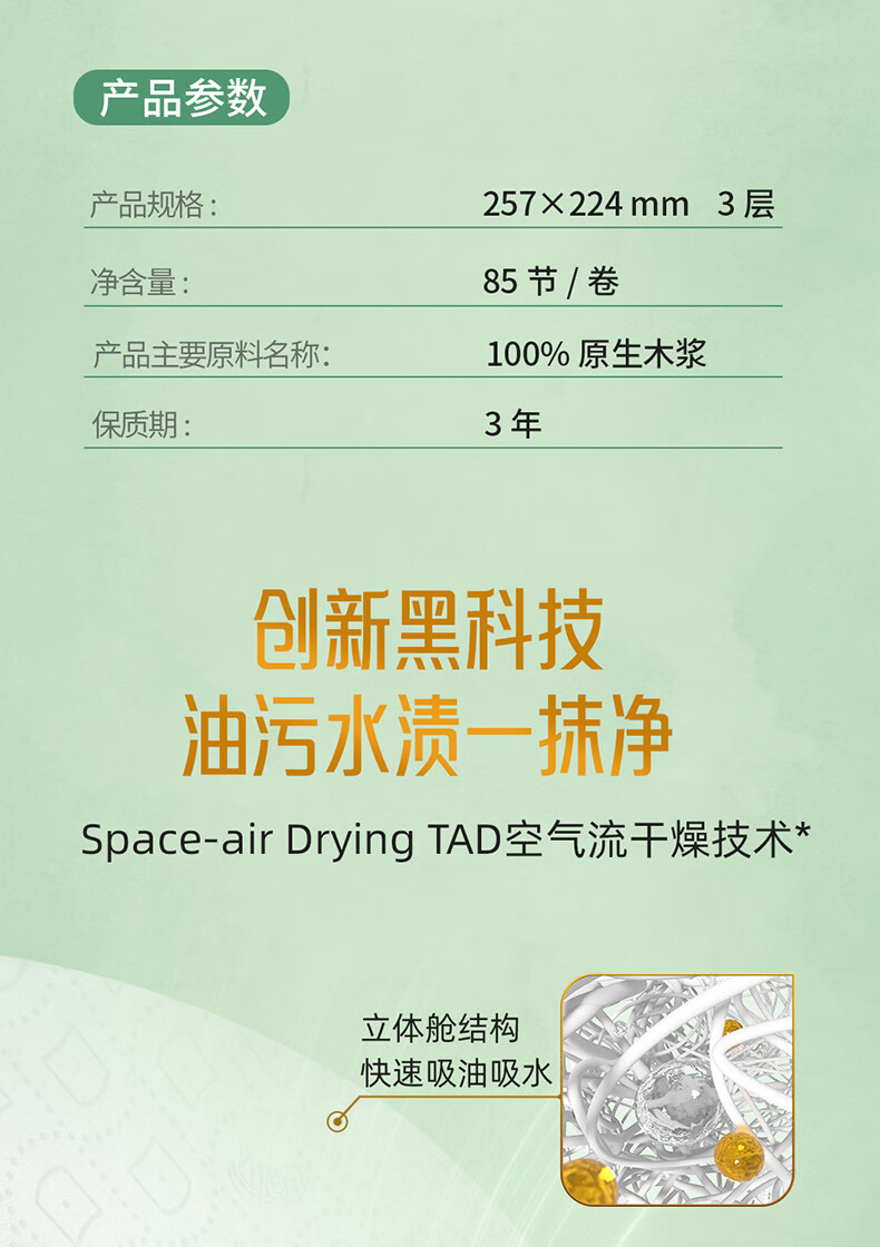 Heart-to-heart seal velvet cubic kitchen paper 85 sections washable three-layer thickened kitchen paper towels for home use TKT1085 3 layers 85 sections * 6 rolls in one box