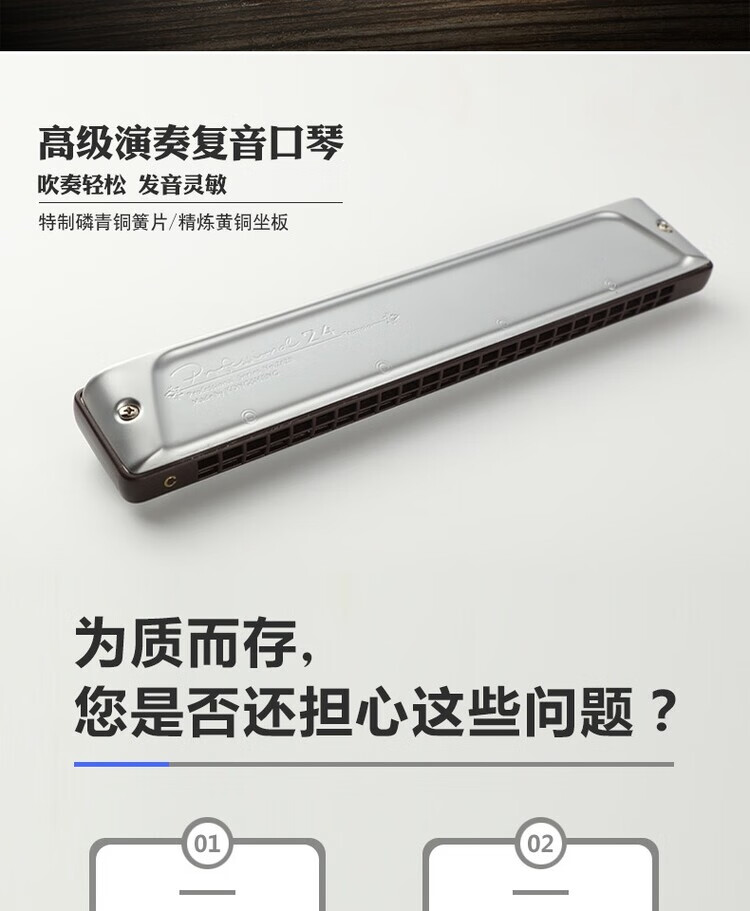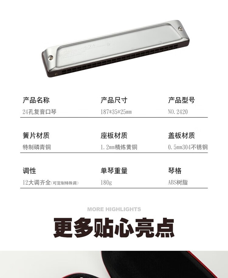 Kongsheng (KONGSHENG) 24-hole polyphonic harmonica NO.2420 can be customized in minor keys, special keys, 12 keys, complete playing practice harmonica in G key