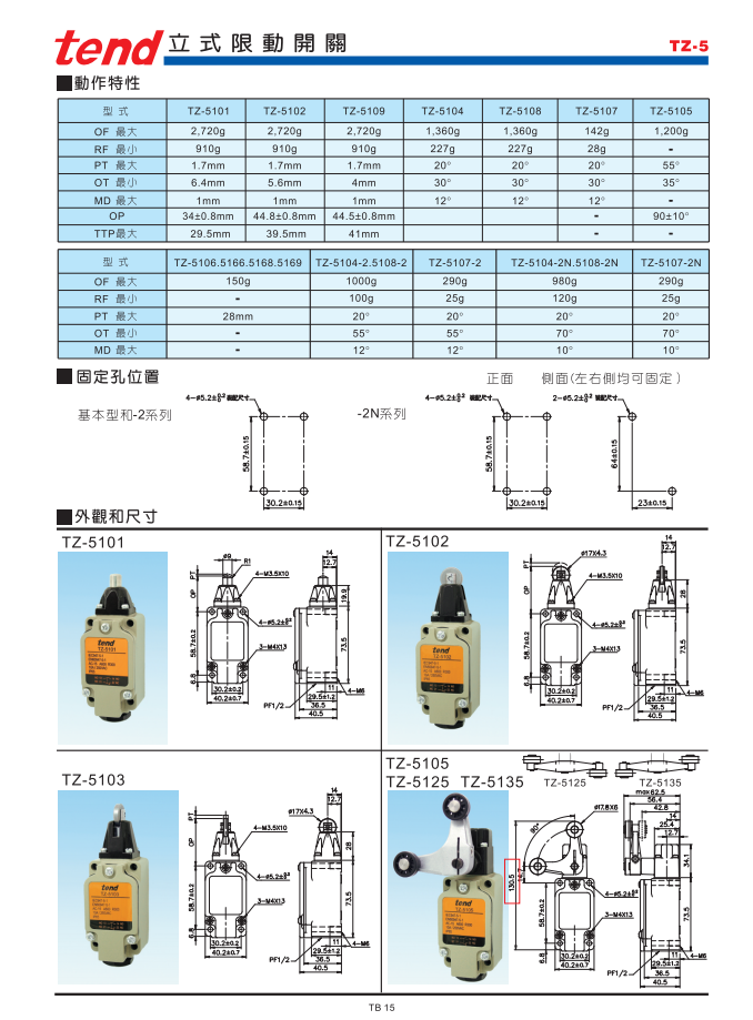 Tiande tend stroke limit switch TZ-5108-2/2N 5104 5101 5106 5102 5107 TZ5107