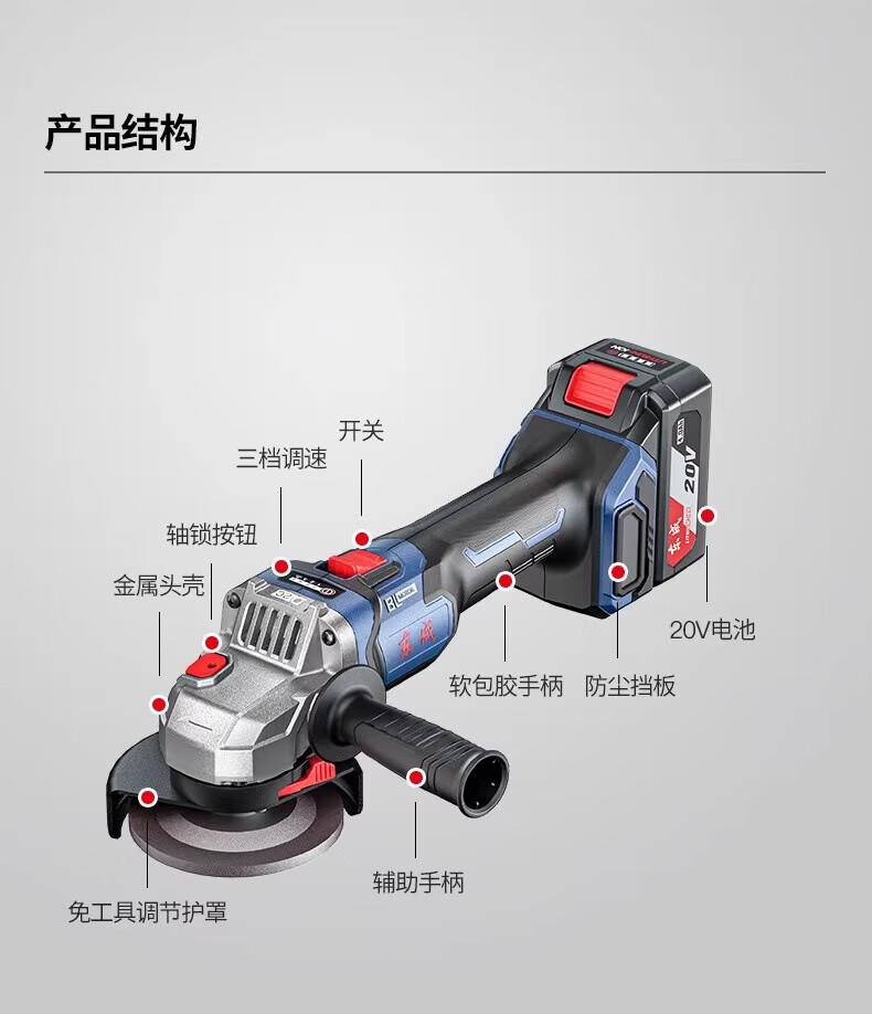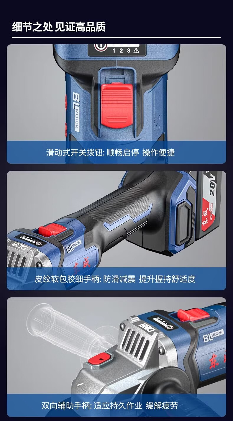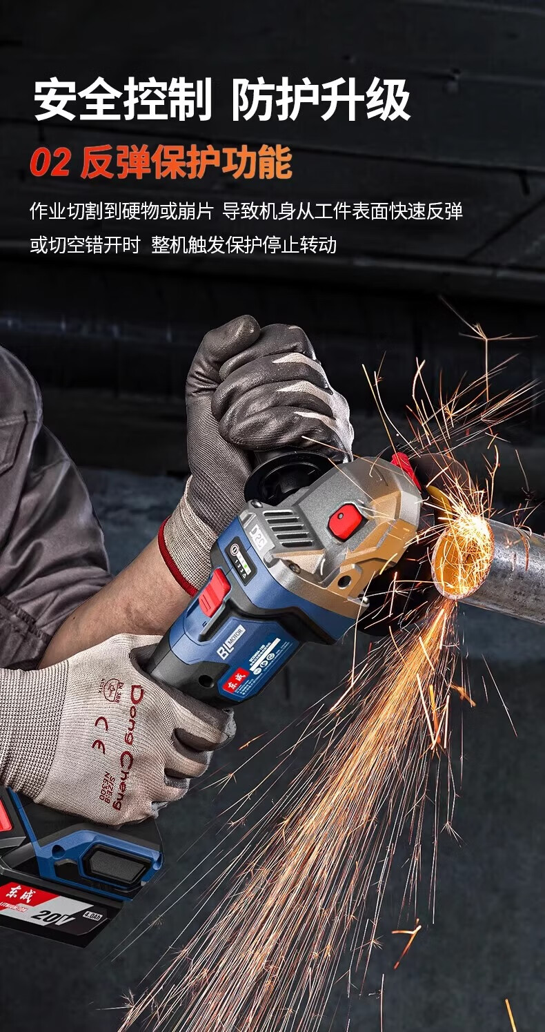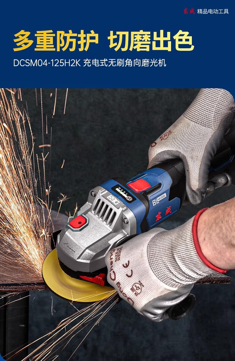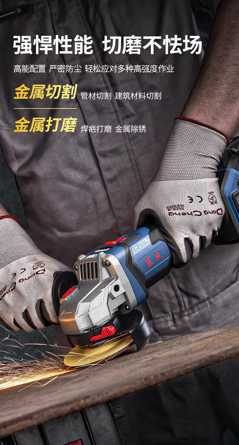 Dongcheng Brushless Lithium Electric Angle Grinder Genuine Dongcheng Angle Grinder Electric Hand Grinder Rechargeable Polisher Grinding Machine Cutting Machine 04-125 Bare Metal No Electricity No Charge