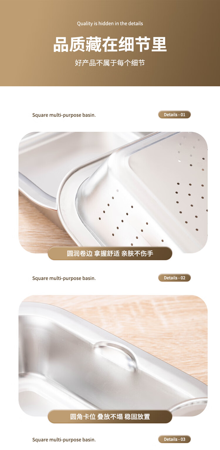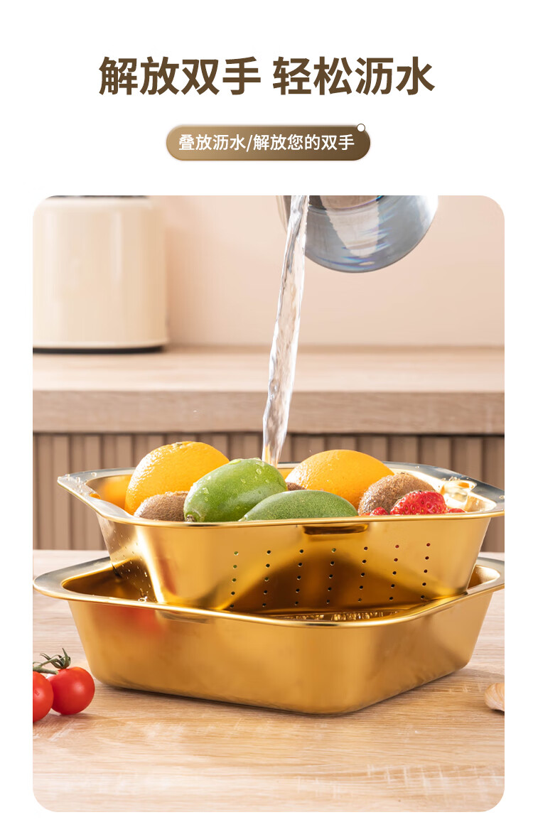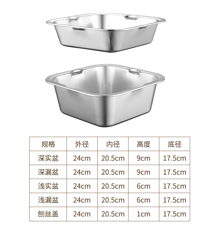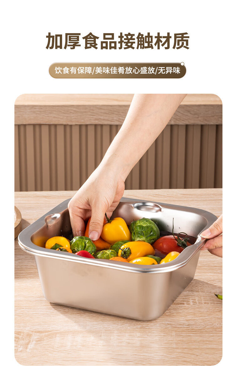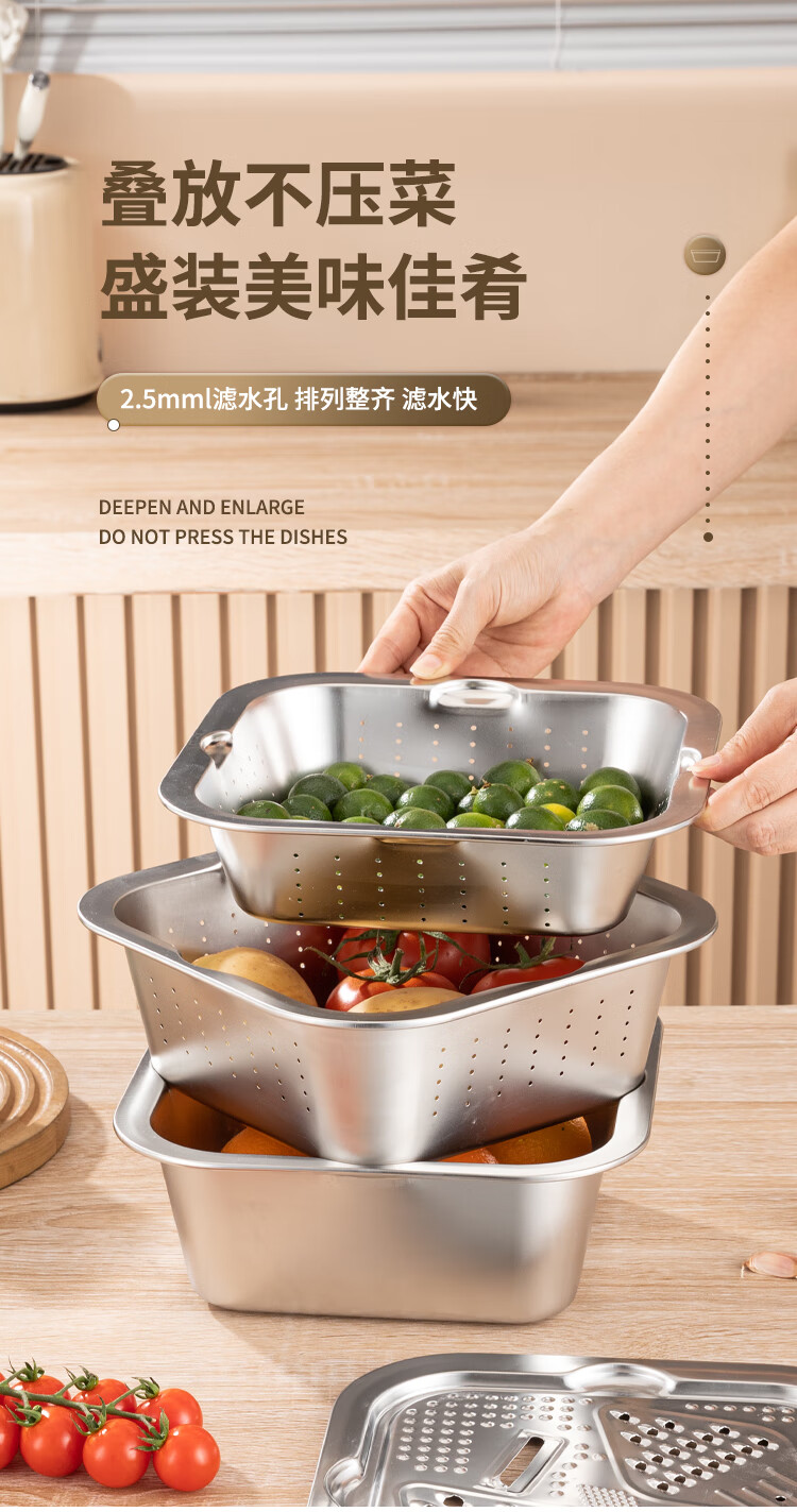 Yiyipai 304 stainless steel drain basket square square basin household vegetable sink drain basin set punching basket filter basin rice washing sieve 304 deep solid basin + deep drain basin
