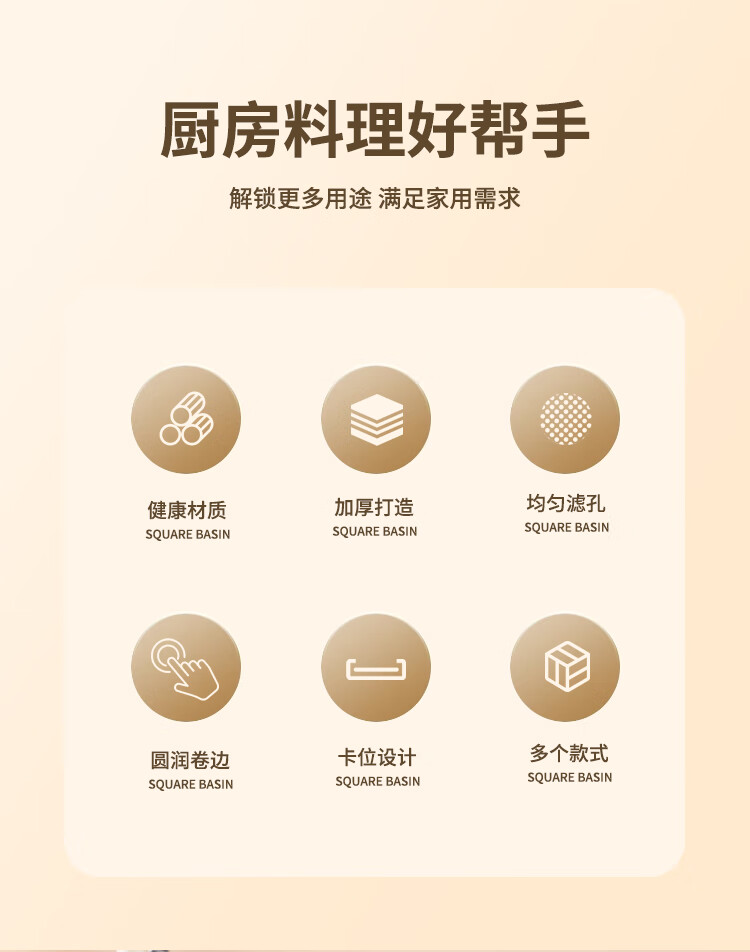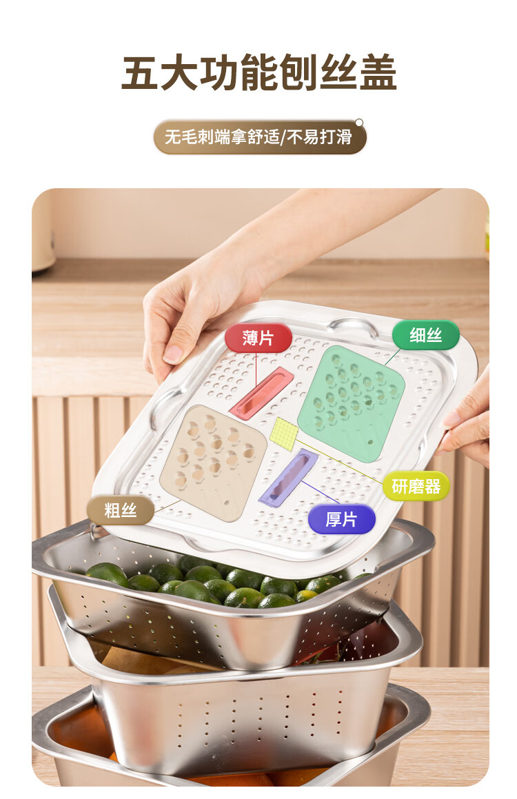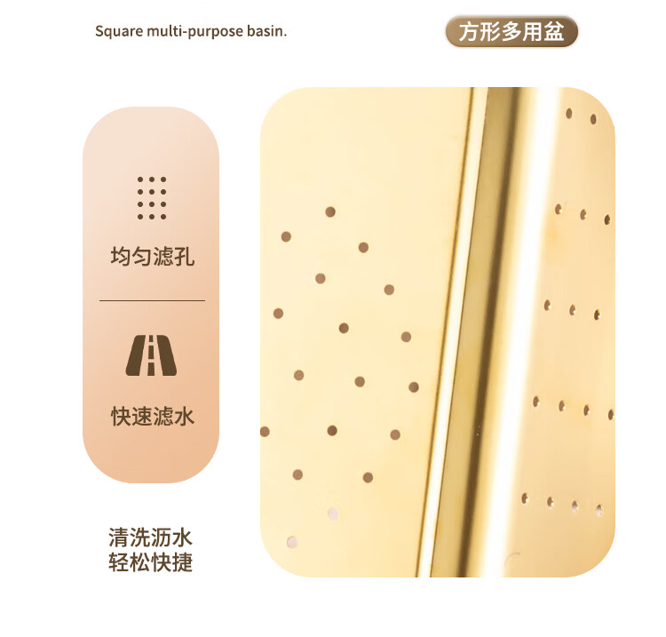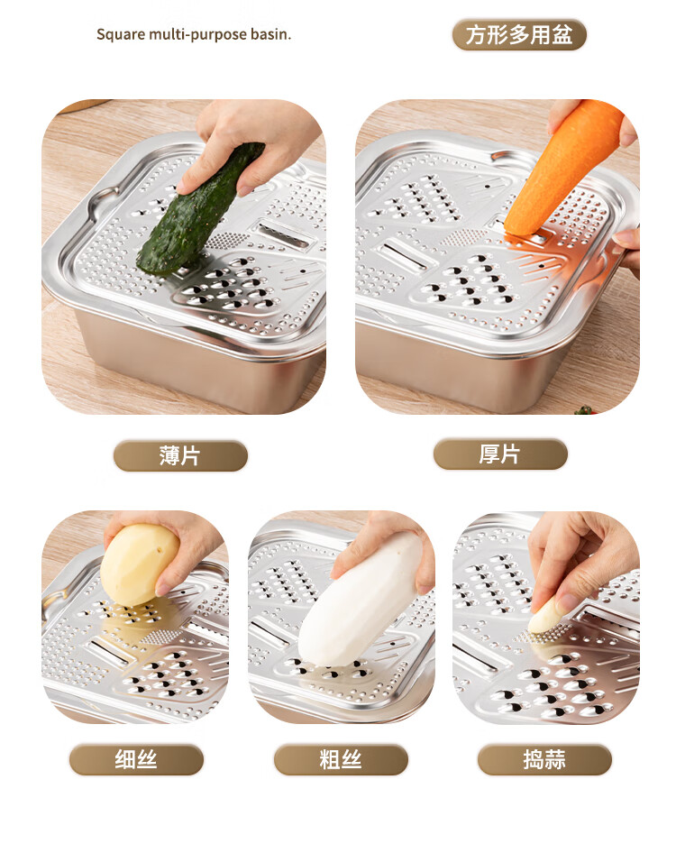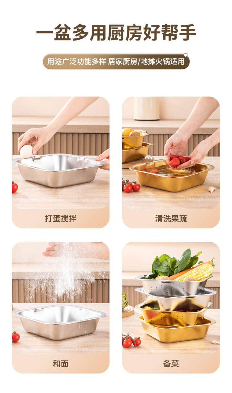 Yiyipai 304 stainless steel drain basket square square basin household vegetable sink drain basin set punching basket filter basin rice washing sieve 304 deep solid basin + deep drain basin