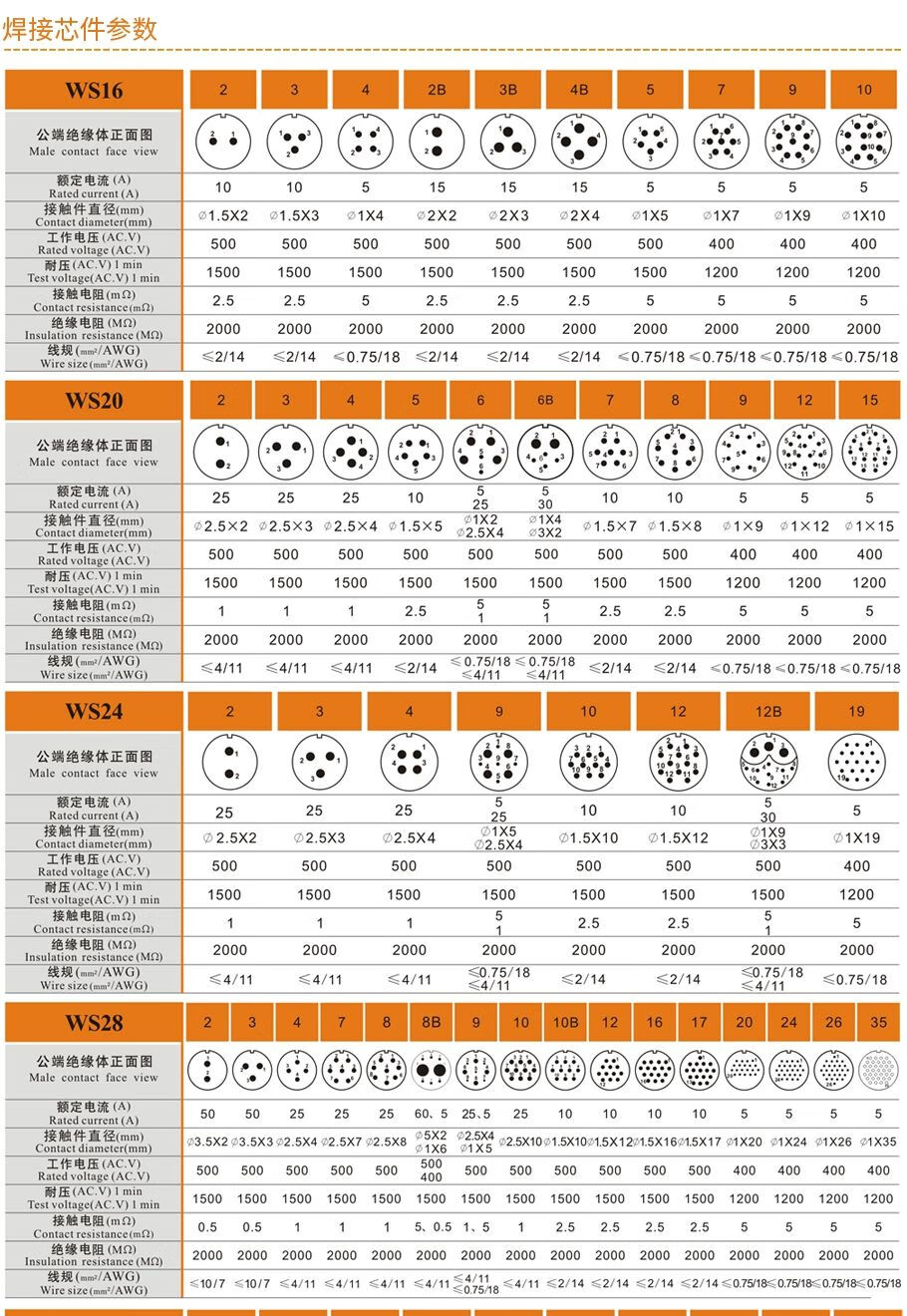 Weipu WS20 aviation plug 2-pin 3-pin 4/5-pin 67-pin 9-pin 12-pin 15-pin power plug industrial connector WS20J2TQ (male)