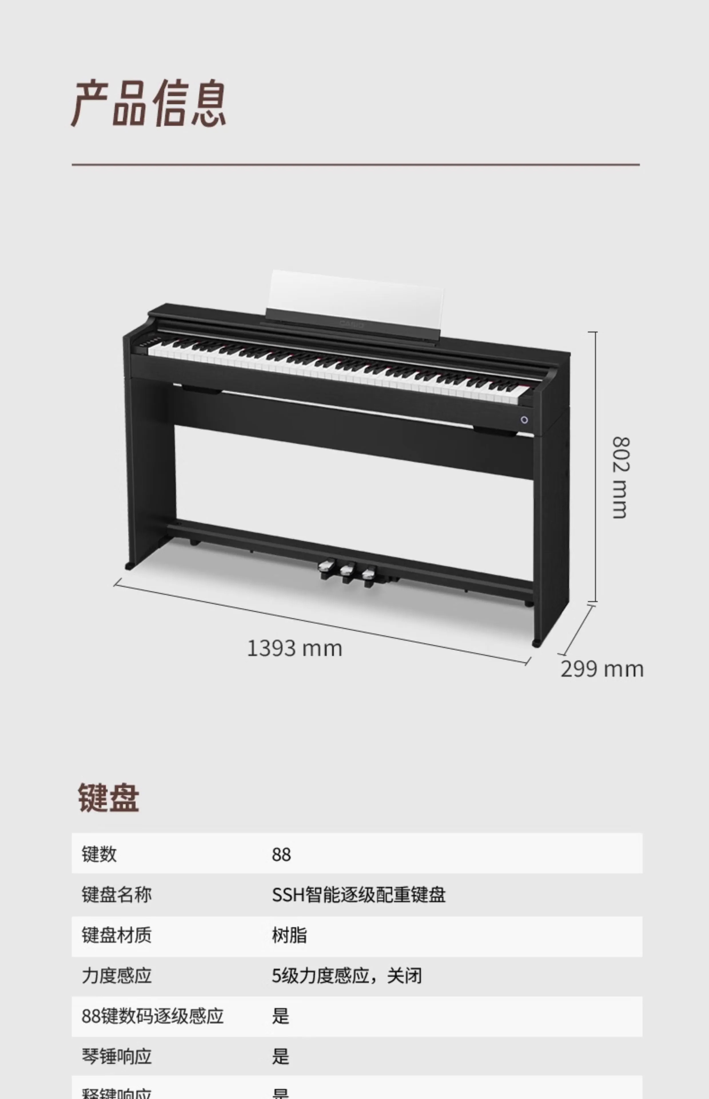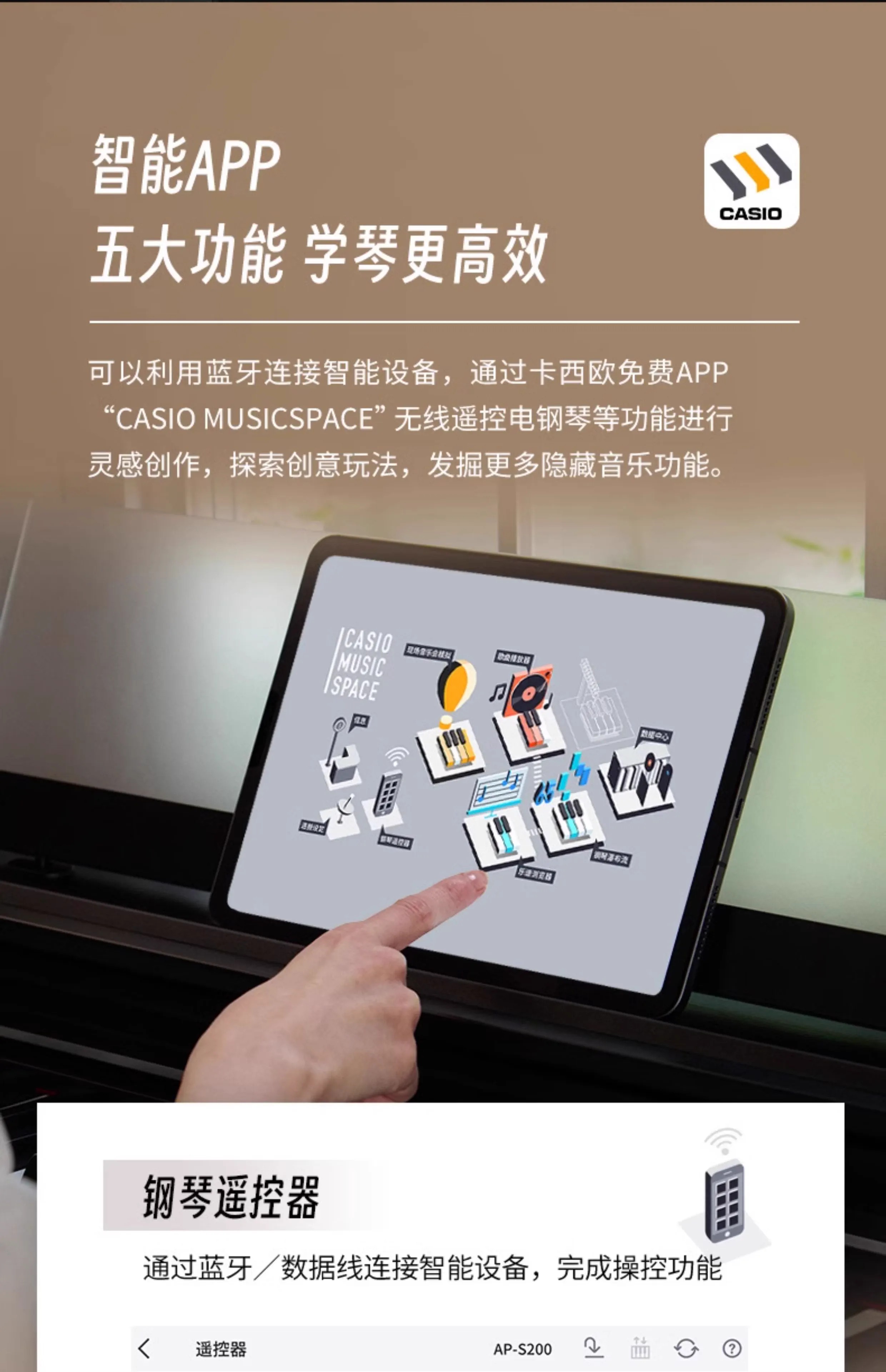 CASIO electric piano APS200 heavy hammer 88-key SSH intelligent graded weight compact design keyboard for beginners home use vertical new product AP-S200 black