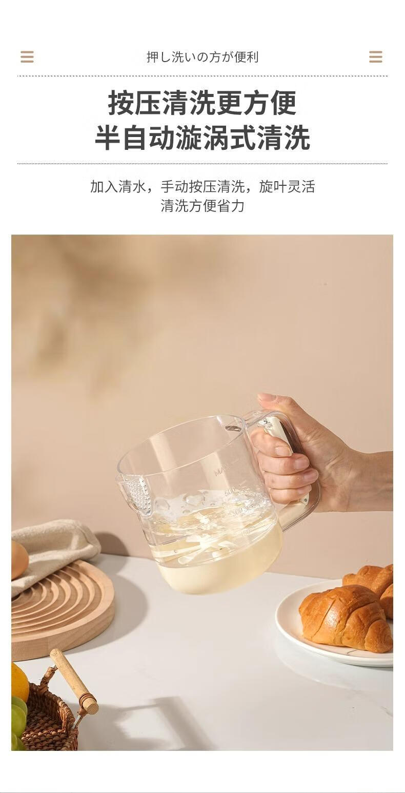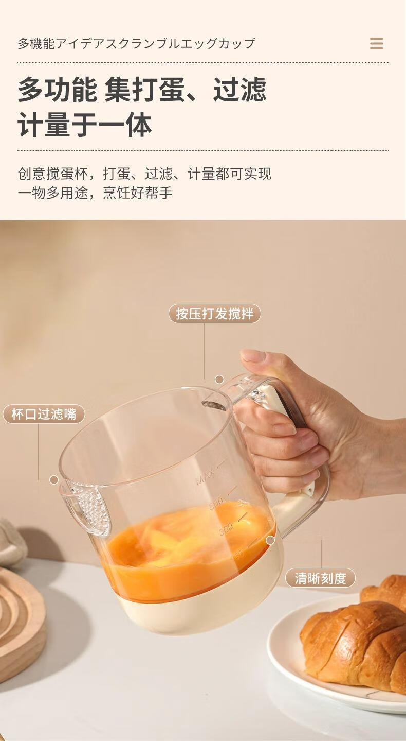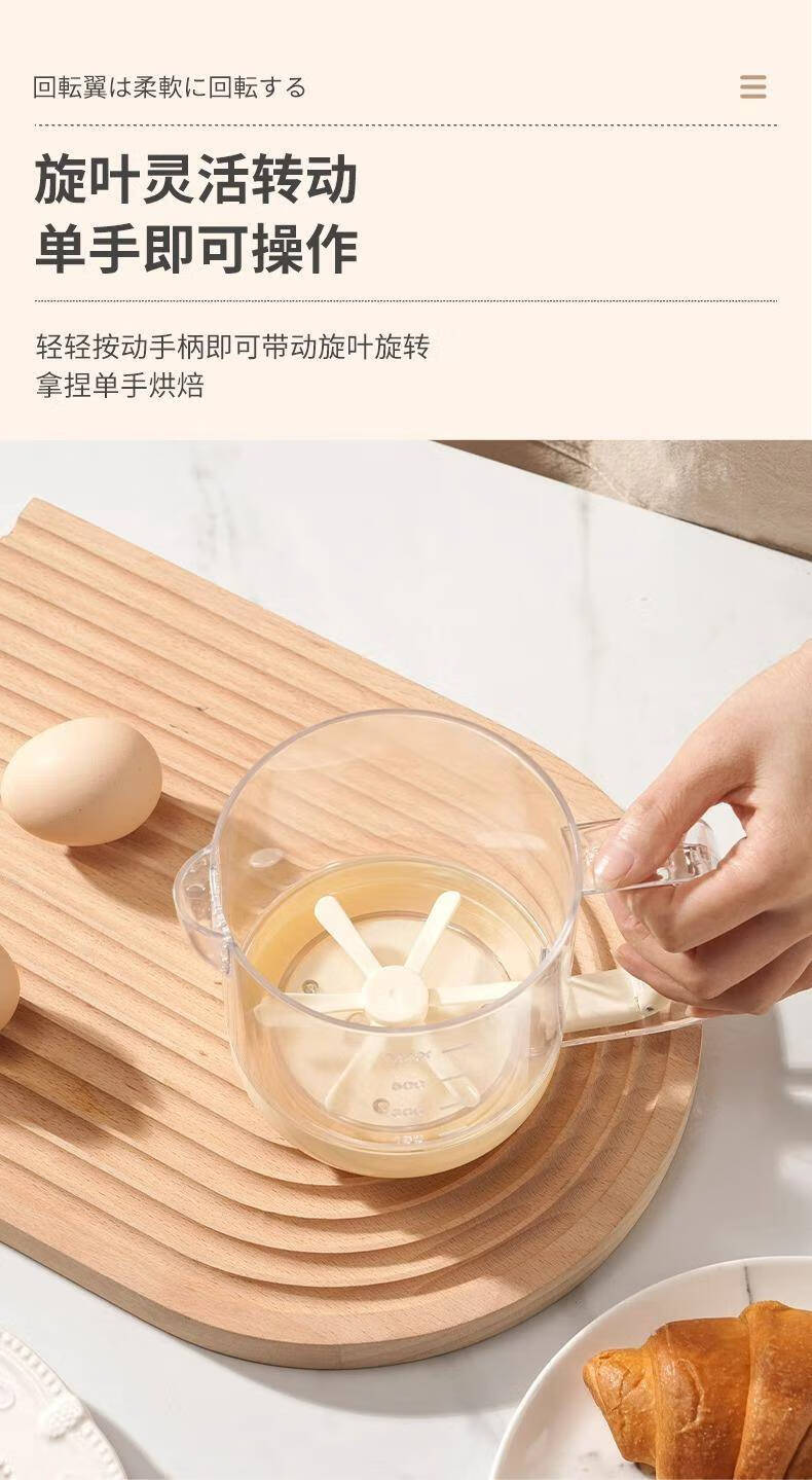 Jingsheng egg liquid filter measuring cup stirring egg cup egg beating bowl manual semi-automatic baking cream whipping multi-function stirring egg cup off-white semi-automatic spring press