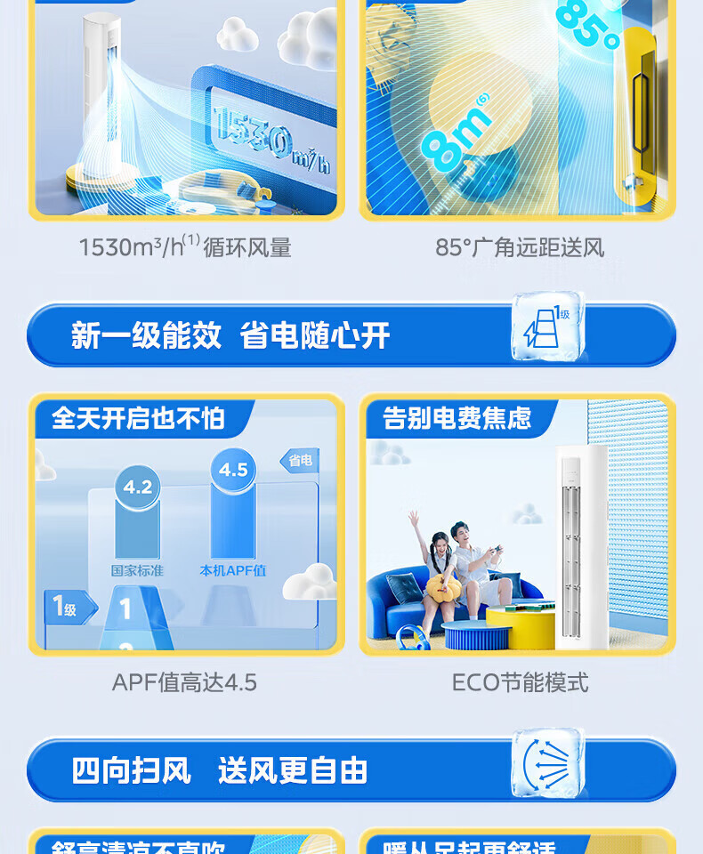 Midea air conditioner cabinet large 3P cool power saving/Hualing new first-level energy efficiency variable frequency heating and cooling intelligent control energy-saving dehumidification living room large 2 HP first-level energy efficiency 51HA1 Midea Hualing series