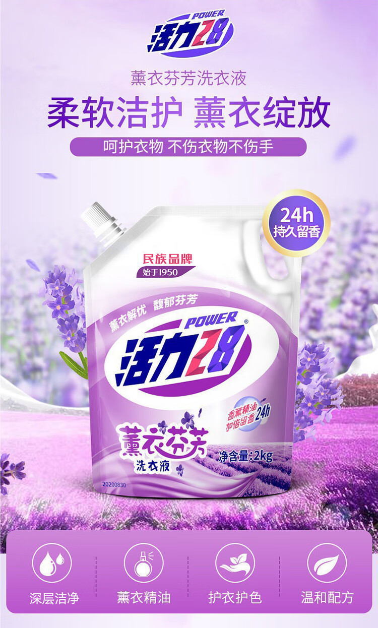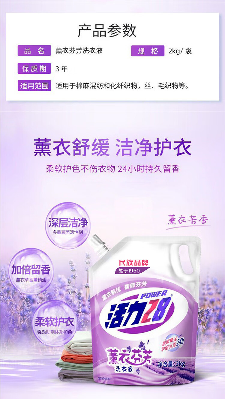 Vitality 28 long-lasting fragrance laundry detergent lavender fragrance stain removal and cleaning 2kg household affordable full box genuine lavender fragrance 2kg*2 bags