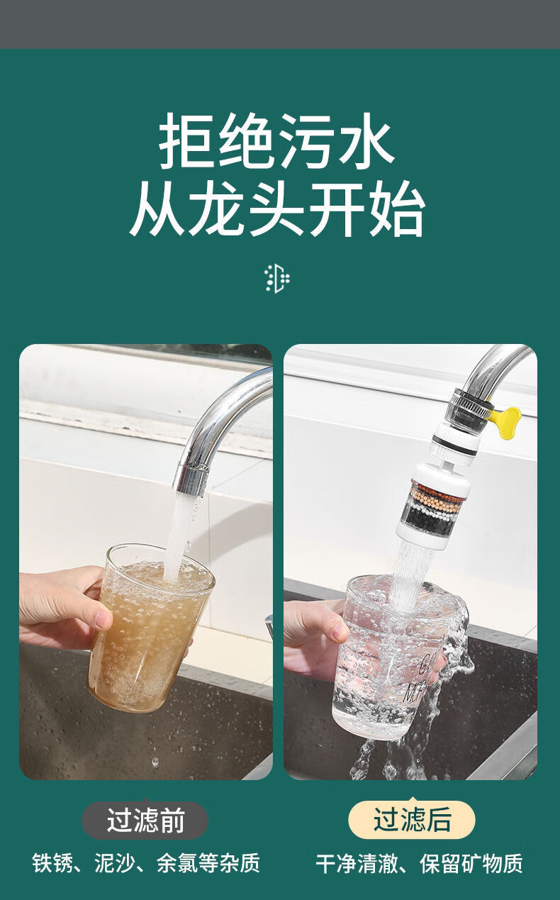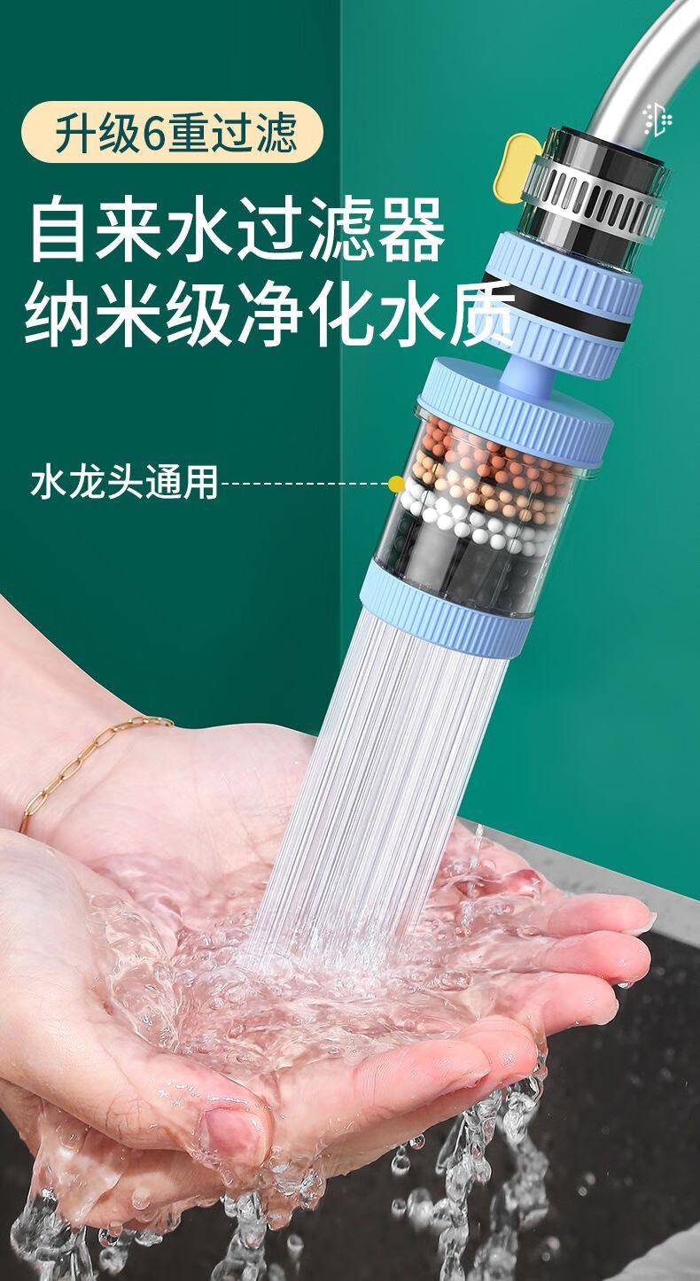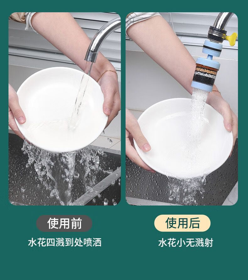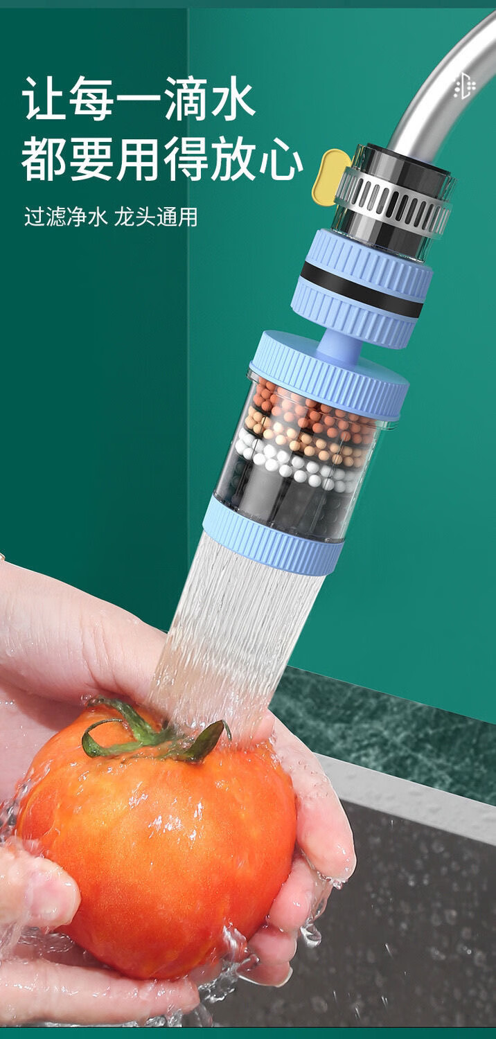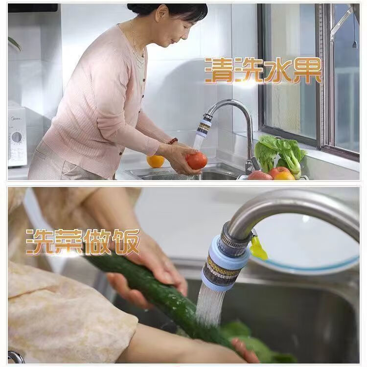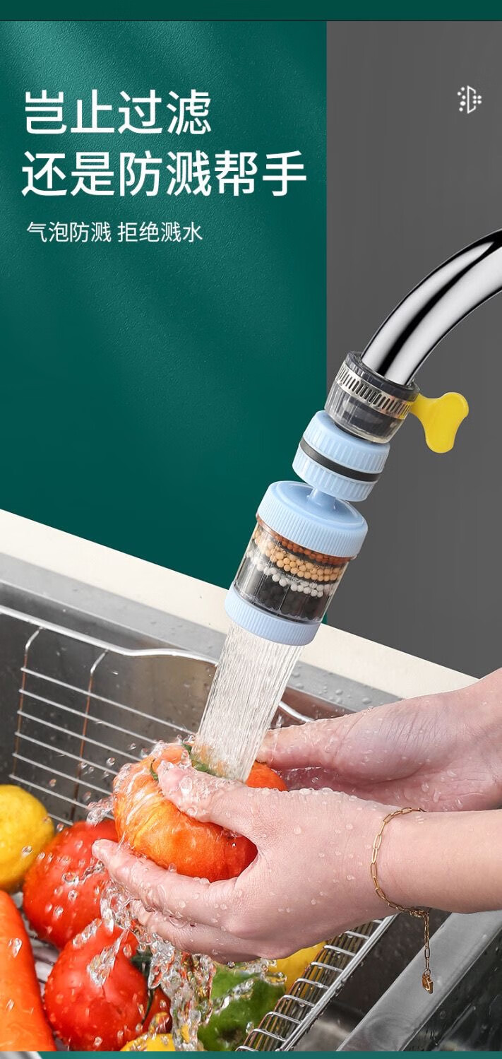 Xinjieyuan 360 rotatable faucet filter, removable and washable splash-proof pressurized universal connector, six-layer powerful filtration, 3 rotary models + universal connector + 10 pieces of filter cotton, random colors