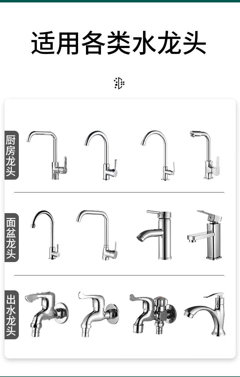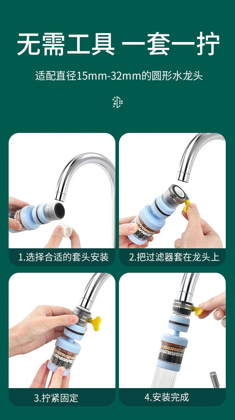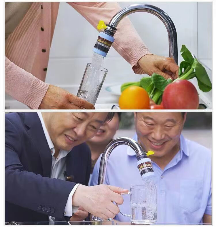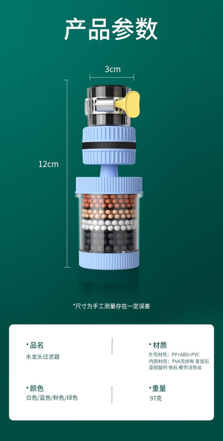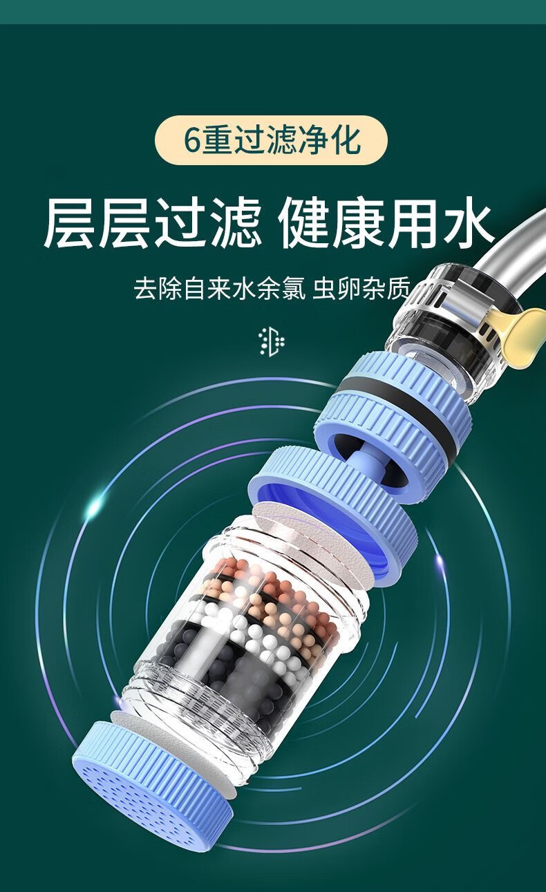 Xinjieyuan 360 rotatable faucet filter, removable and washable splash-proof pressurized universal connector, six-layer powerful filtration, 3 rotary models + universal connector + 10 pieces of filter cotton, random colors
